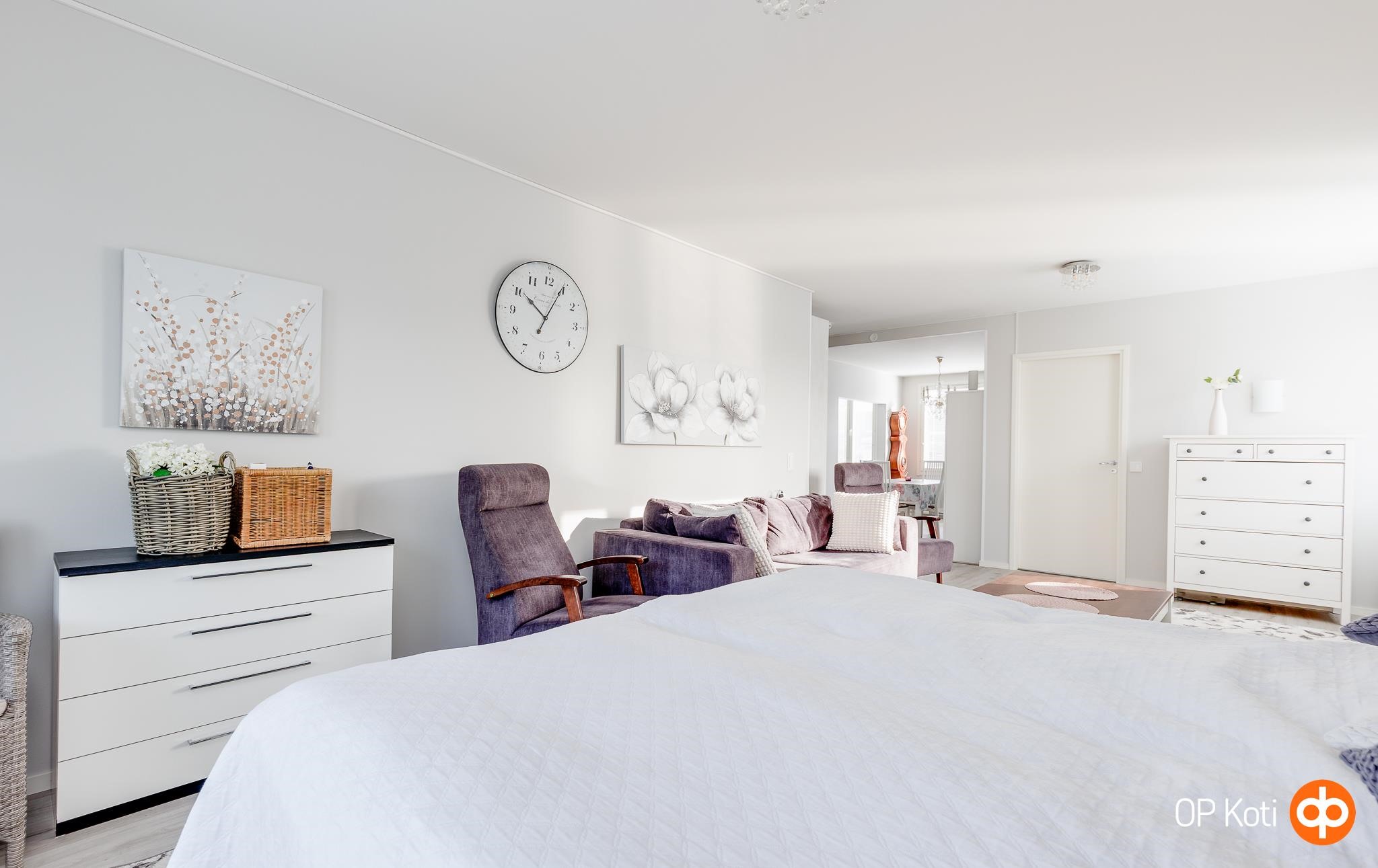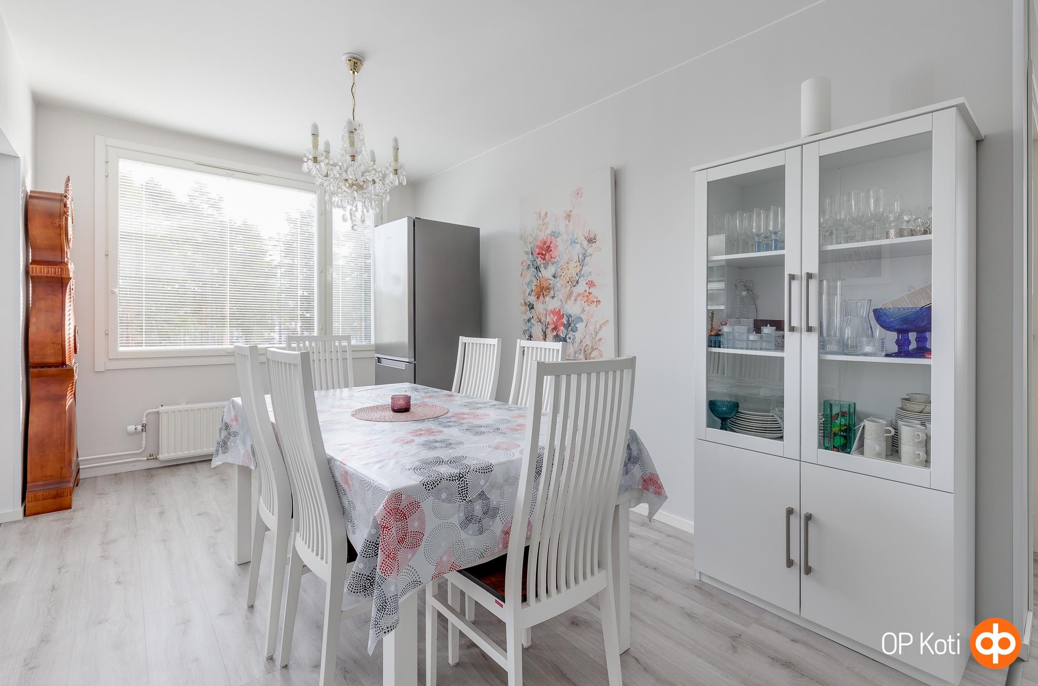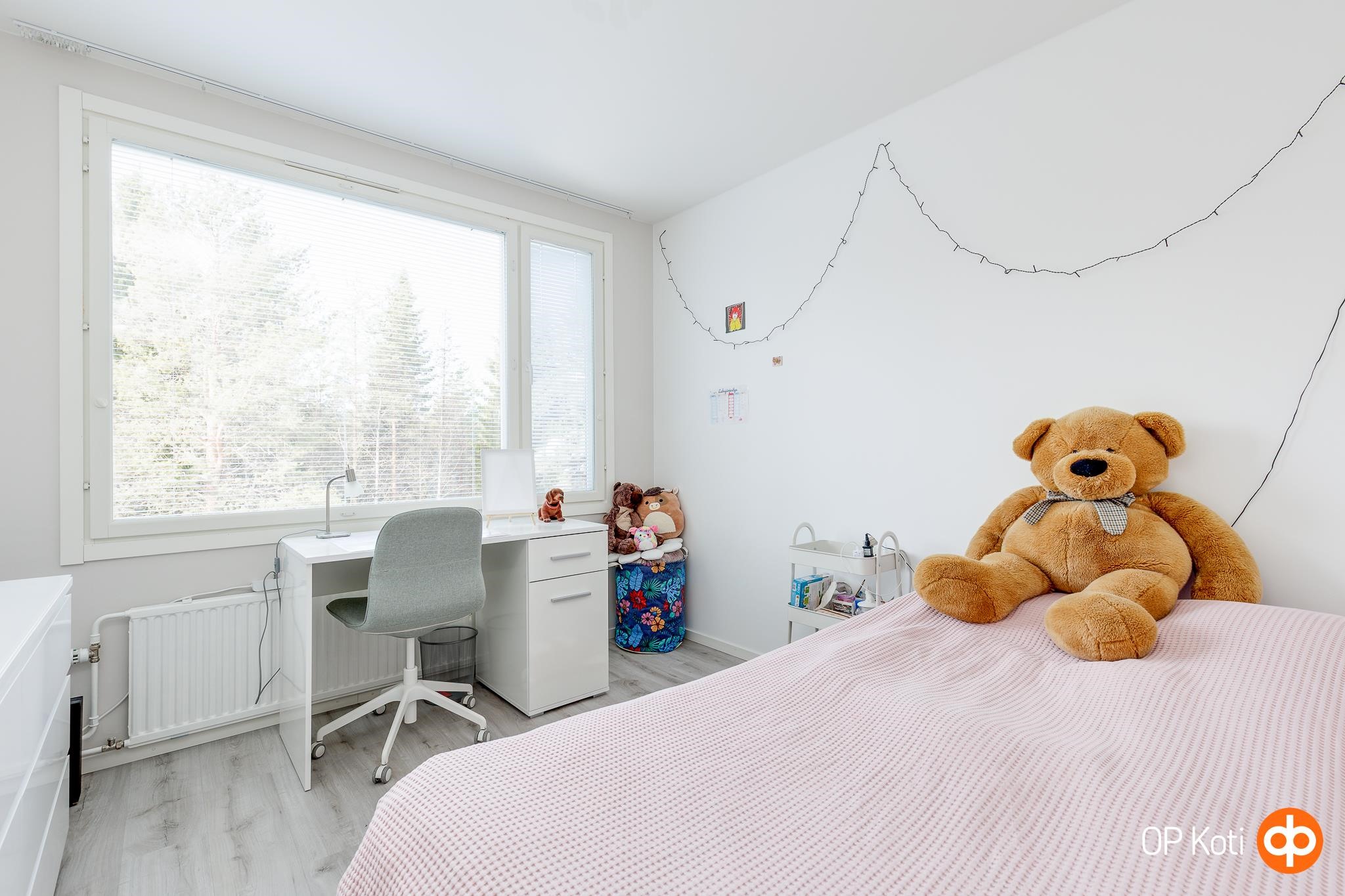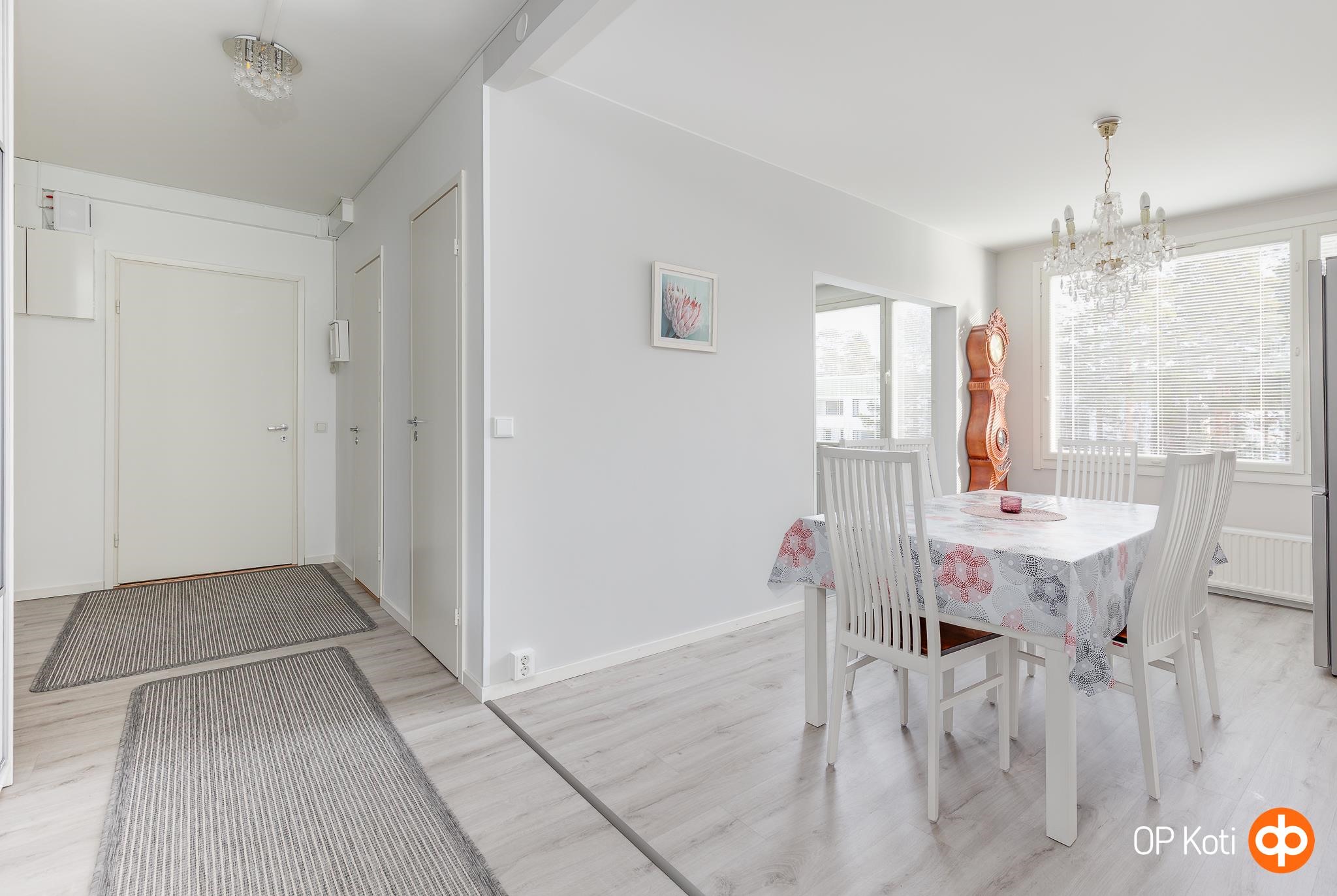 Tämä koti on täydellinen valinta sinulle, joka kaipaat huoletonta ja tilavaa asumista perheelle tai arvostat mahdollisuutta järjestää arki sujuvasti monipuolisissa tiloissa. Kolme makuuhuonetta tarjoavat rauhaa ja omaa tilaa, ja niiden sijoittelu mahdollistaa myös etätyön tai harrastusten yhdistämisen perhe-elämään. Keittiö, ruokailutila ja olohuone muodostavat käytännöllisen ja tilavan kokonaisuuden. Vaaleat pinnat ja suuret ikkunat tuovat runsaasti valoa jokaiseen huoneeseen. Lasitettu länsiparveke kutsuu nauttimaan ilta-auringosta ja metsämaisemista.