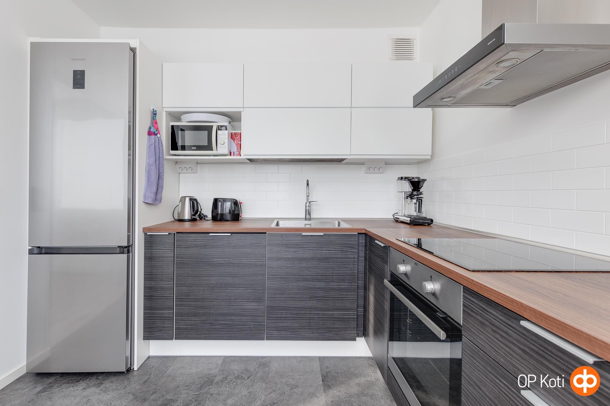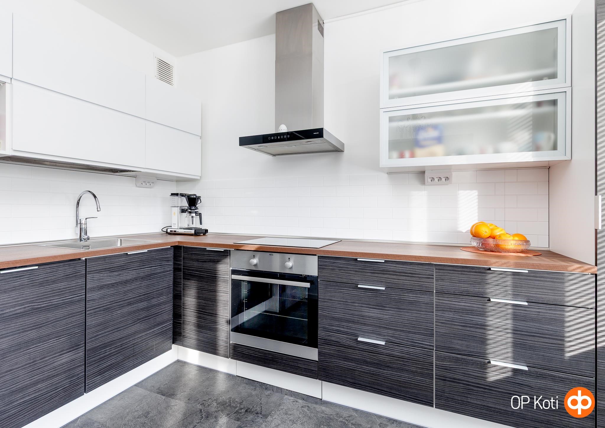 - Jääkaappipakastin, erillisuuni, liesitaso, kaasuliesi, liesikupu, astianpesukone, kaapistot, kiinteät valaisimet.