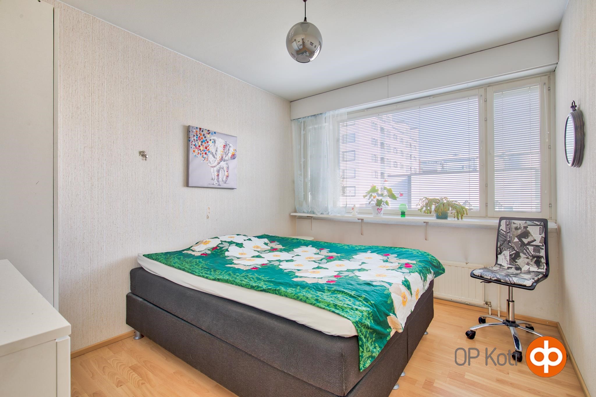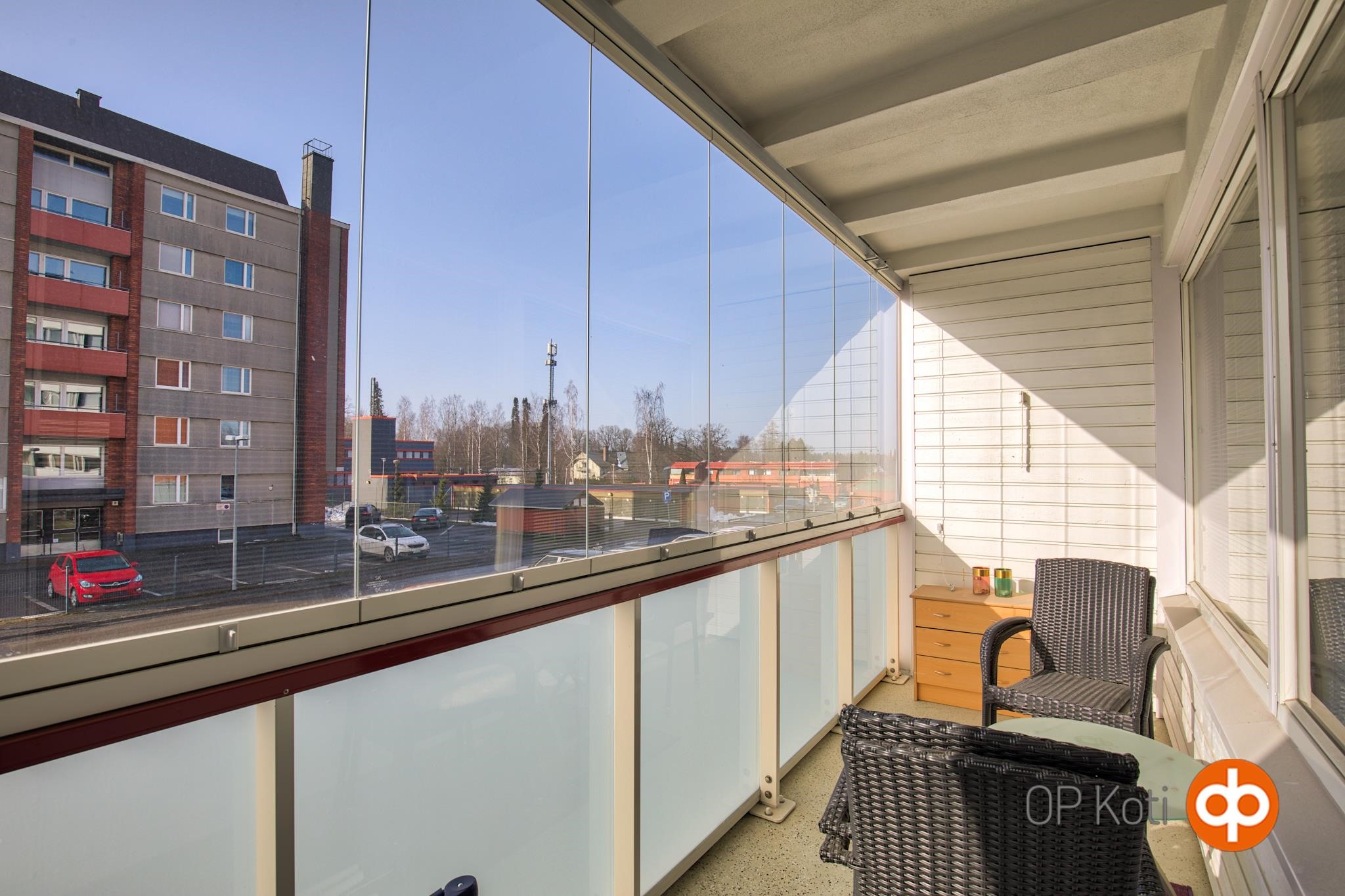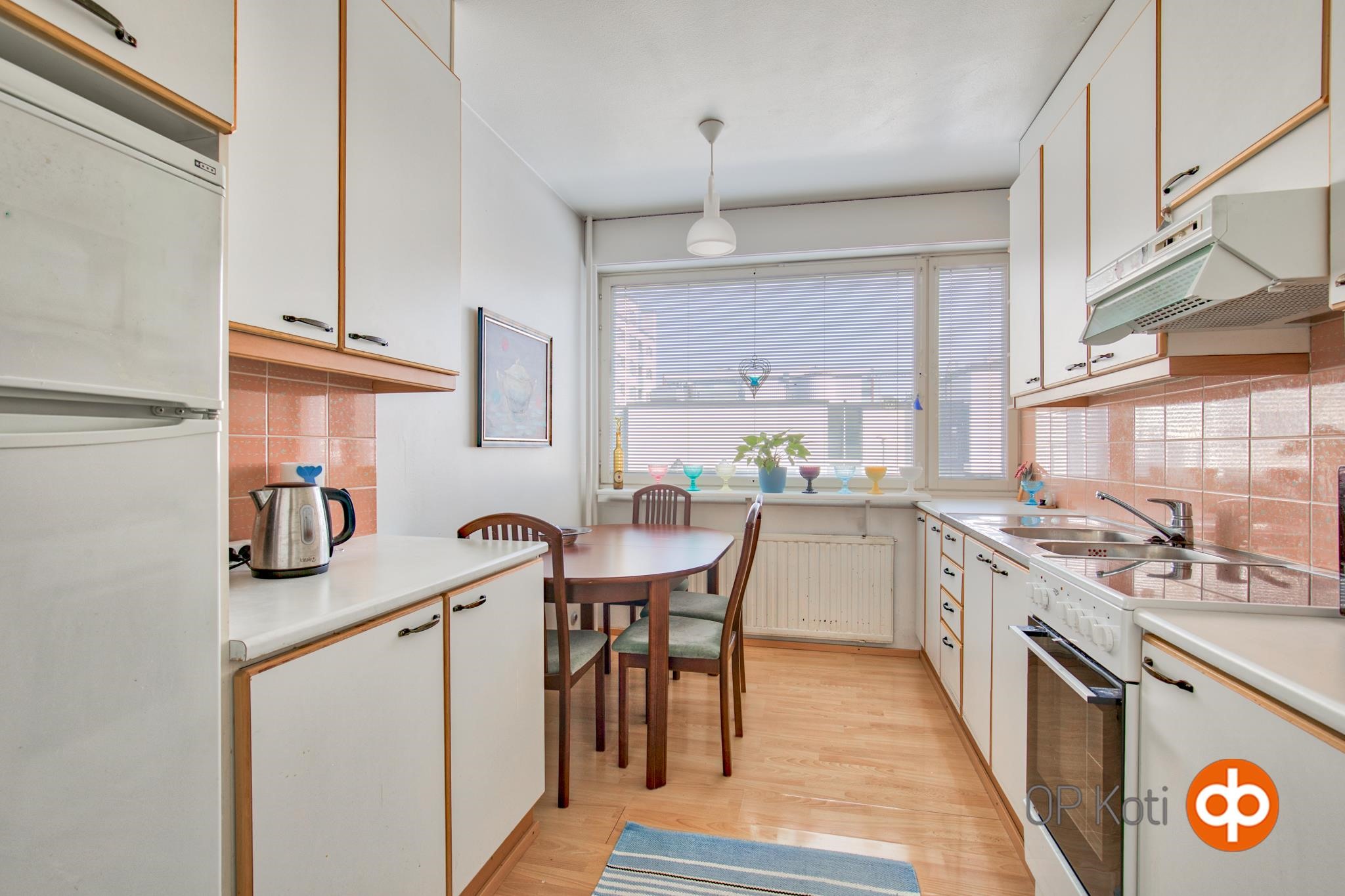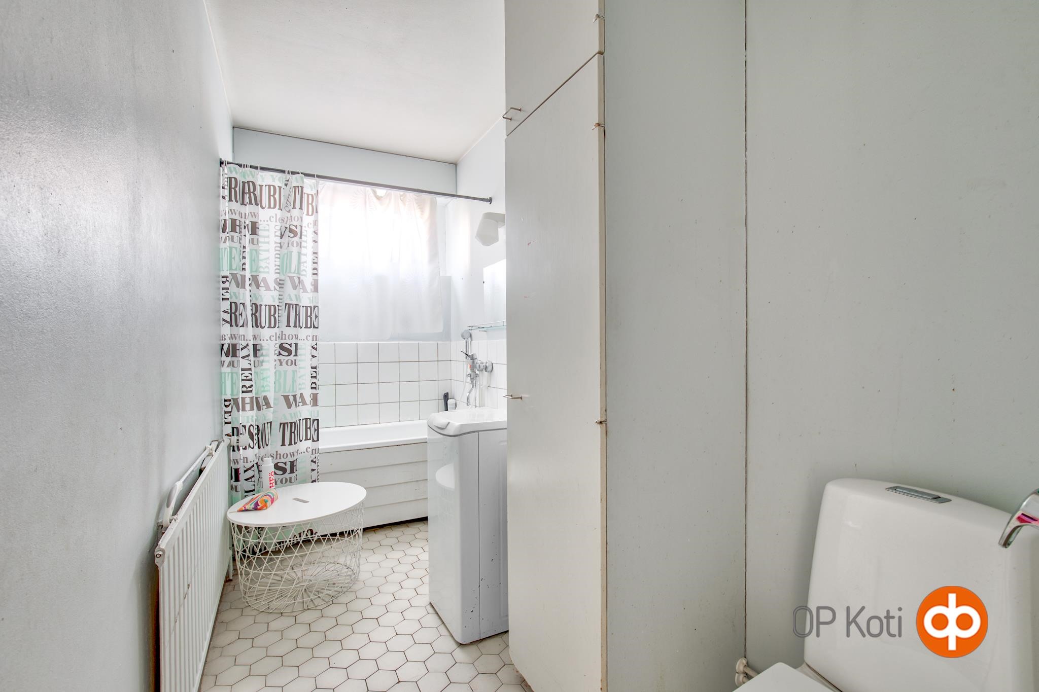 Ovesta sisään astuessa vastaan tulee avara eteisaula, josta on käynnit keittiöön, makuuhuoneeseen, kylpyhuoneeseen sekä tilavaan olohuoneeseen. Lasitettu parveke on erittäin siistissä kunnossa ja muuttuukin kelien lämmetessä viihtyisäksi kesäolohuoneeksi. Läpitalon huoneisto mahdollistaa kesähelteillä läpivedon sekä tuo valoisuutta asuntoon. Kylpyhuone on elinkaarensa päässä ja kaipaa remonttia, tässä onkin mahdollisuus remontoida itselleen mieleinen kylpyhuone ikkunalla varustettuna, joka on kerrostaloissa poikkeuksellista!