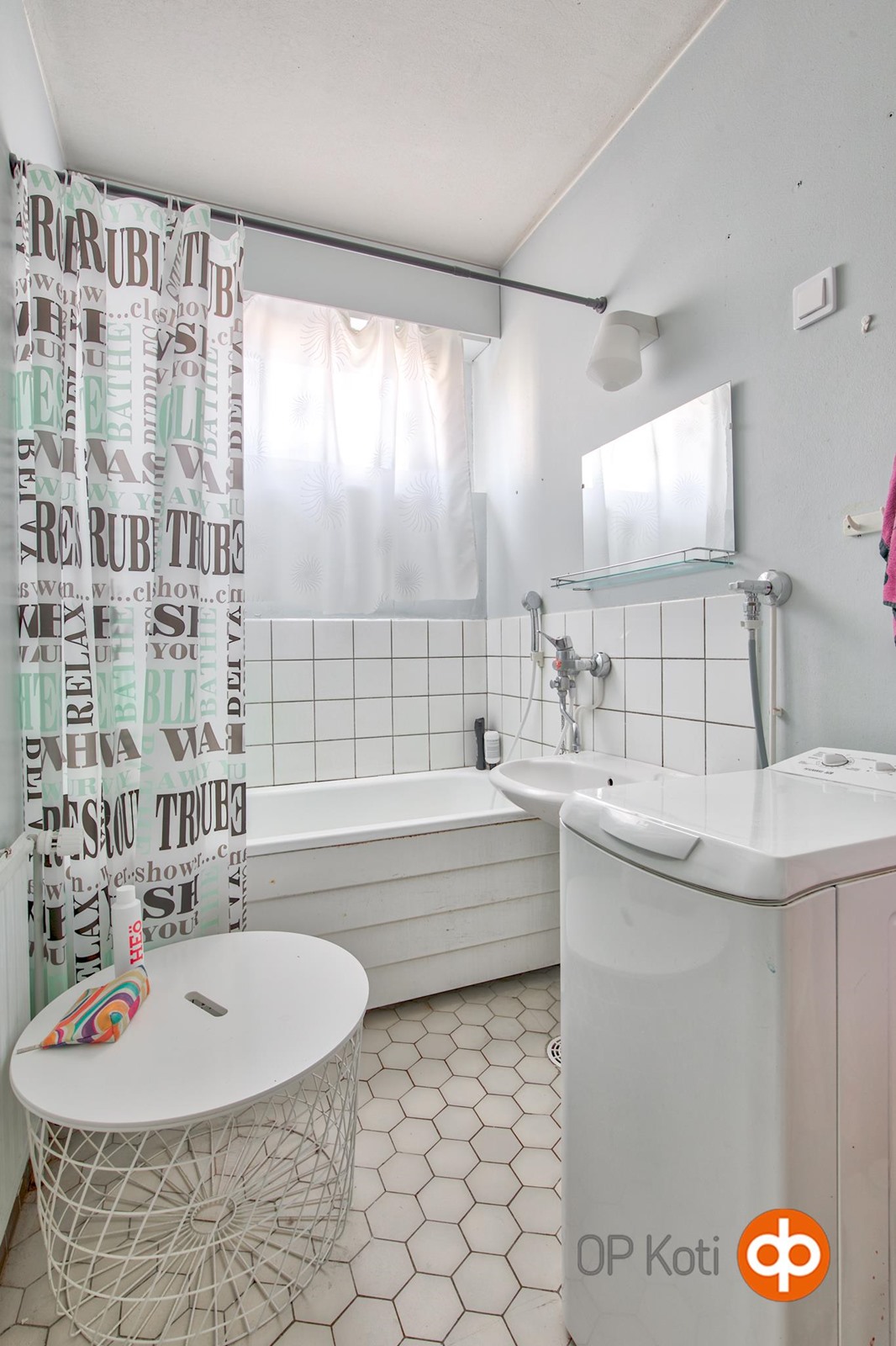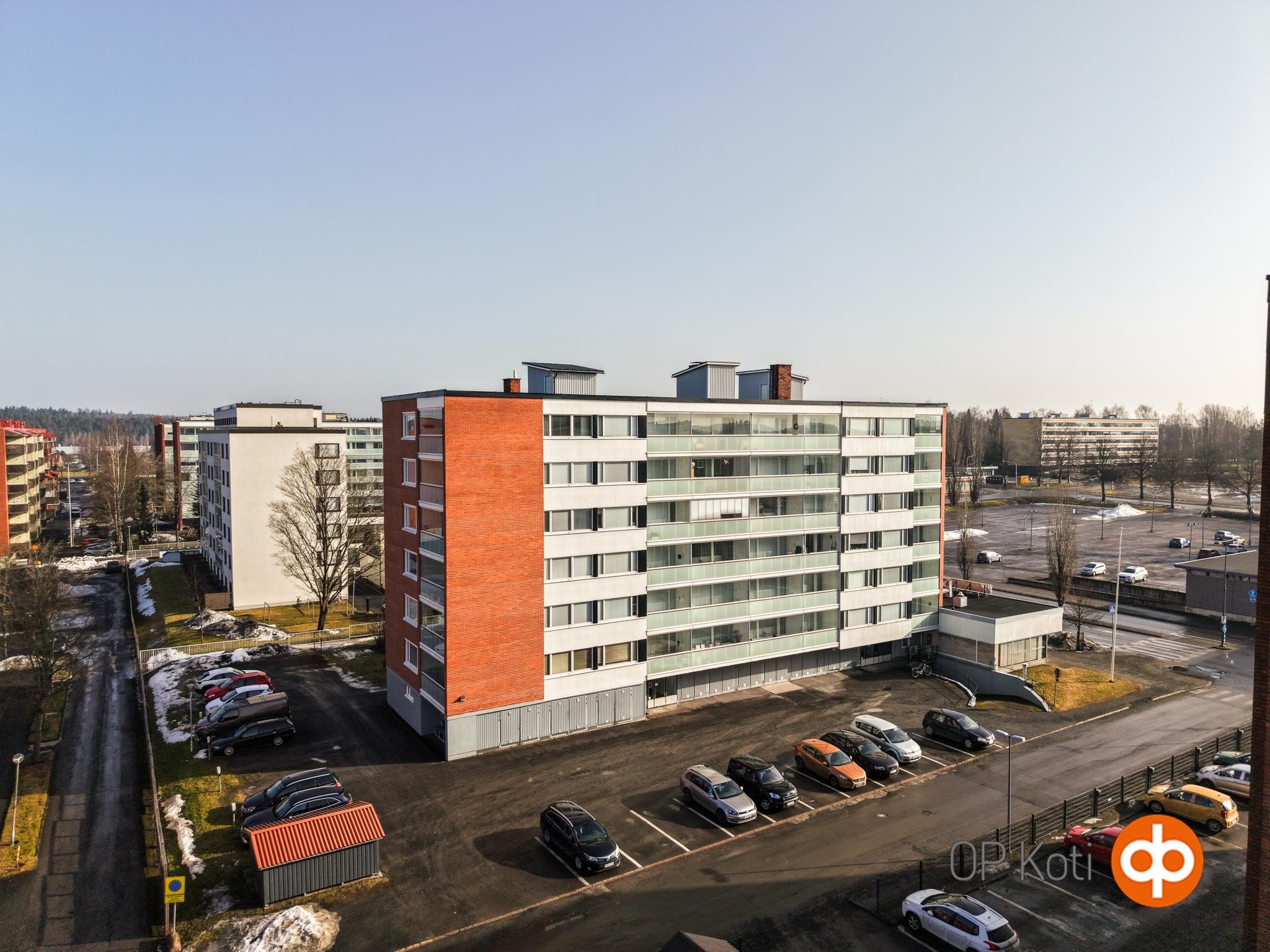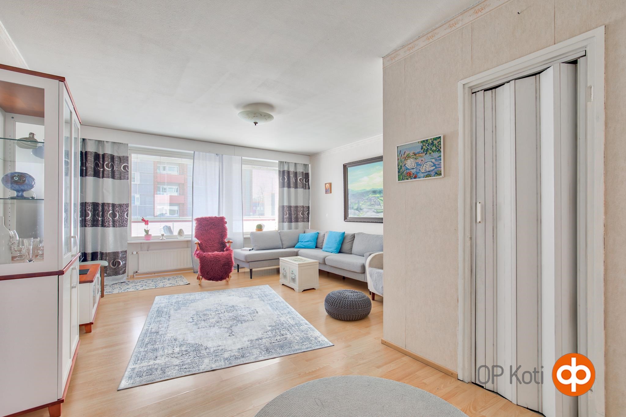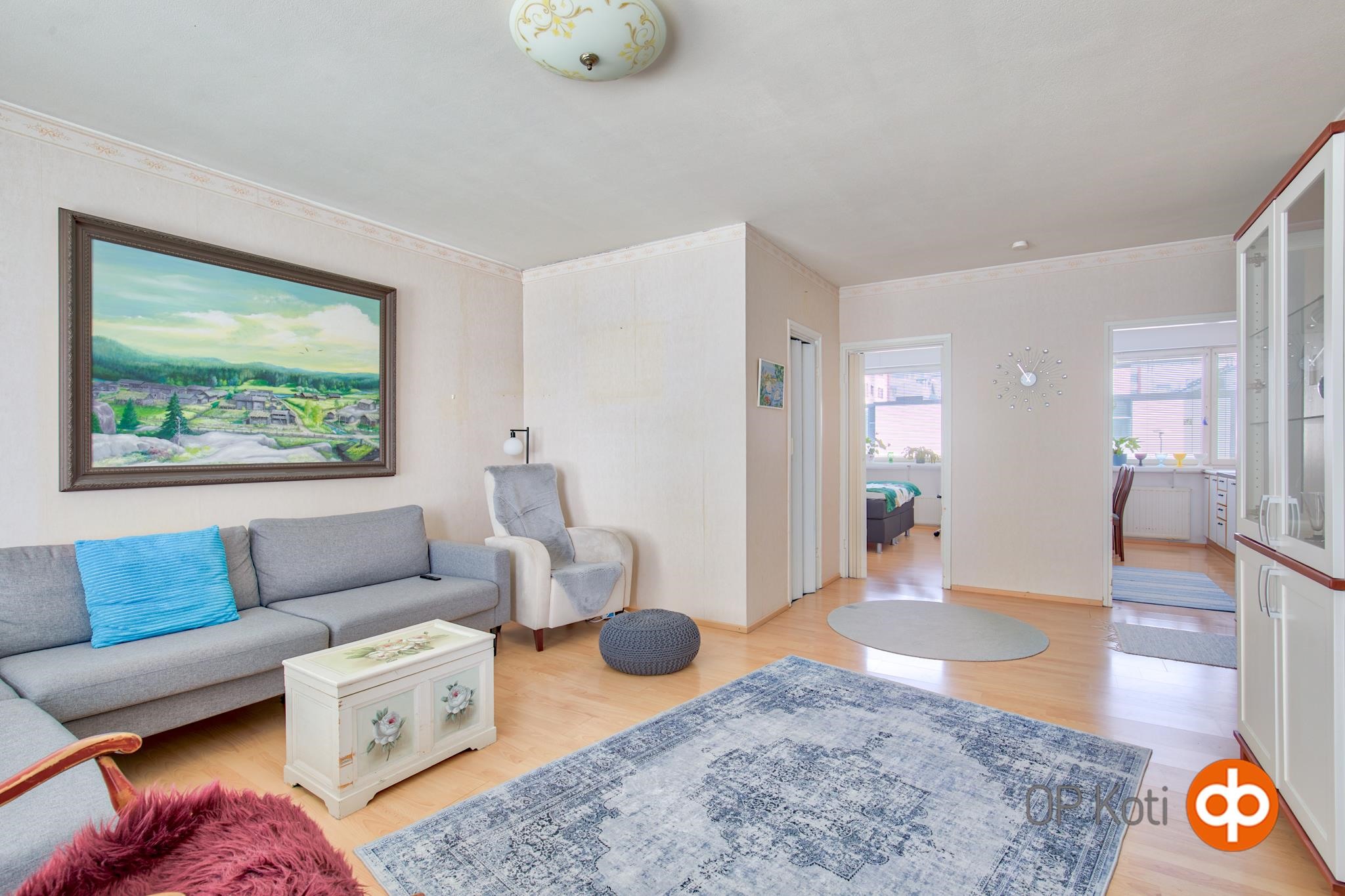 Ovesta sisään astuessa vastaan tulee avara eteisaula, josta on käynnit keittiöön, makuuhuoneeseen, kylpyhuoneeseen sekä tilavaan olohuoneeseen. Lasitettu parveke on erittäin siistissä kunnossa ja muuttuukin kelien lämmetessä viihtyisäksi kesäolohuoneeksi. Läpitalon huoneisto mahdollistaa kesähelteillä läpivedon sekä tuo valoisuutta asuntoon. Kylpyhuone on elinkaarensa päässä ja kaipaa remonttia, tässä onkin mahdollisuus remontoida itselleen mieleinen kylpyhuone ikkunalla varustettuna, joka on kerrostaloissa poikkeuksellista!