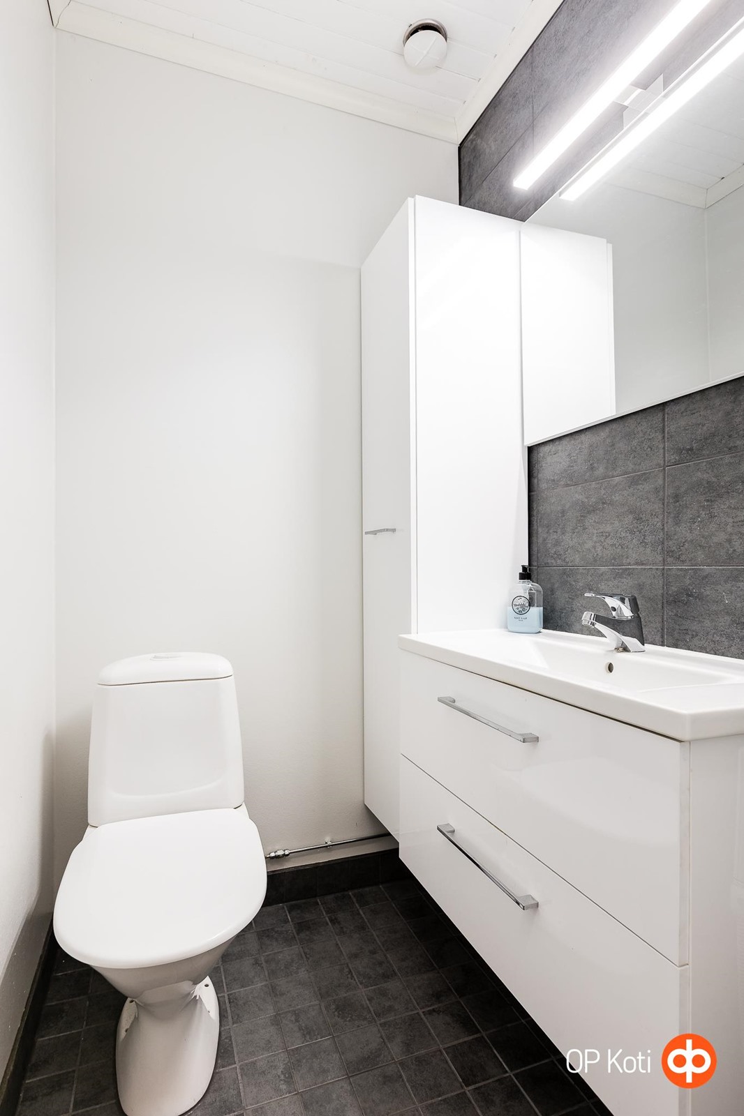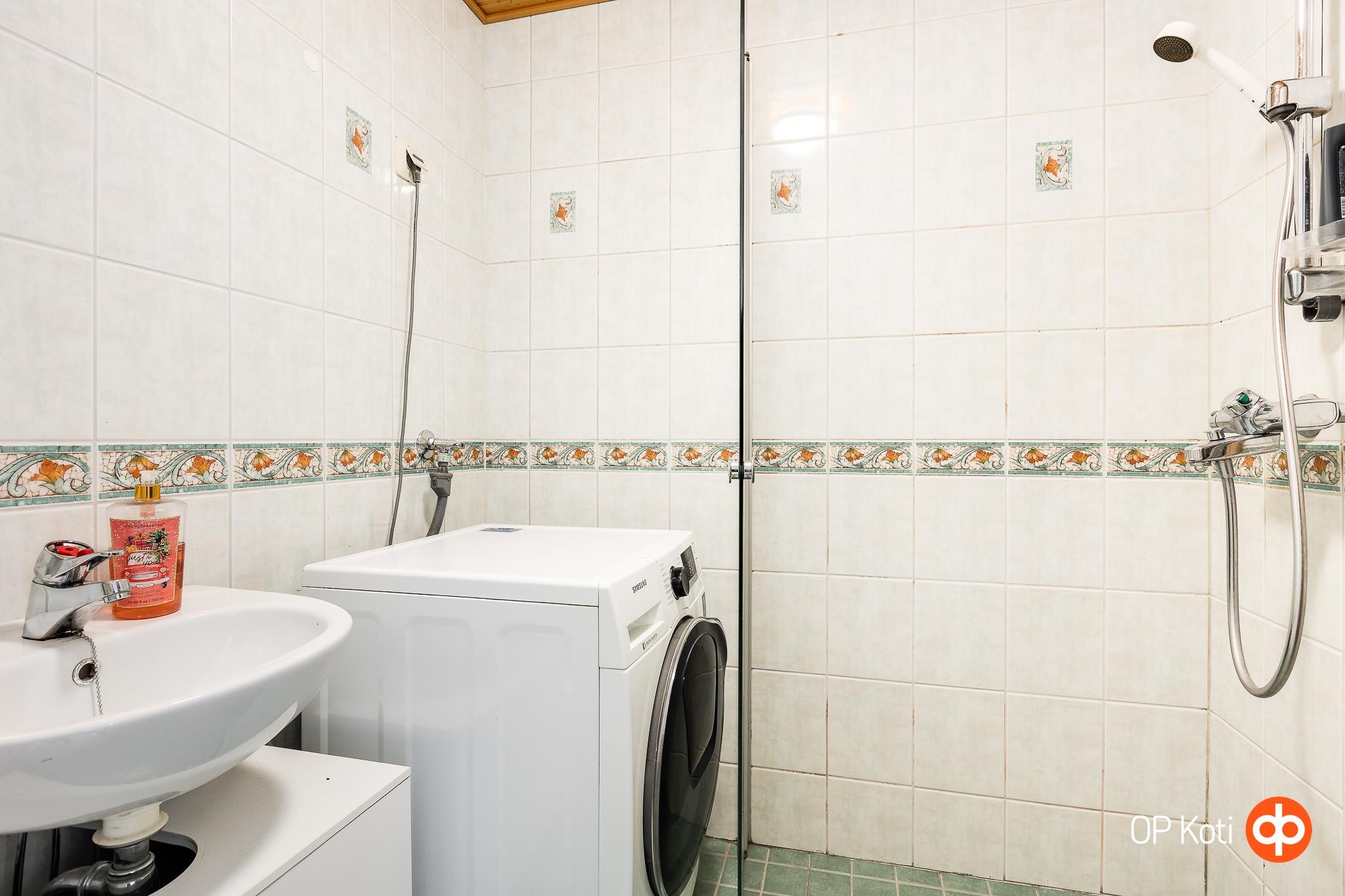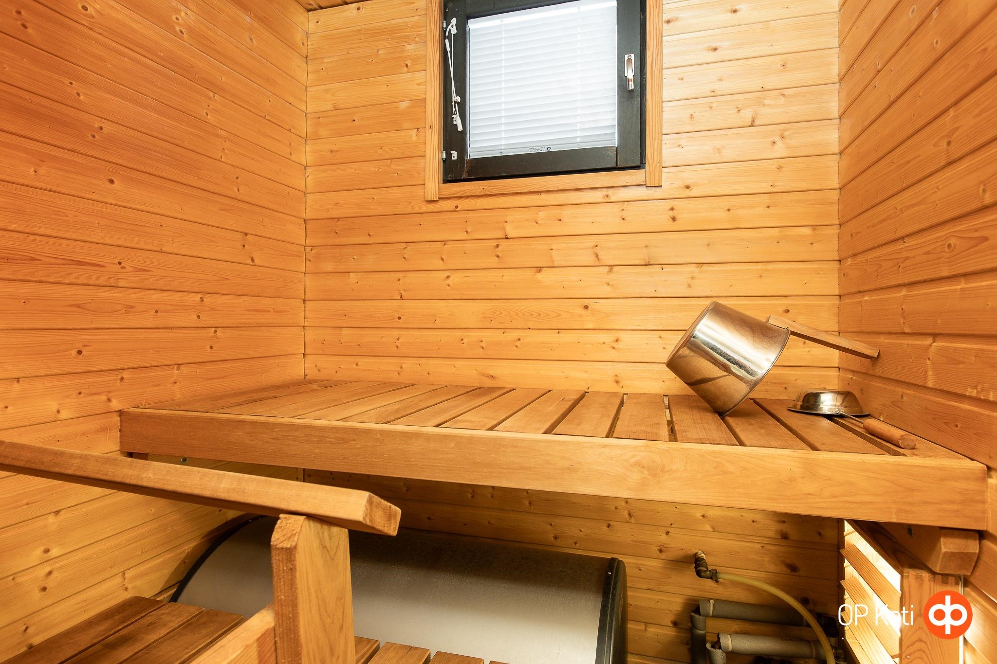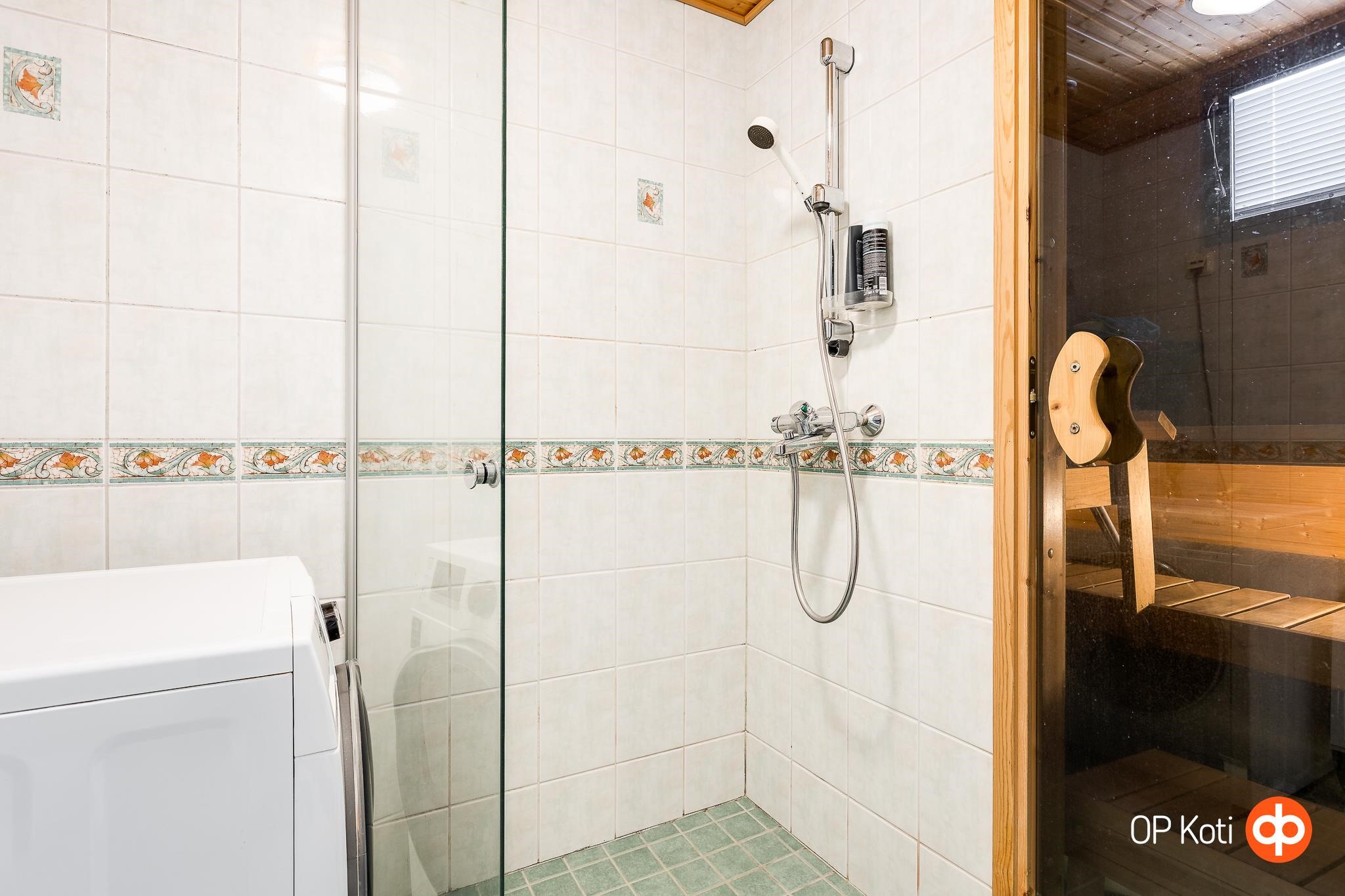 - Sauna, sähkökiuas, kylpyhuone, erillinen wc peili, allaskaappi, suihku, suihkuseinä kääntyvä, pesukoneliitäntä, kiinteät valaisimet.