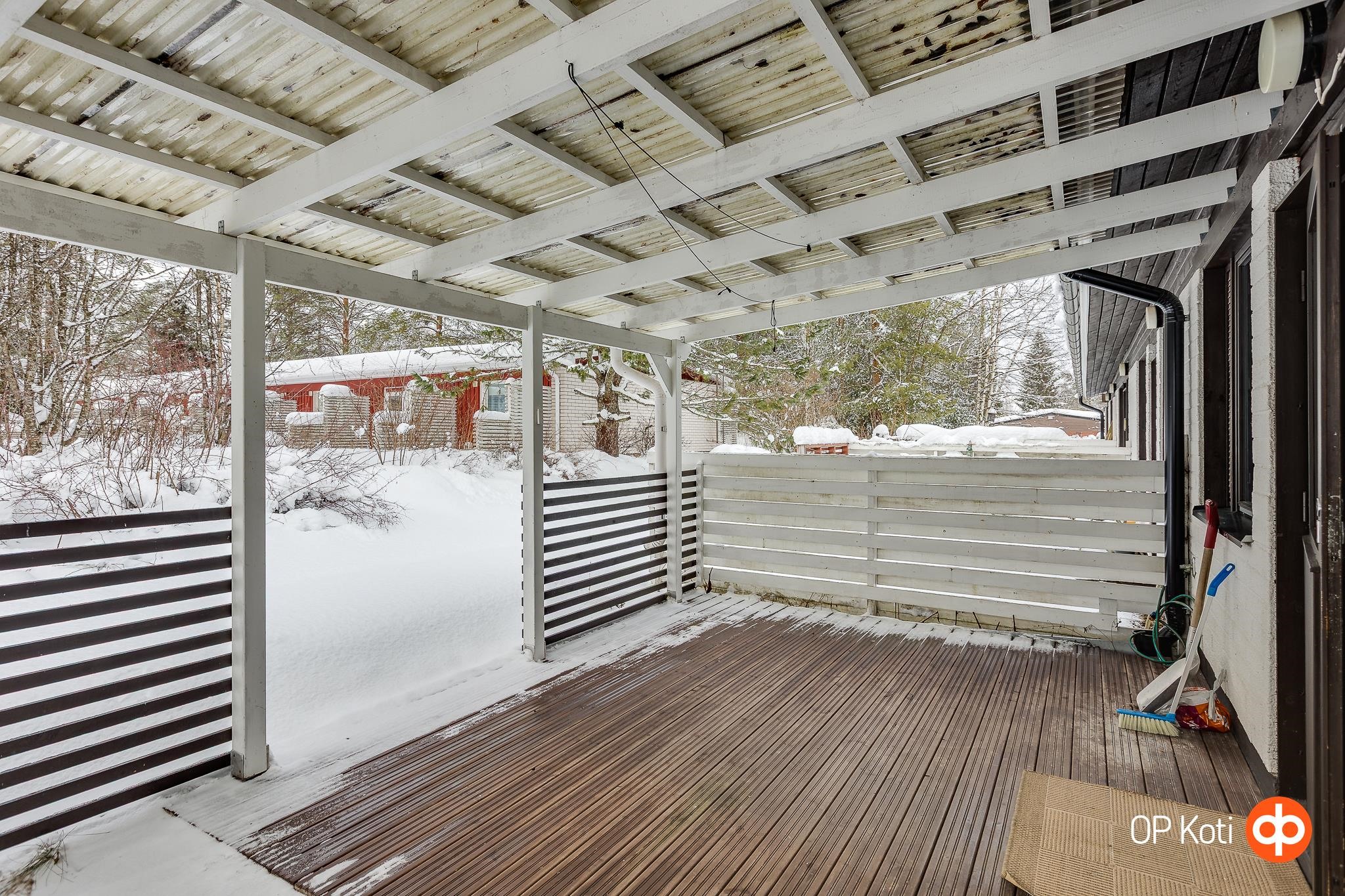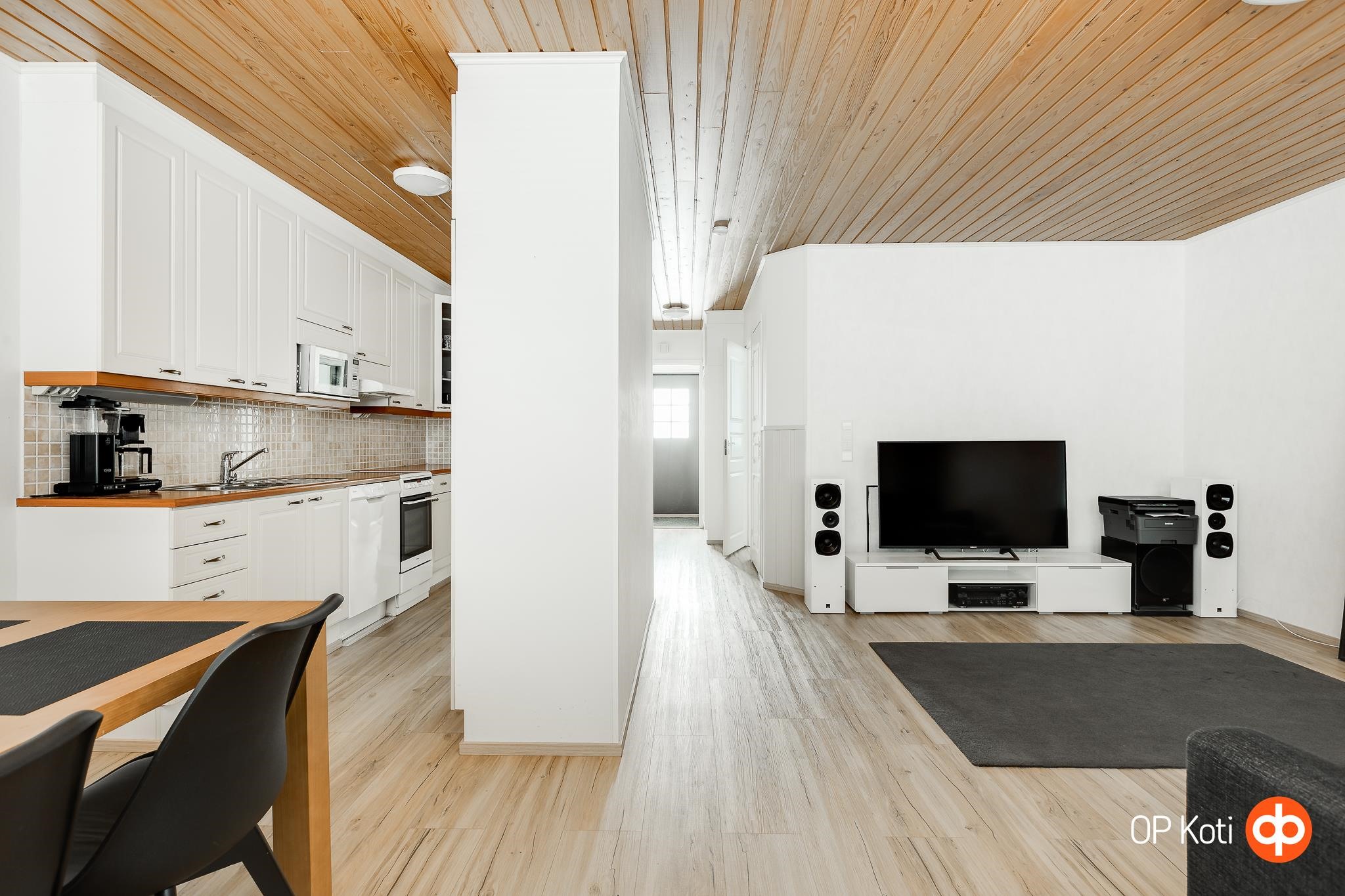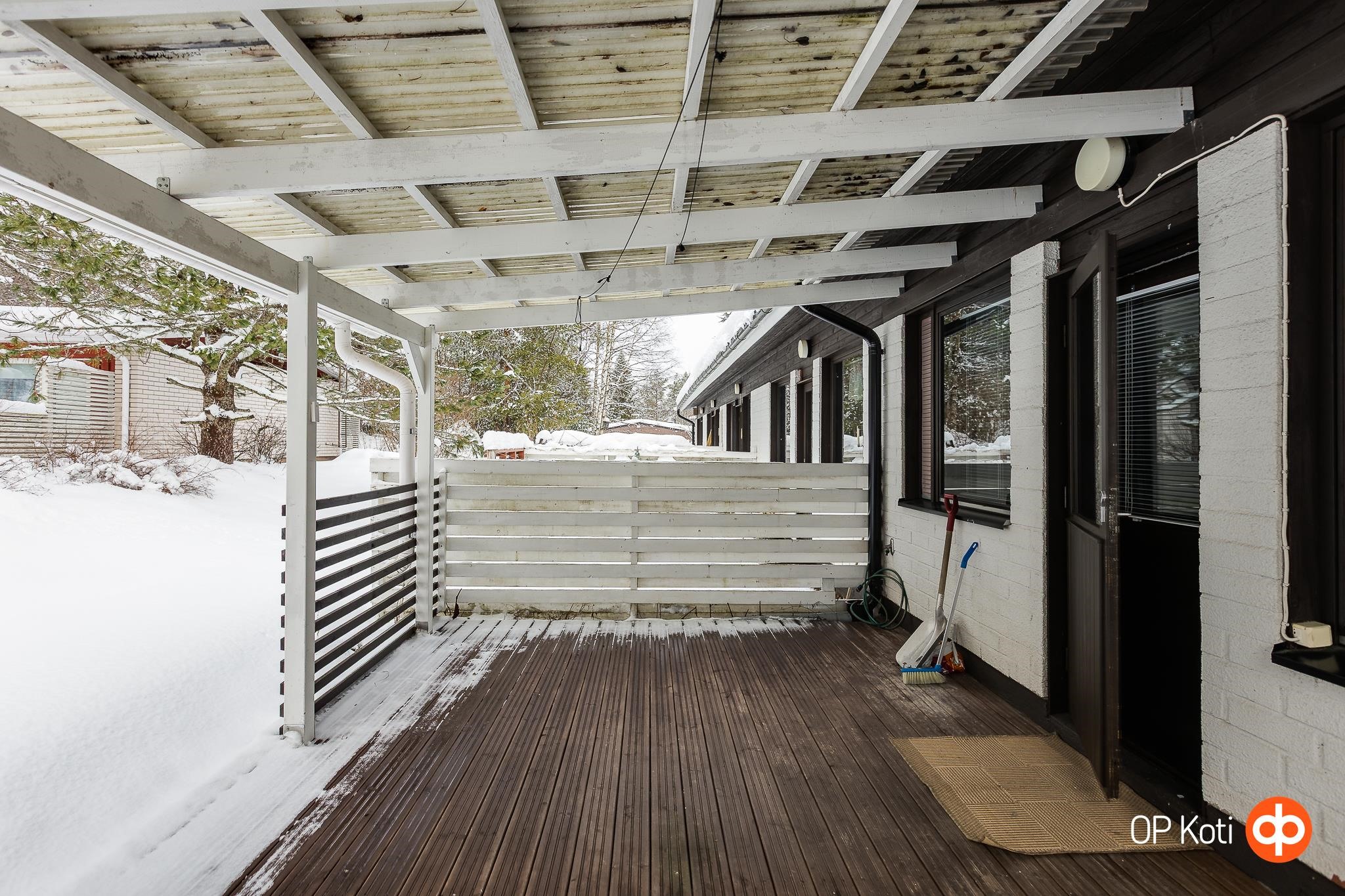 Tämä koti sopii erinomaisesti niin pienelle perheelle, pariskunnalle kuin yksinasuvalle, joka arvostaa vaivatonta asumista ja väljää tilankäyttöä. Kodin sydän on avara olohuone, joka yhdistyy saumattomasti keittiöön ja ruokailutilaan luoden tilan, jossa on helppo viettää aikaa yhdessä ja nauttia arjen hetkistä. Vaatehuoneessa on runsaasti säilytystilaa, ja ulkovarasto tarjoaa lisää käytännöllisyyttä kausitavaroille. Takapihalla on tilava, katettu terassi, joka toimii viihtyisänä olohuoneen jatkeena pitkälle syksyyn. Autokatos kuuluu asunnon hintaan ja tekee arjen kulkemisesta helppoa ympäri vuoden.