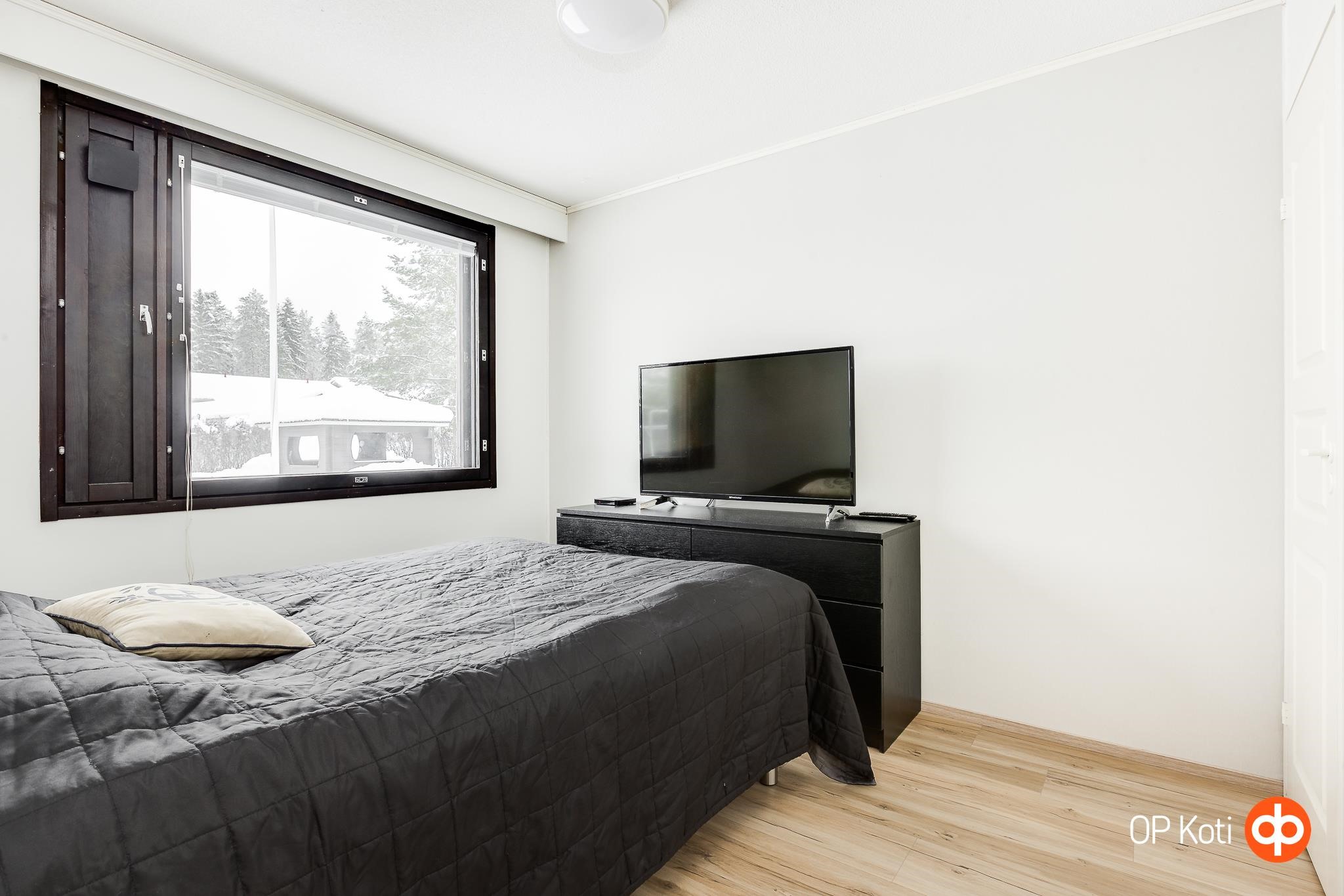 Keittiö: vinyylilankku, tapetti. Olohuone: vinyylilankku, tapetti. Makuuhuone 1: vinyylilankku, tapetti/maali. Sauna: laatta, paneli. Kylpyhuone: laatta, laatta. Eteinen: vinyylilankku, ässätex. Wc: laatta, maali/laatta.