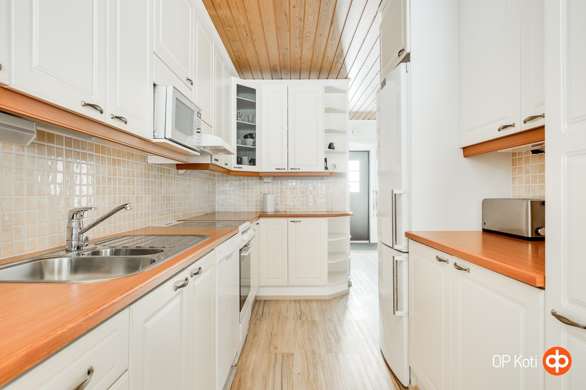 - Jääkaappipakastin, lattialiesi, liesitaso, induktioliesi, liesituuletin, astianpesukone, kaapistot, kiinteät valaisimet.
