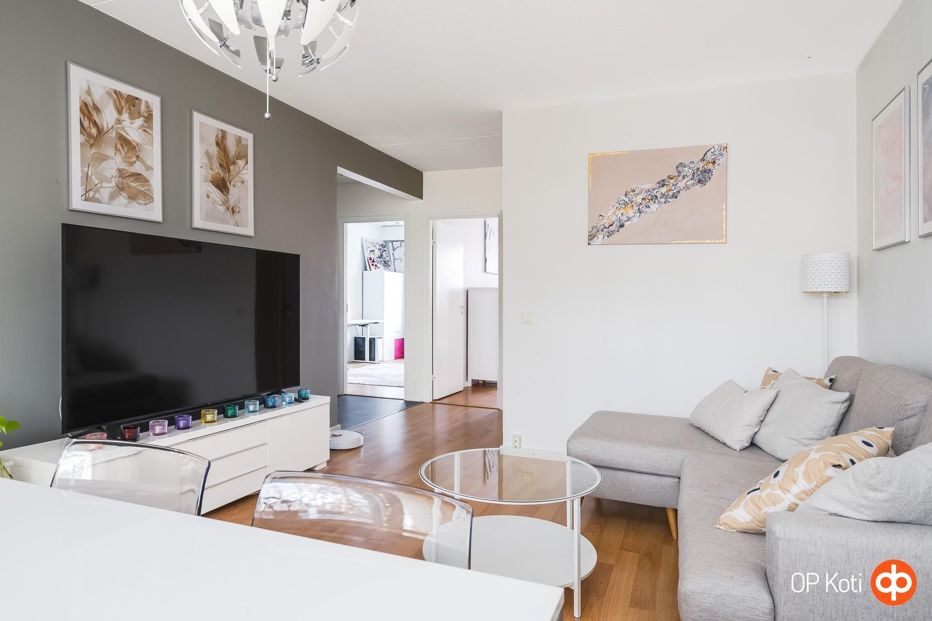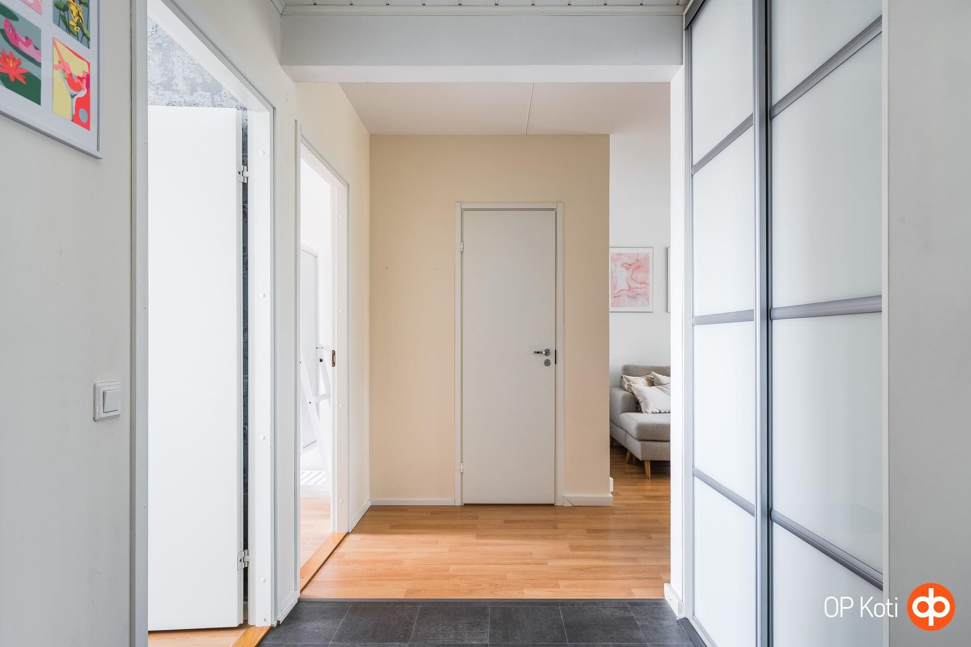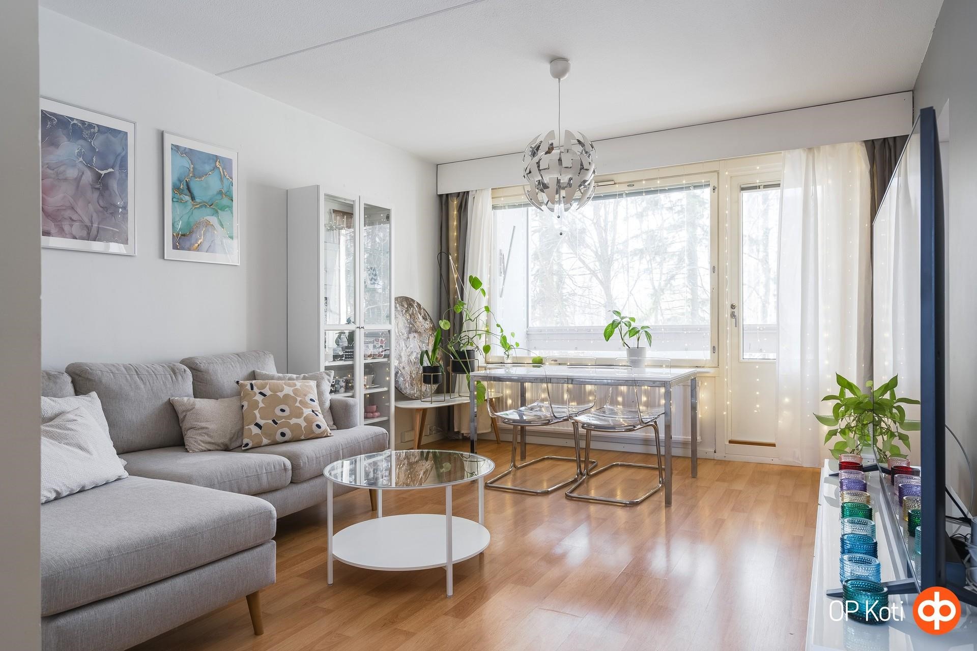 Läpitalon pohjaratkaisu avaa valon huoneisiin aamusta iltaan ja lasitetulta länsiparvekkeelta avautuvat vehreät näkymät tuovat ympäristöön rauhallisen tunnelman. Huoneiston pinnat ja keittiö ovat hyväkuntoiset, ja taloyhtiön mittavat remontit, mukaan lukien juuri valmistunut linjasaneeraus, tuovat asumiseen pitkäaikaista huolettomuutta. Kattoremontin huoneistokohtainen hankeosuus on jyvitetty ja sisältyy huoneiston yhtiölainaosuuteen.