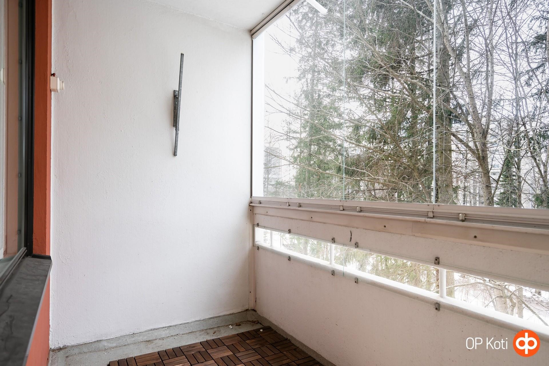 - Lasitettu länsiparveke, josta vehreät näkymät piha- ja puistoalueelle.