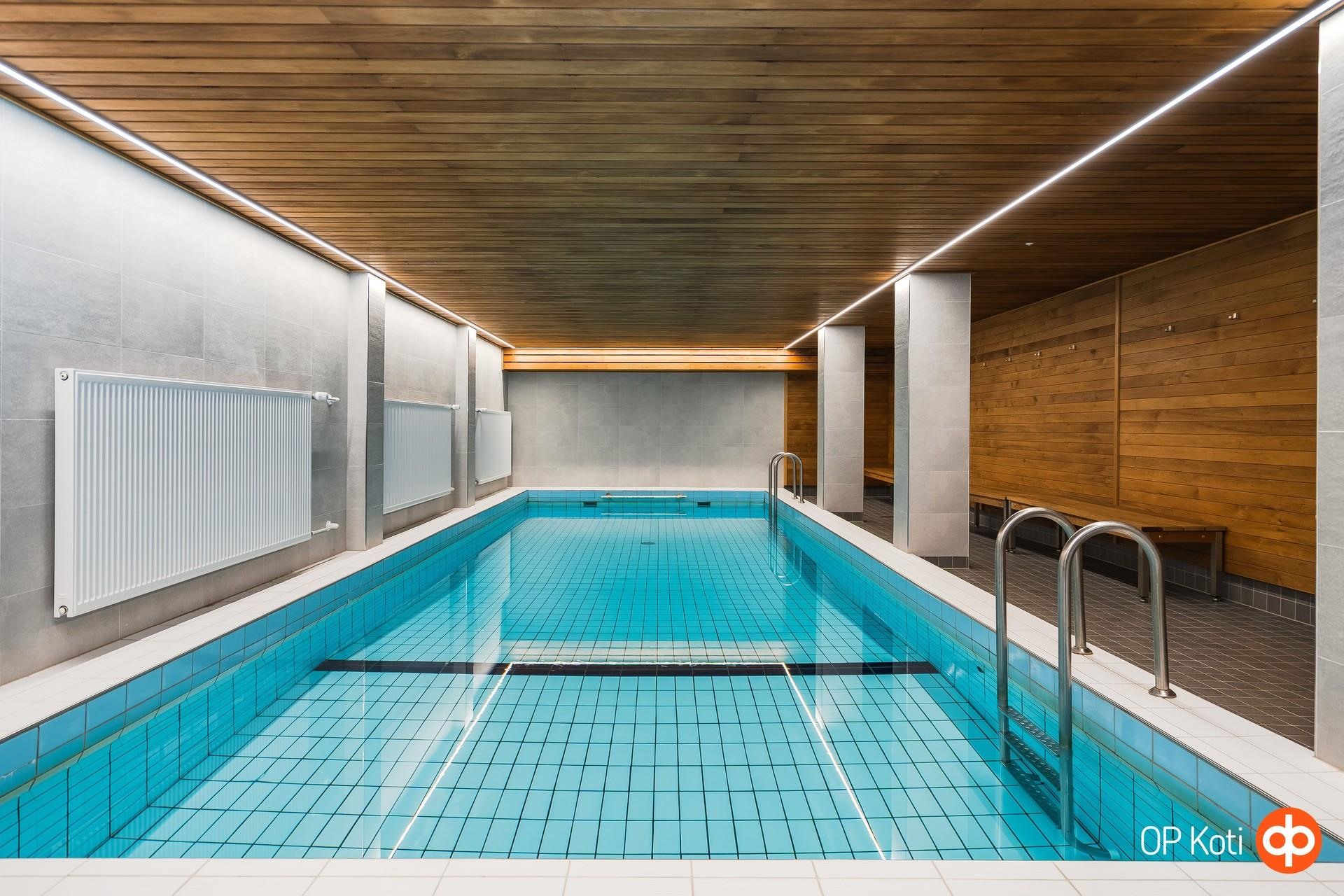 Taloyhtiön oma uima-allas tekee asumisesta poikkeuksellisen miellyttävää, mahdollisuus aloittaa päivä virkistävällä aamu-uinnilla on herkkua tässä talossa. Saunat, kerhotilat ja muut yhteiset tilat täydentävät kokonaisuuden.