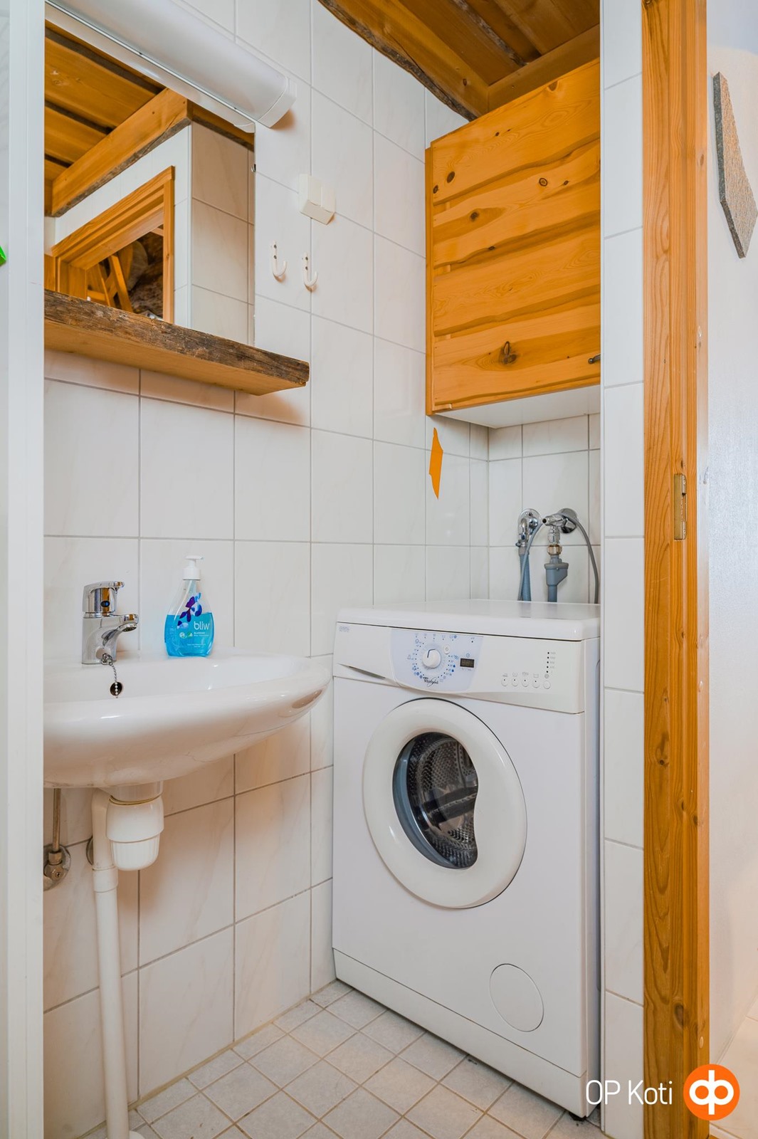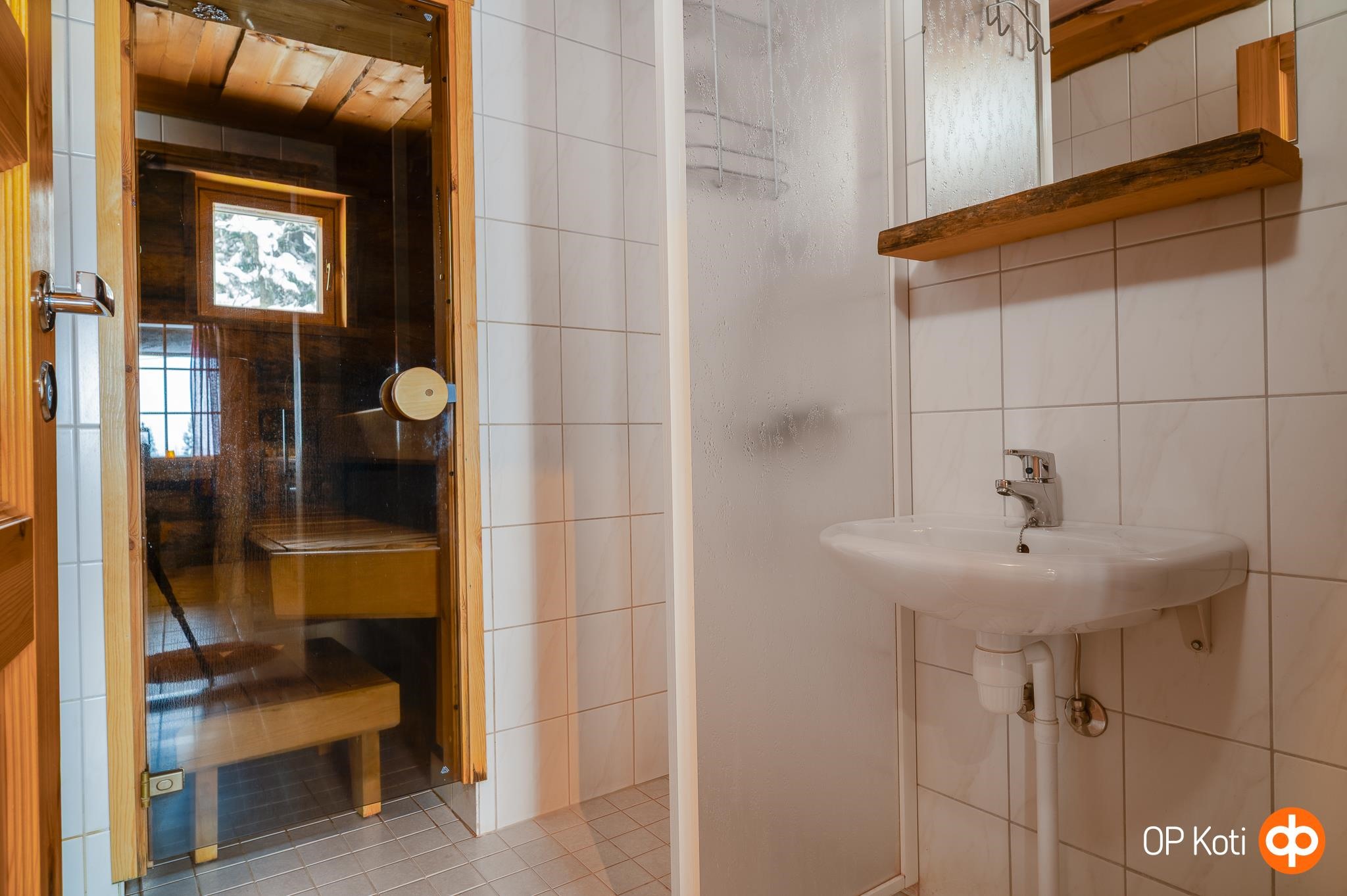 - Sauna, sähkökiuas, kylpyhuone, erillinen wc, suihku, pesukoneliitäntä, lattialämmitys, kiinteät valaisimet.