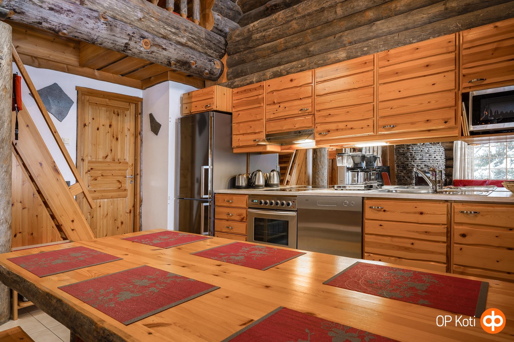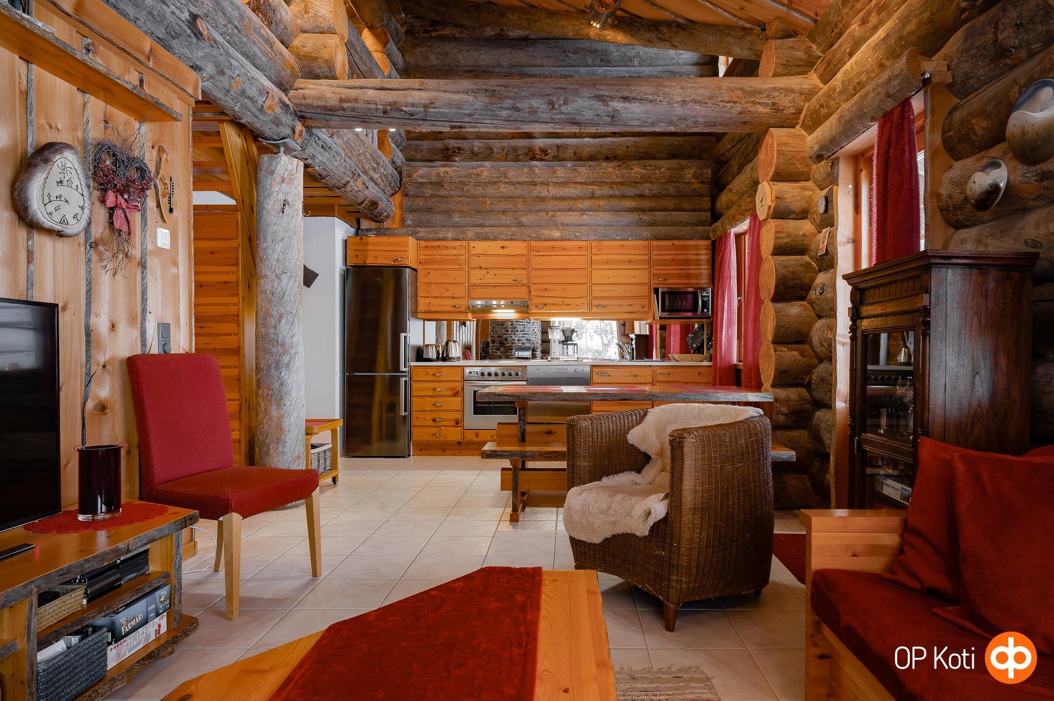 Tämä lämminhenkinen kelomökki on täydellinen valinta niin omaksi vapaa-ajan tukikohdaksi kuin tuottoisaksi vuokrakohteeksikin. Huoneiston tilaratkaisu tarjoaa käytännöllisyyttä: alakerrassa on avara olohuone, jonka varaava takka luo tunnelmaa ja lämpöä talvi-iltoihin. Hyvin varusteltu keittiö mahdollistaa vaivattoman ruoanlaiton, ja ruokailutila yhdistyy luontevasti oleskelutilaan. Yläparvella on mukavat nukkumapaikat kahdelle, ja alakerrassa mahtuu majoittumaan yhteensä neljä henkeä. Mökin sydän on oma sauna, jonka lauteet on hiljattain kunnostettu, sekä pesutilat, joissa arjen askareet hoituvat jouhevasti. Oman pihan ja tilavan terassin ansiosta voit nauttia ulkoilmasta ja auringonpaisteesta aamusta iltaan.