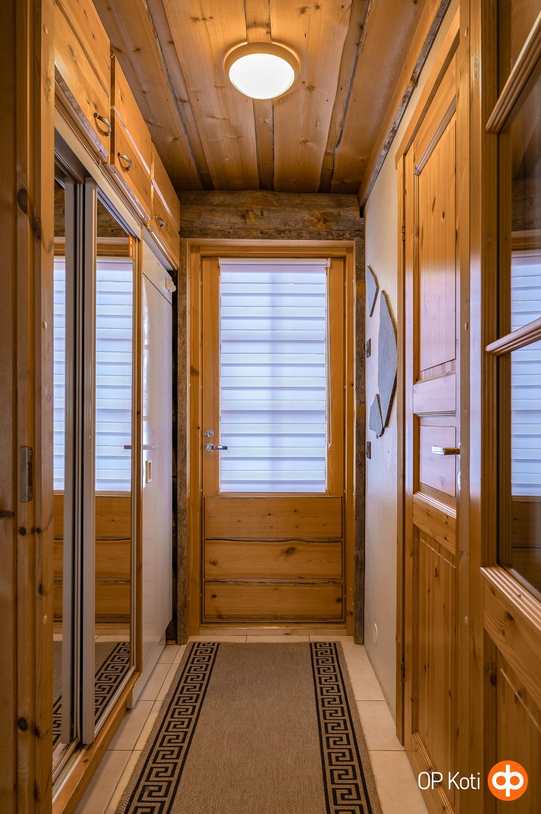 Keittiö: laatta, keloseinät. Olohuone: laatta, keloseinät. Makuuhuone 1: laatta, keloseinät. Makuuhuone 2: laatta, keloseinät. Sauna: laatta, keloseinät. Kylpyhuone: laatta, laatta. Eteinen: laatta, keloseinät. Wc: laatta, keloseinät. Parvi: mäntylautalattia, keloseinät.