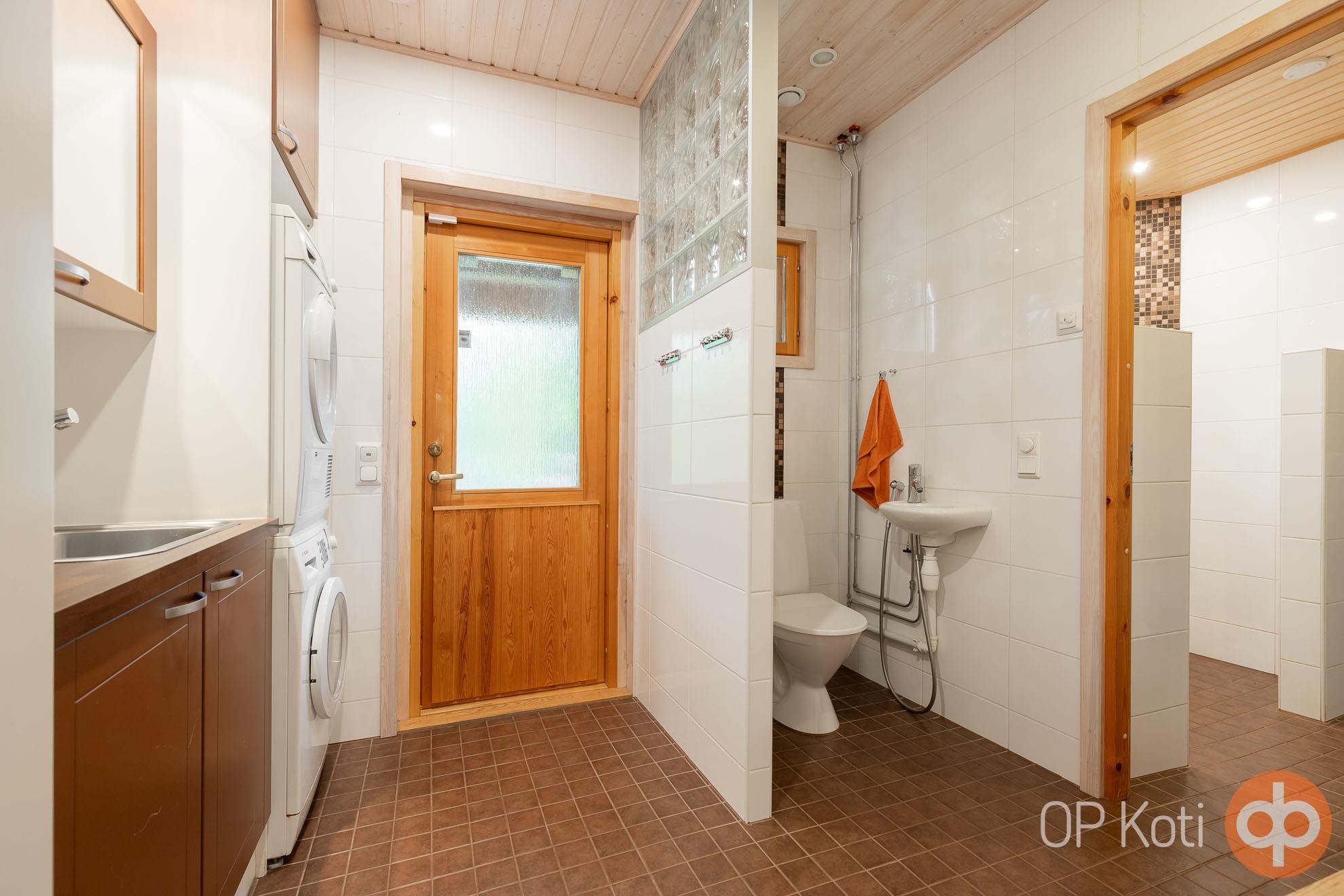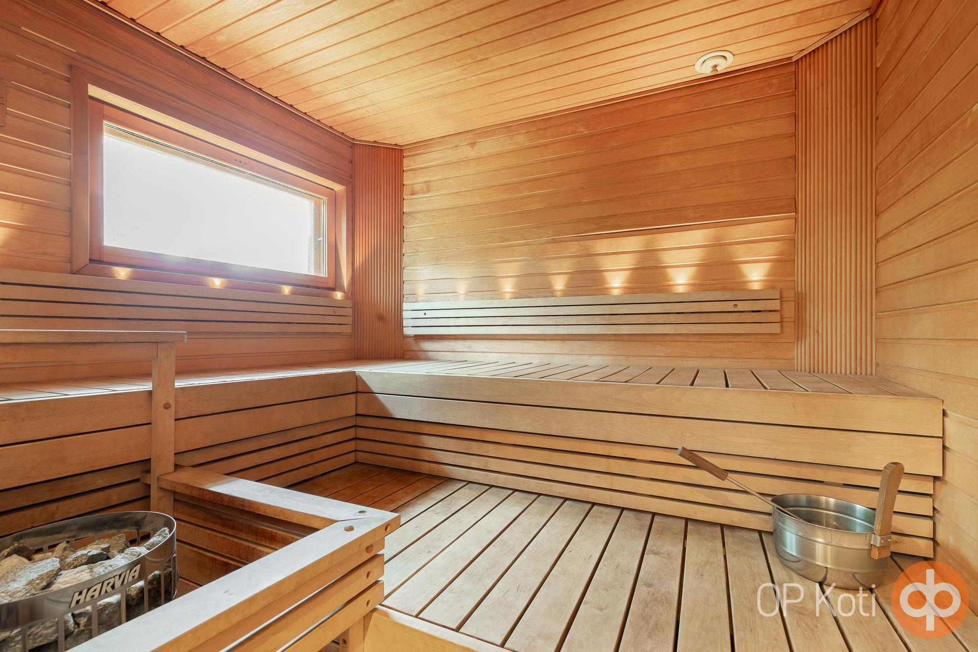 - Sauna, sähkökiuas, kylpyhuone, erillinen wc, suihku, peilit, kaapit, allaskaappi, lattialämmitys, kiinteät valaisimet, Pesukone, Kuivausrumpu.
