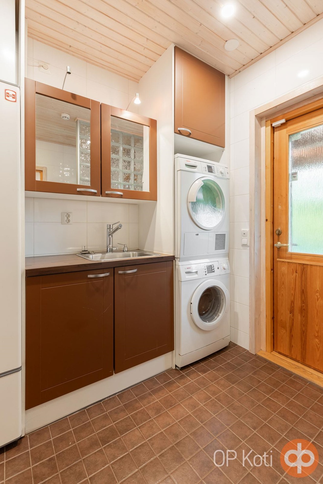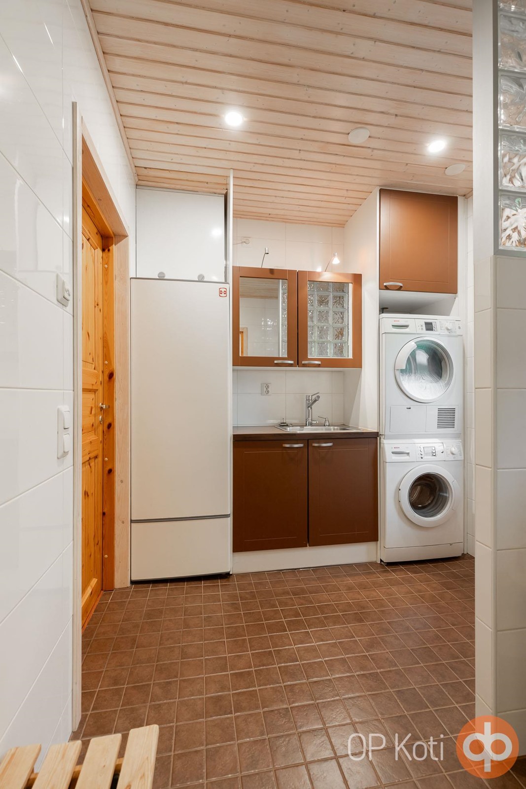 Keittiöstä löytyy kaikki ruuanlaittoa ja arkea helpottavat ominaisuudet, kuten astianpesukone, liesi, uuni, mikroaaltouuni, leivinuuni sekä hyvin työskentelytasoja. Kodinhoitohuoneesta löytyy puolestaan pyykinpesukone, kuivausrumpu, suihkut ja oma sauna.