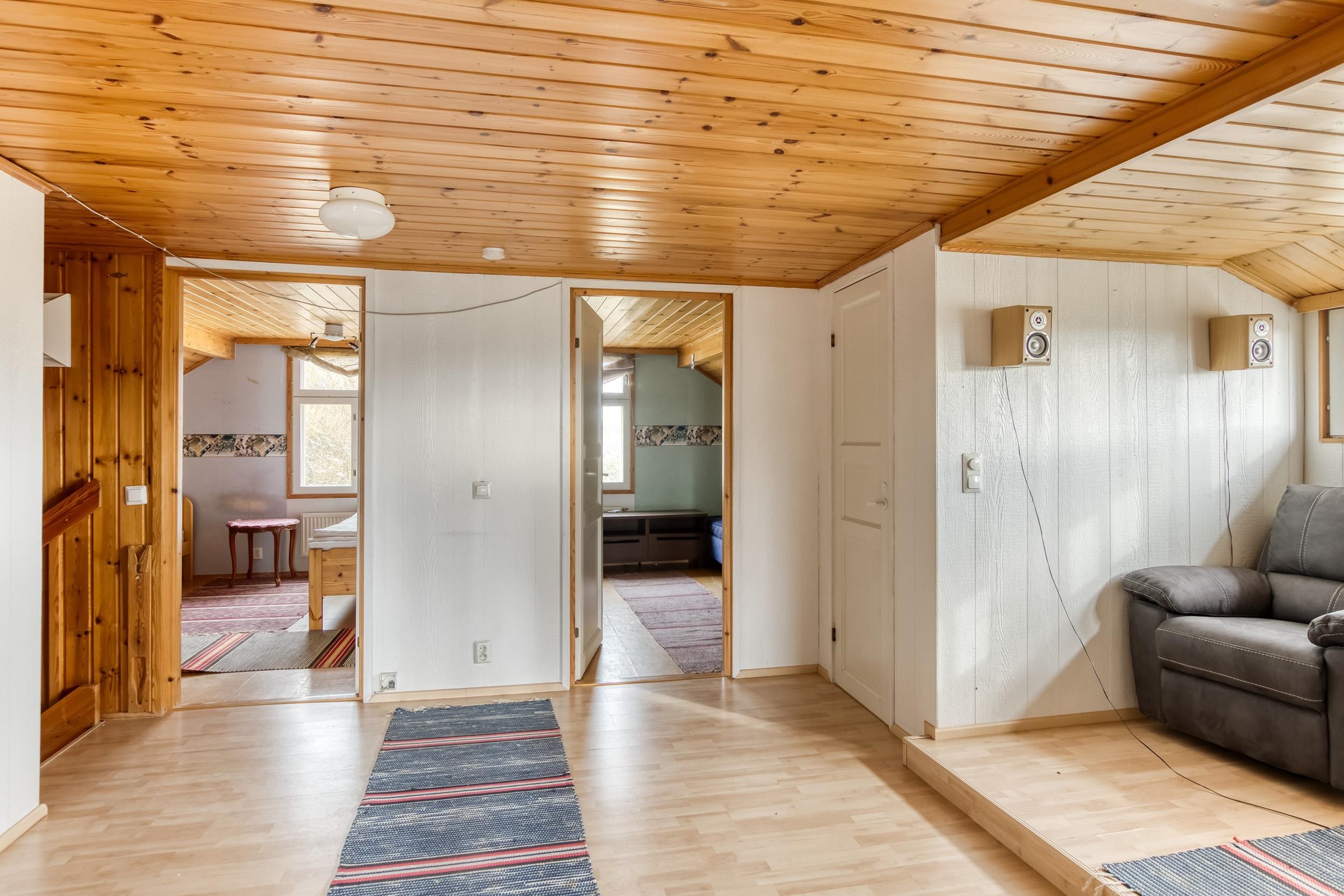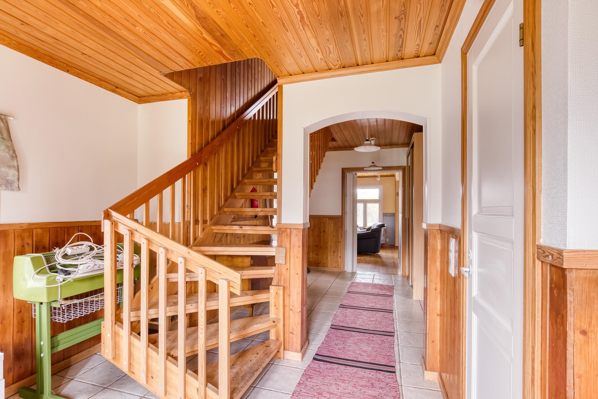 Keittiö: Lautalattia, seinät puolipaneli/tapetti. Olohuone: Lautalattia, seinät tapetti. Makuuhuone 1: Lautalattia, seinät tapetoitu (alakerta). Makuuhuone 2: Lattia korkki, seinät tapetoitu (yläkerta). Makuuhuone 3: Lattia korkki, seinät tapetoitu (yläkerta). Kodinhoitohuone: Lattia laatoitettu, seinät lasikuitutapetti. Sauna: Lattia laatta, seinät paneli. Kylpyhuone: Lattia laatta, seinät laatta. Eteinen: Lattia laatta, seinät puolipaneli/tapetti. Wc: Lattia laatta, seinät laatta. Makuuhuone 4: Lattia vinyyli, seinät tapetoitu (yläkerta). Aula: Lattia laminaattia, seinät paneloitu (yläkerta). Ruokailuhuone: Lattia lautaa, seinät tapetoitu.