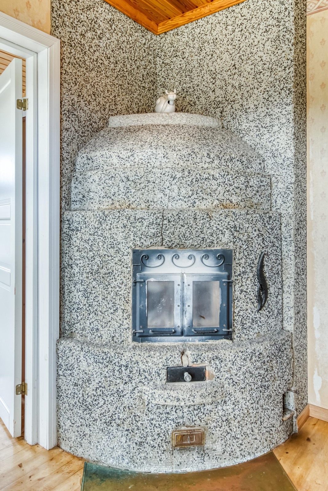- Sähkö. Piharakennuksessa olevassa lämpökeskuksessa mahdollisuus valita lämmitysmuodoksi sähkön, öljyn tai puun. Lisäksi ilmalämpöpumppu, keittiössä puuliesi/leivinuuni ja ruokailuhuoneessa avotakka.