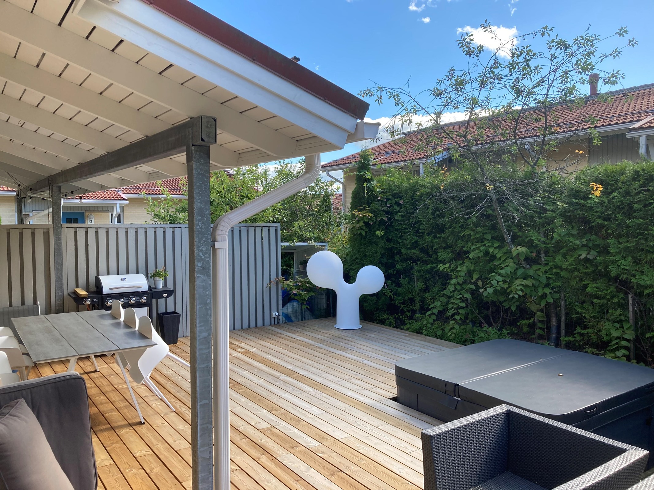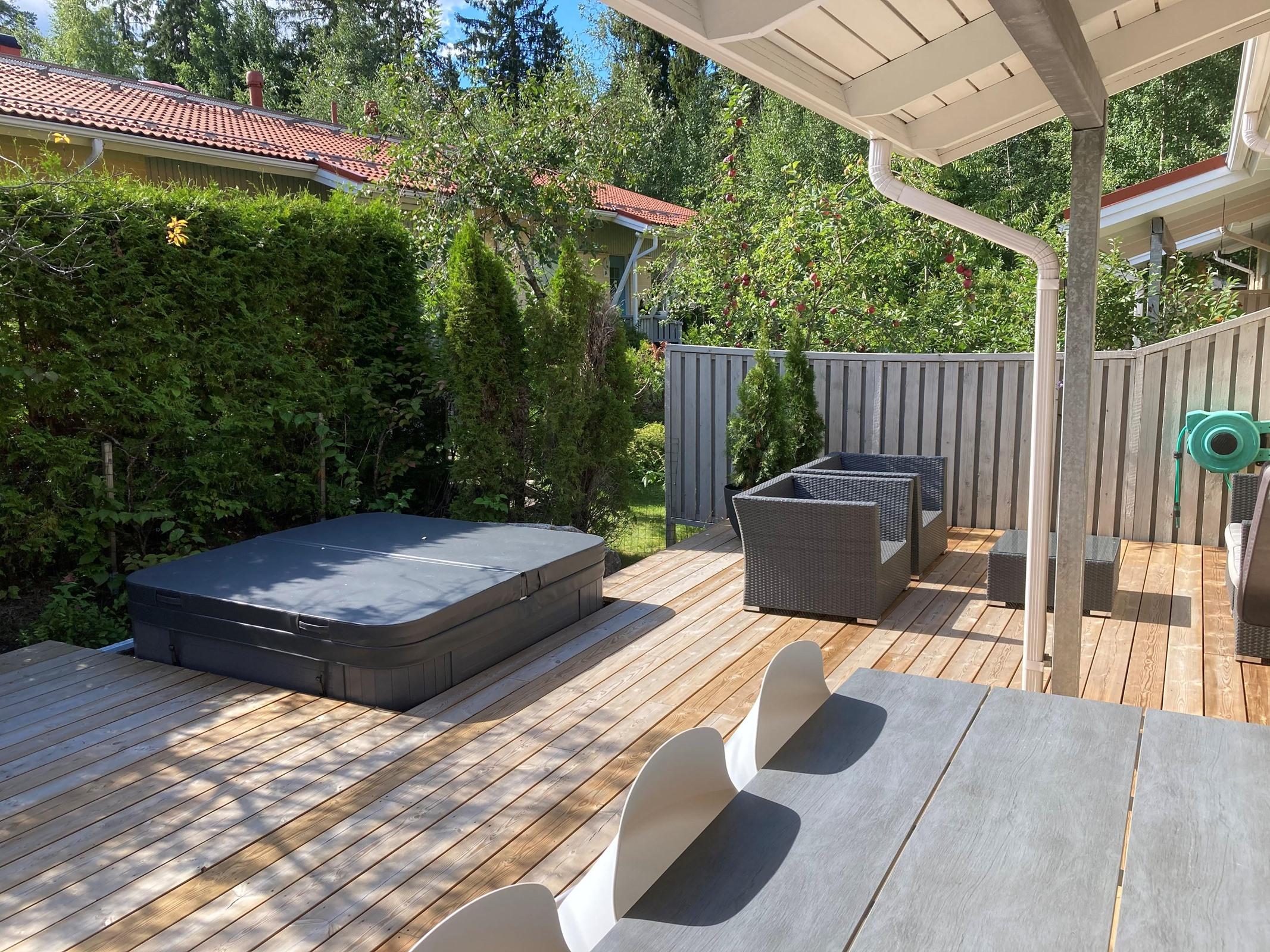 Viihtyisää asumista puiston laidalla, jossa muuttovalmis rivitalokolmio missä arjen luksus kohtaa käytännöllisyyden Tämä Tapainlinnan puistoon rajoittuvalla tontilla sijaitseva vuonna 2007 valmistunut rivitalokolmio tarjoaa huoletonta ja viihtyisää asumista yhdessä tasossa. Tyylikäs ja hyvin pidetty koti kutsuu viihtymään rauhalliselle alueelle jossa luonnonläheisyys ja moderni asumismukavuus yhdistyvät vaivattomasti. Kodin tilava pohjaratkaisu ja laadukkaat materiaalit tekevät arjesta sujuvaa ja mahdollistavat mukavan elämän niin pariskunnalle kuin pienelle perheellekin. Asunnon 80 neliötä on suunniteltu tehokkaasti: kaksi tilavaa makuuhuonetta, avara olohuone sekä vuonna 2022 uusittu Puustellin keittiö muodostavat kodin sydämen. Keittiössä laadukkaat materiaalit ja nykyaikaiset kodinkoneet tekevät ruoanlaitosta nautinnon. Olohuoneesta on käynti suurelle, suojaisalle terassille jonka poreallas tarjoaa arjen luksusta ja täydelliset puitteet rentoutumiseen. Kylpyhuoneen ja saunan laadukkaat pinnat täydentävät kokonaisuuden ja säilytystilaa löytyy runsaasti. Sijainti rauhallisella ja viihtyisällä alueella takaa hyvät palvelut sekä liikenneyhteydet. Lähistöltä löytyvät päiväkodit, koulut ja kaupat, sekä Tapainlinnan puisto tarjoaa mainiot ulkoilumahdollisuudet aivan kotioven vieressä. Alueen hyvät kulkuyhteydet tekevät liikkumisesta vaivatonta niin omalla autolla kuin julkisillakin. Asunnon tekninen kunto on erinomainen eikä remonttihuolia ole tiedossa. Vuonna 2022 uusittu Puustellin keittiö, huolellisesti pidetty yleisilme sekä laadukkaat pintamateriaalit takaavat, että kotiin voi muuttaa huoletta. Taloyhtiö on nuori ja hyvin hoidettu, mikä tuo lisäturvaa tuleville vuosille.