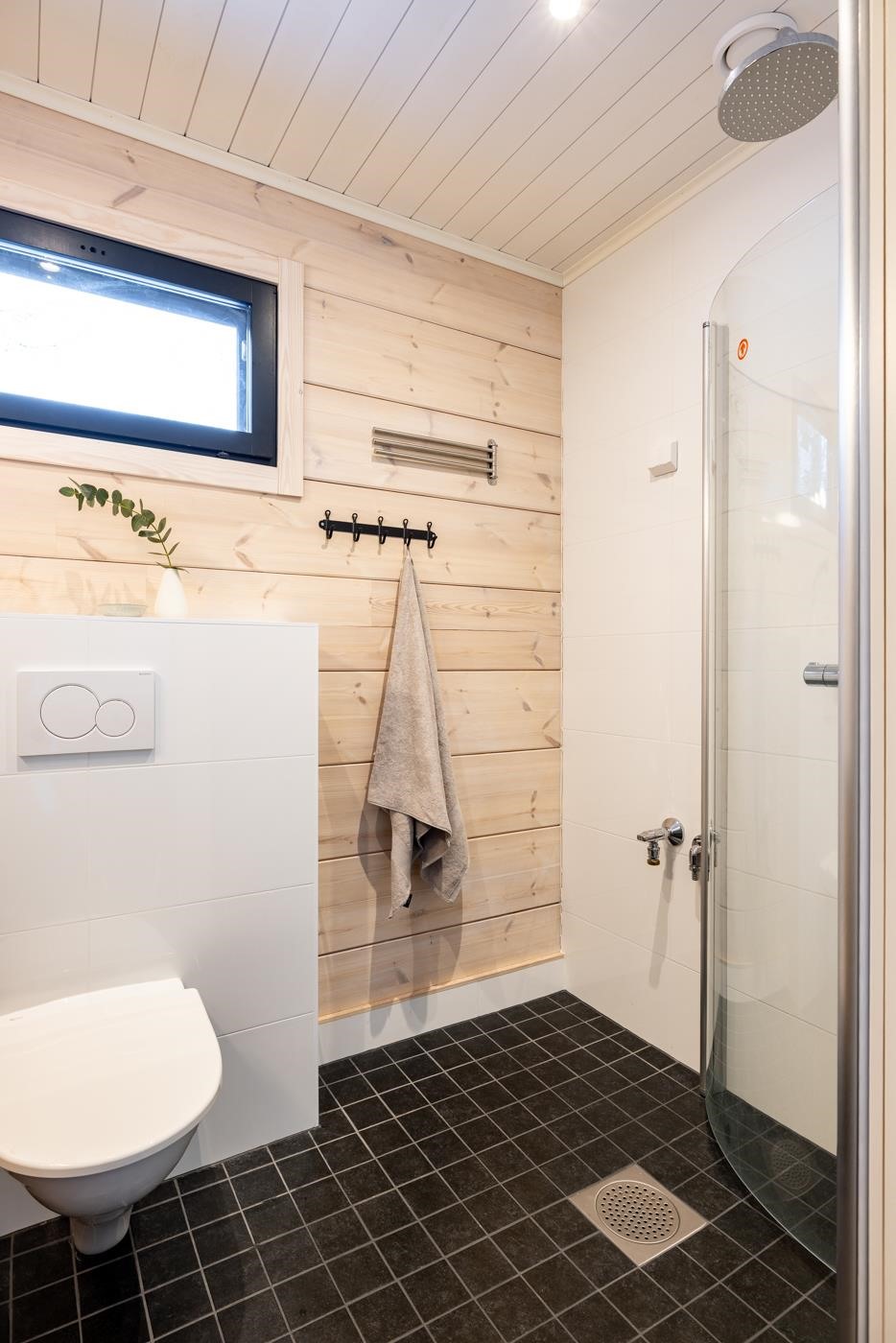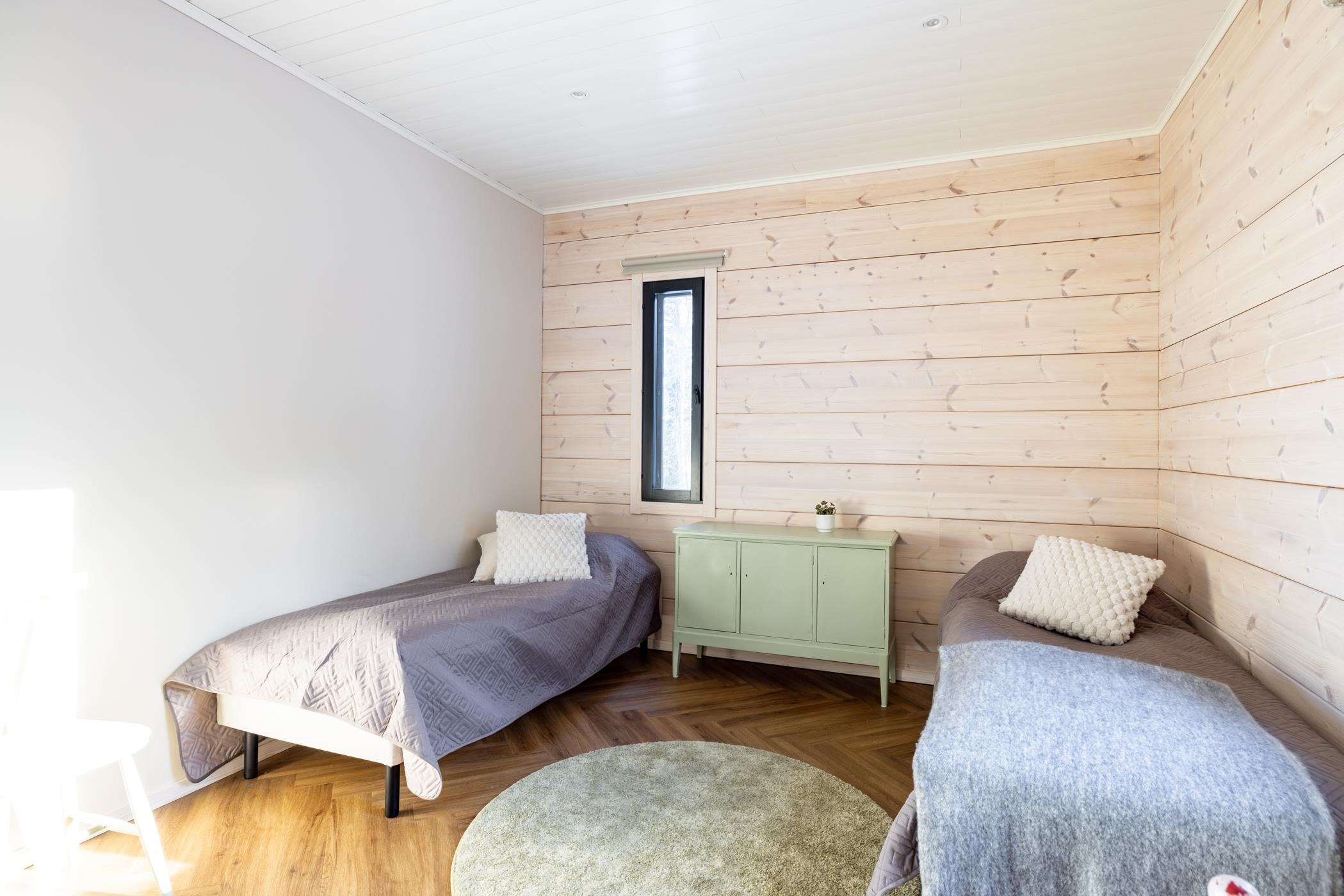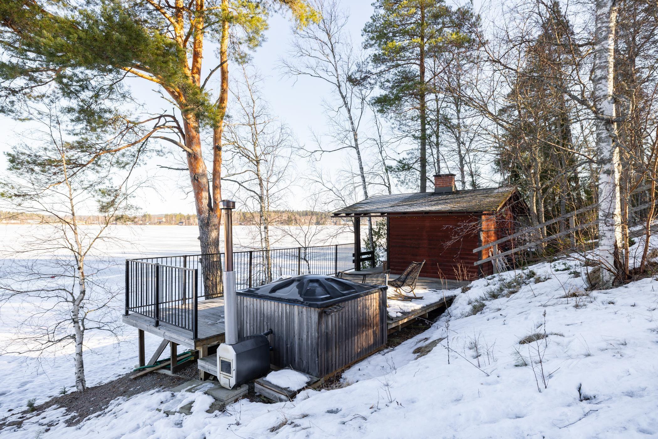 Tässä 69-neliöisessä vapaa-ajan asunnossa tilat on suunniteltu tehokkaasti ja viihtyisyyttä unohtamatta. Päärakennuksesta löytyy kaksi makuuhuonetta, moderni kylpyhuone sekä avara olohuoneen ja keittiön yhdistelmä. Suurista ikkunoista avautuvat upeat, rauhoittavat näkymät suoraan järvelle. Laadukkaasti varusteltu keittiö ja nykyaikaiset kodinkoneet tekevät arjesta vaivatonta, ja poistoilmalämpöpumppu mahdollistaa mukavan oleskelun ympäri vuoden. Lämmitys on toteutettu lattialämmityksenä. Rannan tuntumasta löytyy lisäksi tunnelmallinen rantasauna sekä palju, jotka täydentävät vapaa-ajan elämyksen - täällä nautit luonnosta ja järvimaisemista täysin siemauksin.
