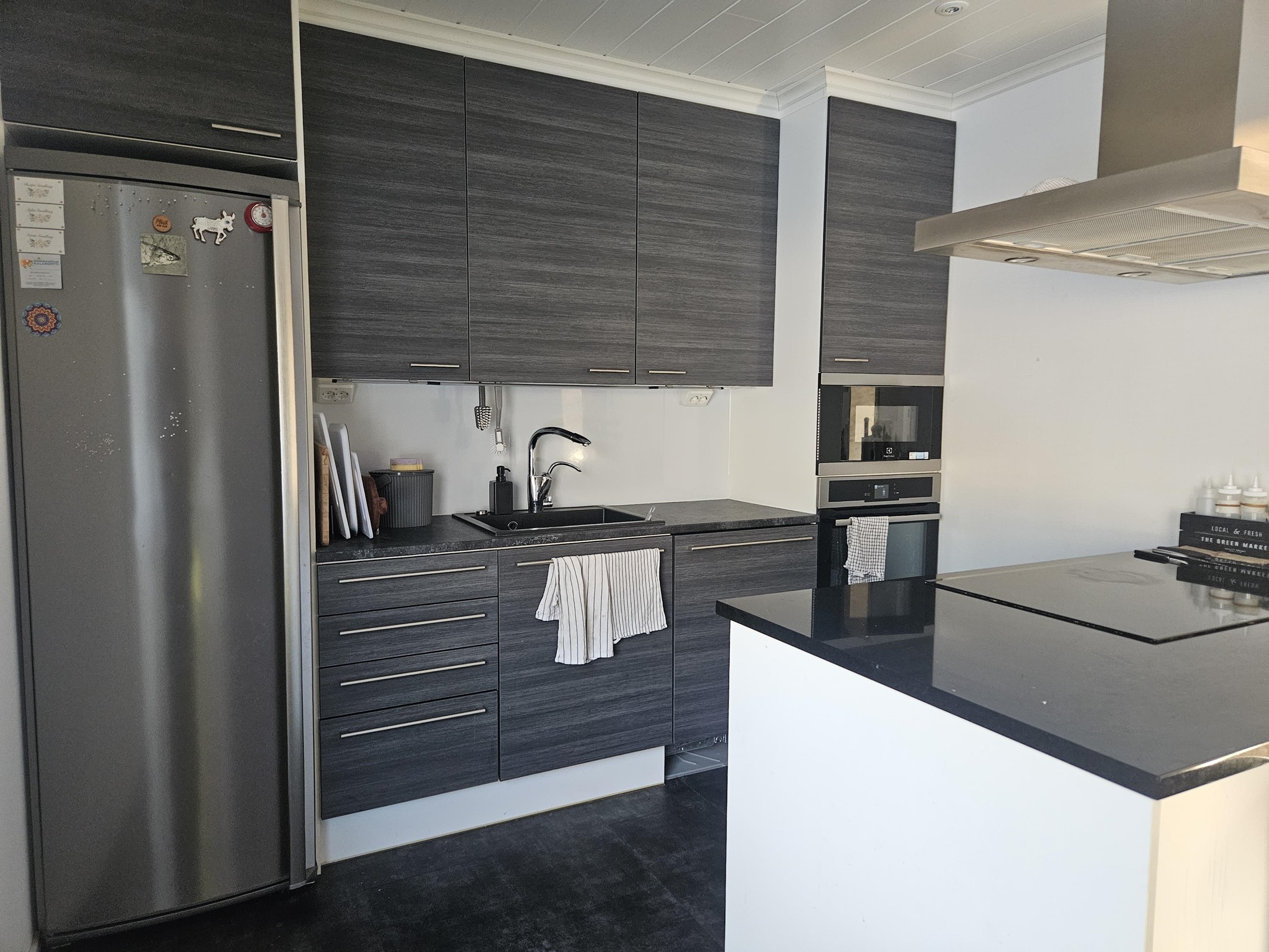- Jääkaappipakastin, erillisuuni, induktioliesi, astianpesukone, kaapistot, pöytätasojen materiaali laminaatti/kivi. keittiö remontoitu vuonna 2016