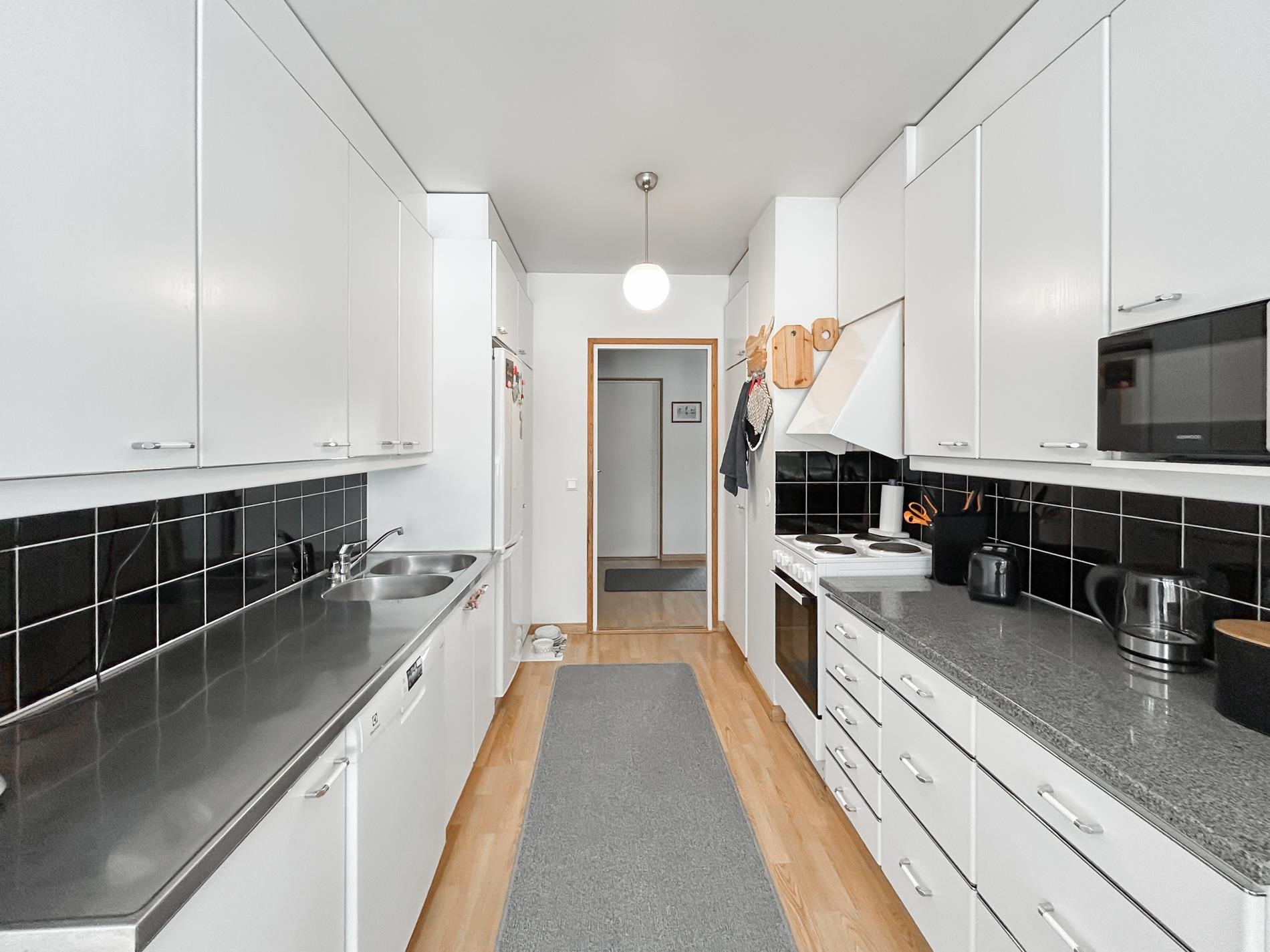 - Jääkaappipakastin, lattialiesi, liesikupu, astianpesukone, kaapistot, kiinteät valaisimet.