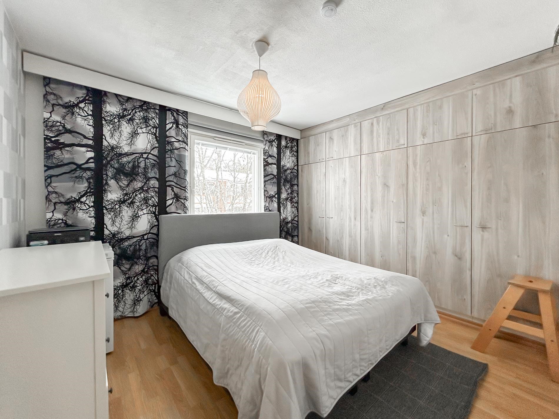 Kylpyhuone: laatta. Lattiapinnat: laminaatti, parketti.