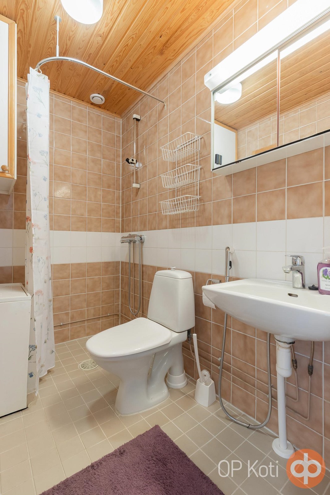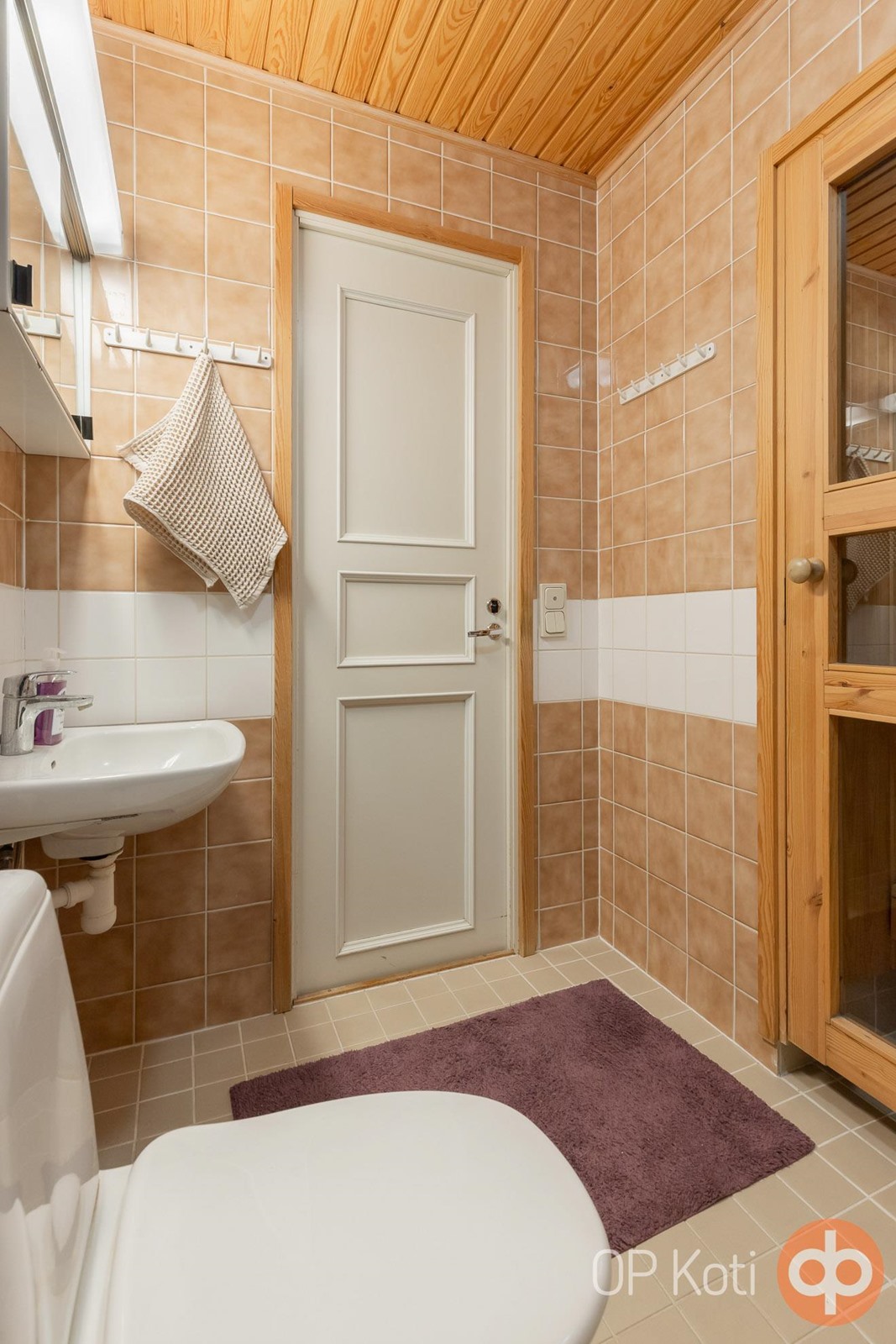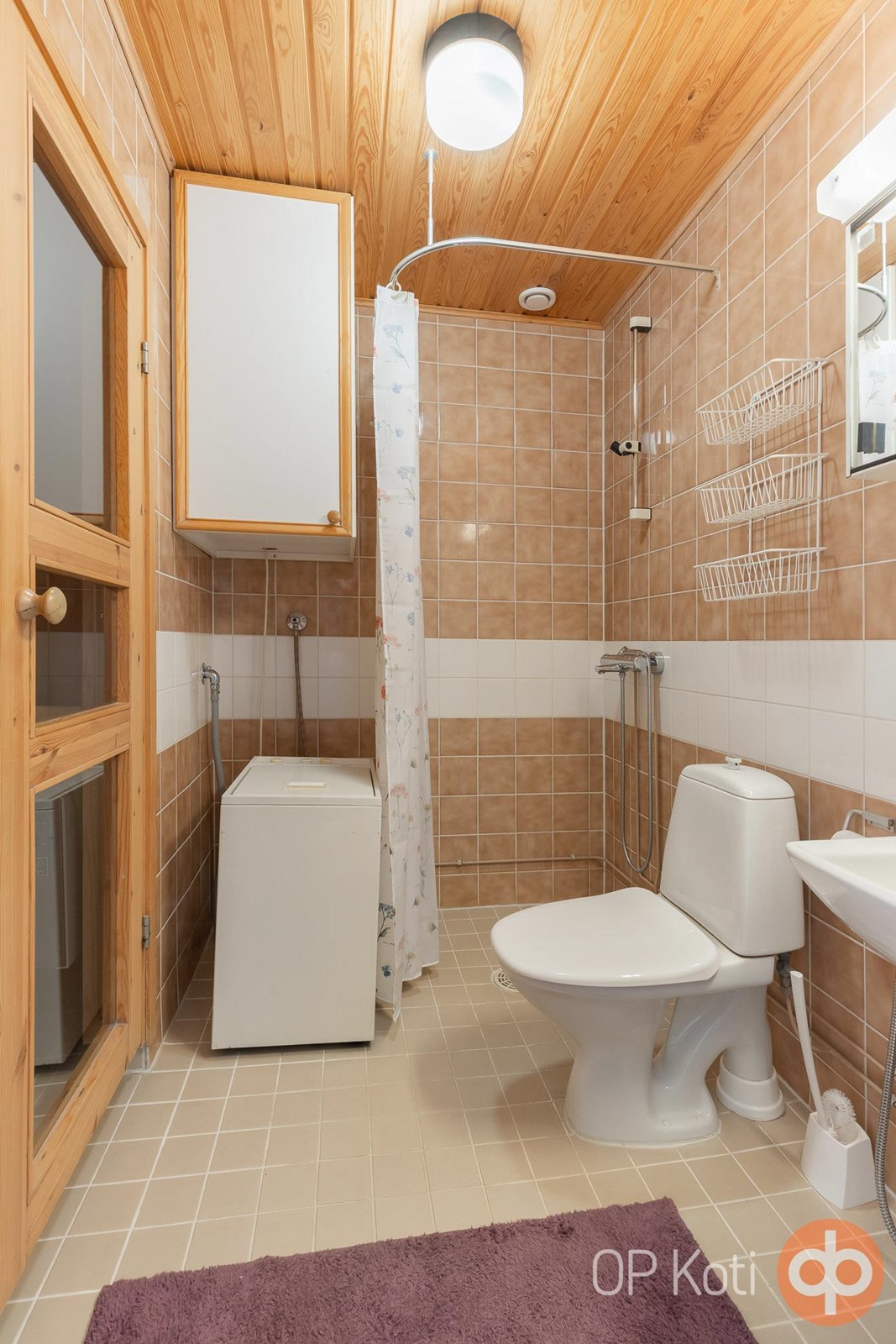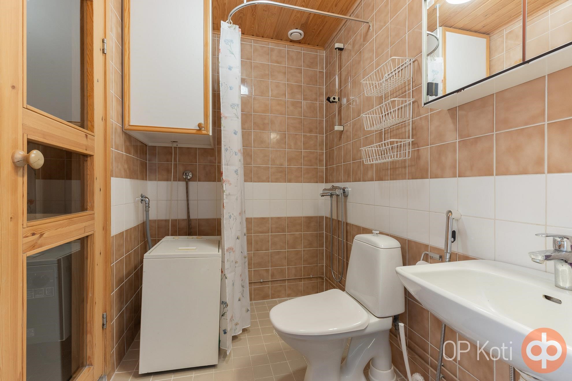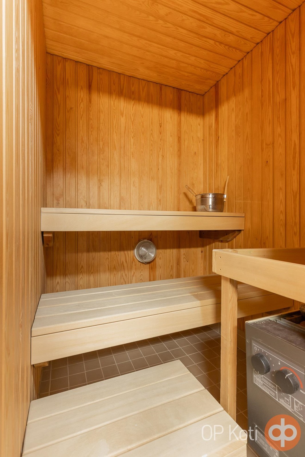 - Sauna, sähkökiuas, kylpyhuone, suihku, peilikaappi, pesukoneliitäntä, lattialämmitys.