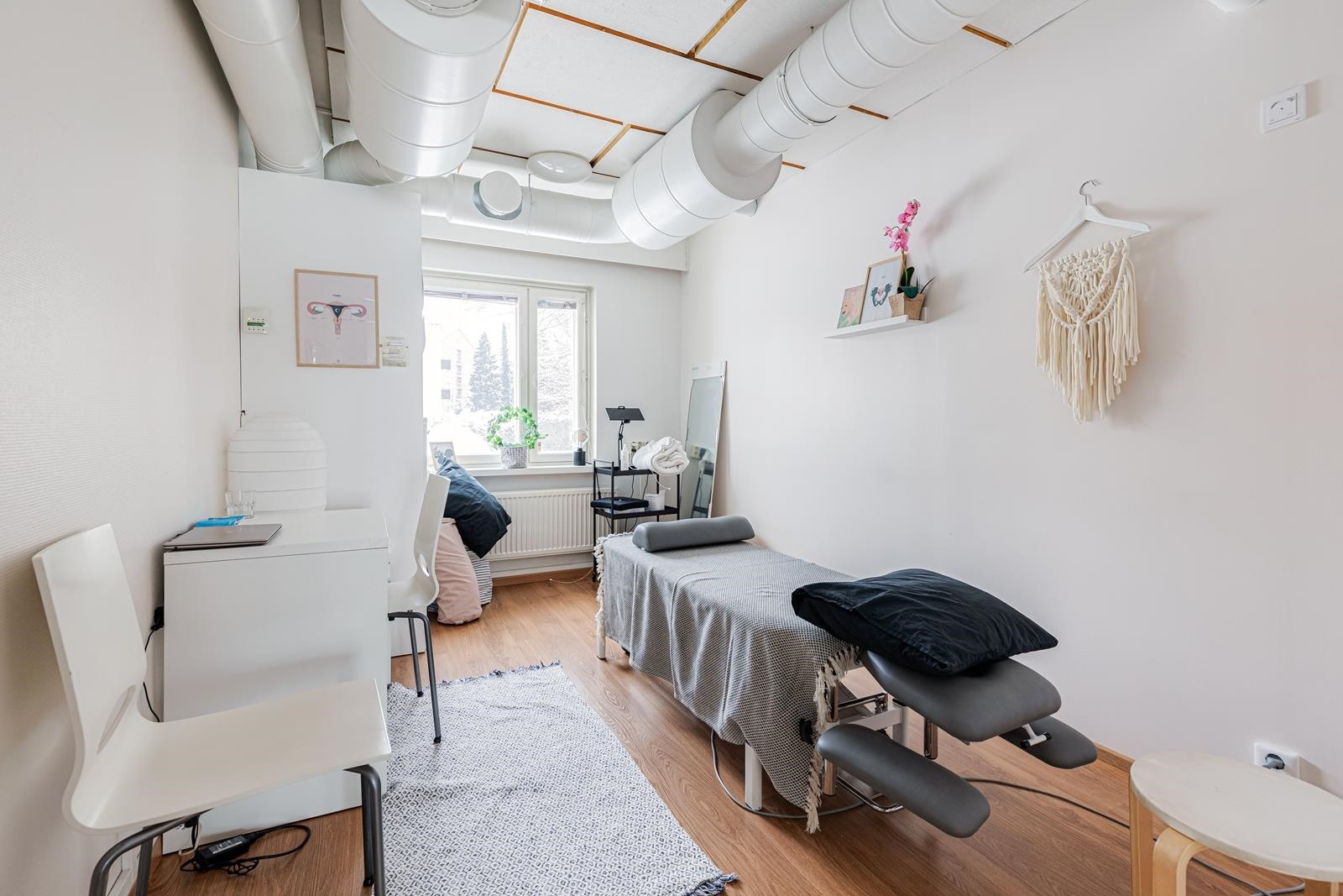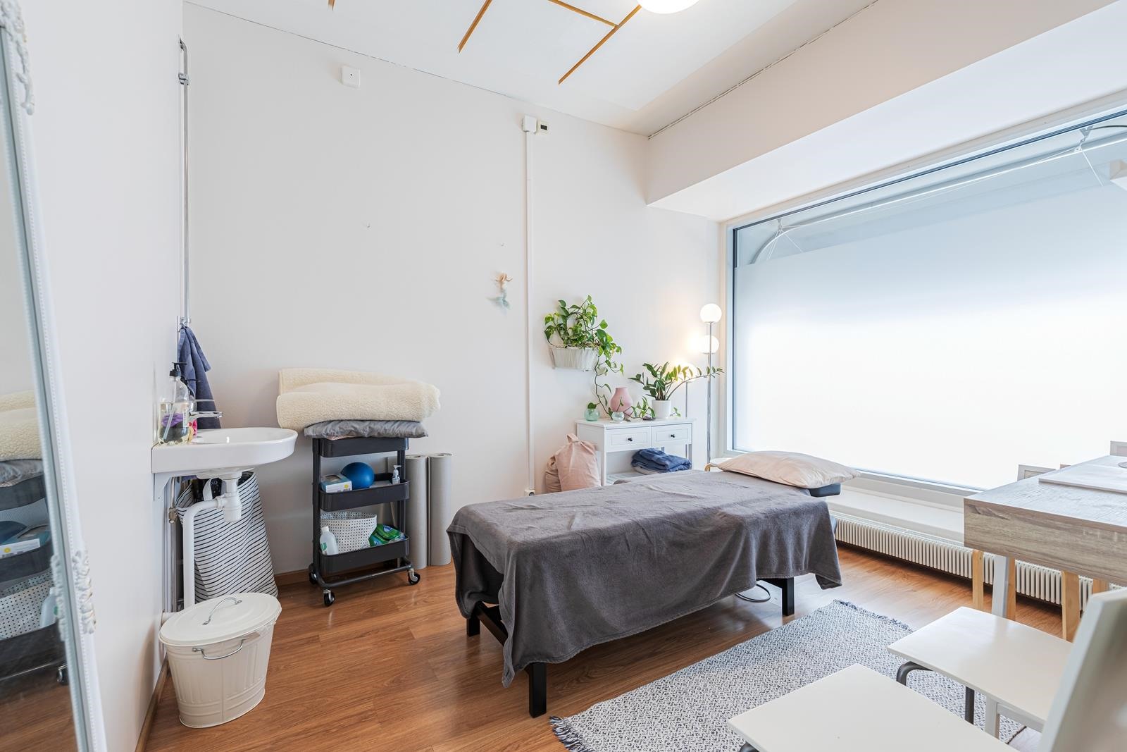 Liiketilan viisi huonetta tarjoavat rauhalliset työskentelyolosuhteet ja lisäksi tilasta löytyy avara aula, keittiö, useita vesipisteitä sekä wc-tilat. Huonien väliseinät ja ovet on db luokiteltuja. Laadukkaat pintamateriaalit - maalatut seinät, laminaatit ja laatat - luovat viihtyisän ja edustavan ilmeen.