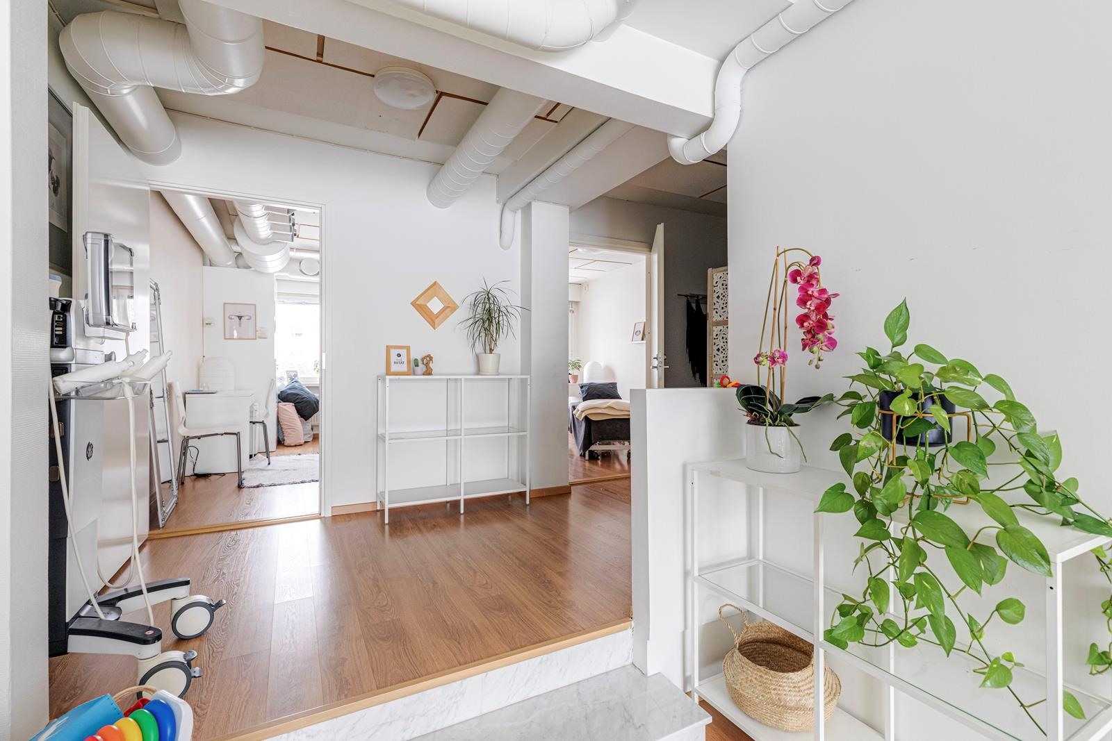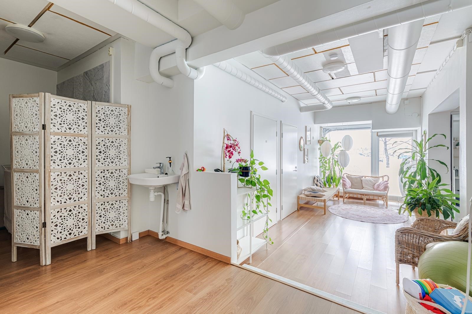 Tämä 246 m² kokoinen liiketila tarjoaa monipuoliset puitteet esimerkiksi toimistolle, asiakaspalvelupisteelle tai vastaanottotoiminnalle. Moderni pohjaratkaisu mahdollistaa tilojen muuntamisen erilaisten liiketoimintojen tarpeisiin - katutason sijainti ja suuret ikkunat tuovat loistavaa näkyvyyttä yrityksellesi vilkkaalla paikalla.
