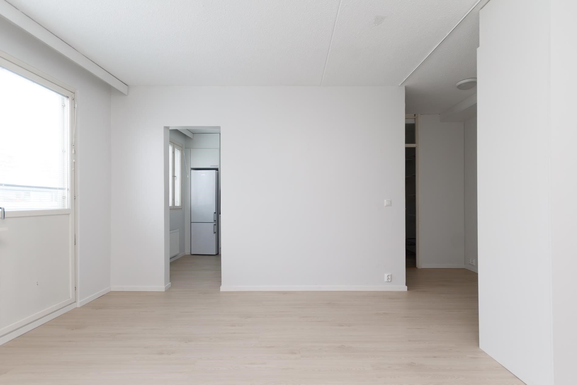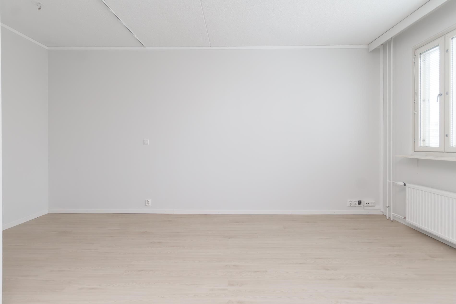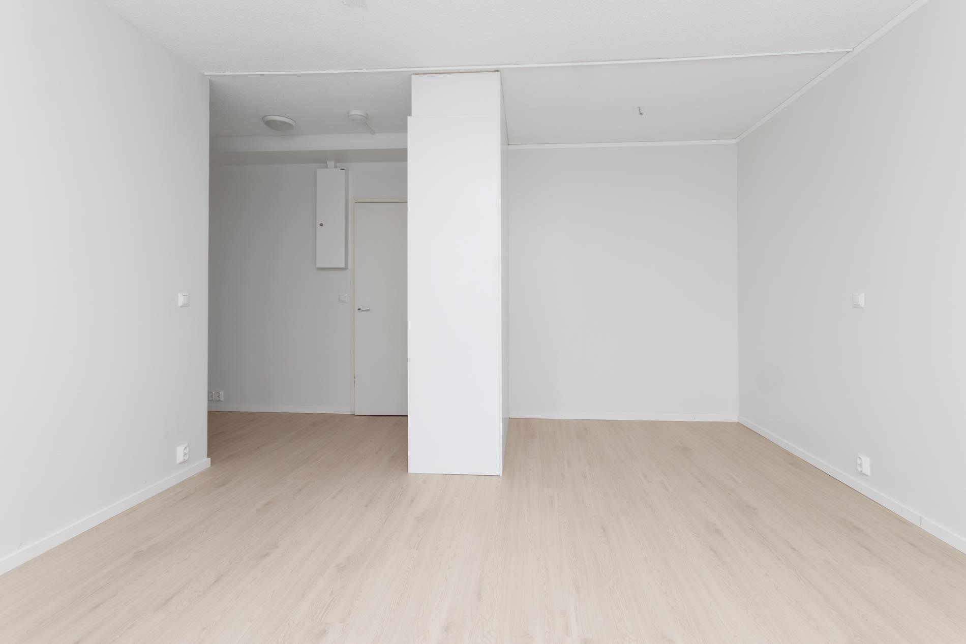 Keittokomero: Vinyylilattia, maalatut seinät. Huone: Vinyylilattia, maalatut seinät. Kylpyhuone: Laatoitettu.