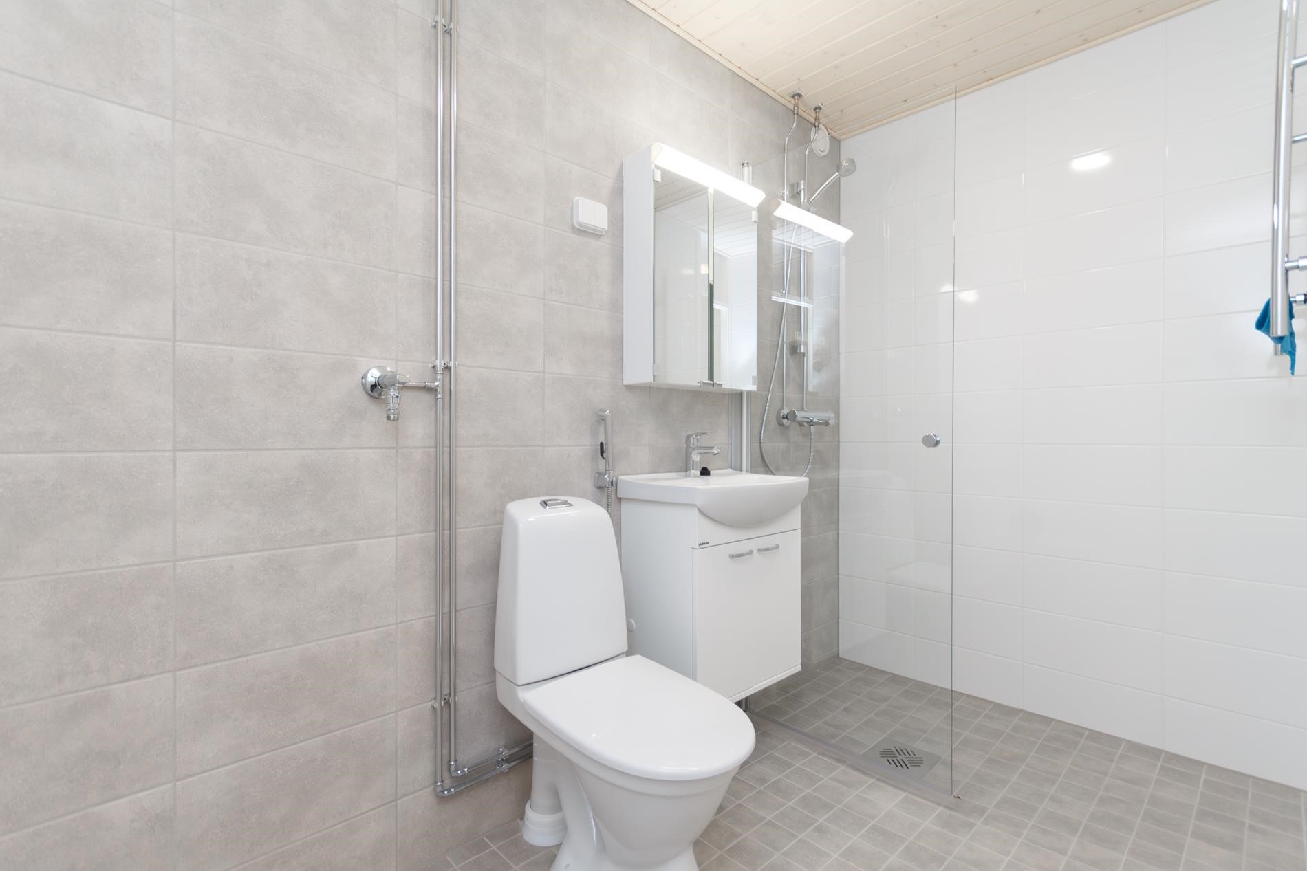 - Suihku, suihkuseinä Kääntyvä, peilikaappi, pesukoneliitäntä, Pyyhepatteri, . Päältätäytettävä pyykinpesukone vuokralaisen käytettävissä toiminta-aikansa ajan