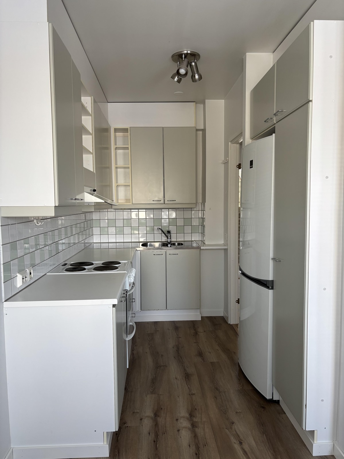 - Jääkaappipakastin, sähköliesi, astianpesukone, kaapistot, kiinteät valaisimet.