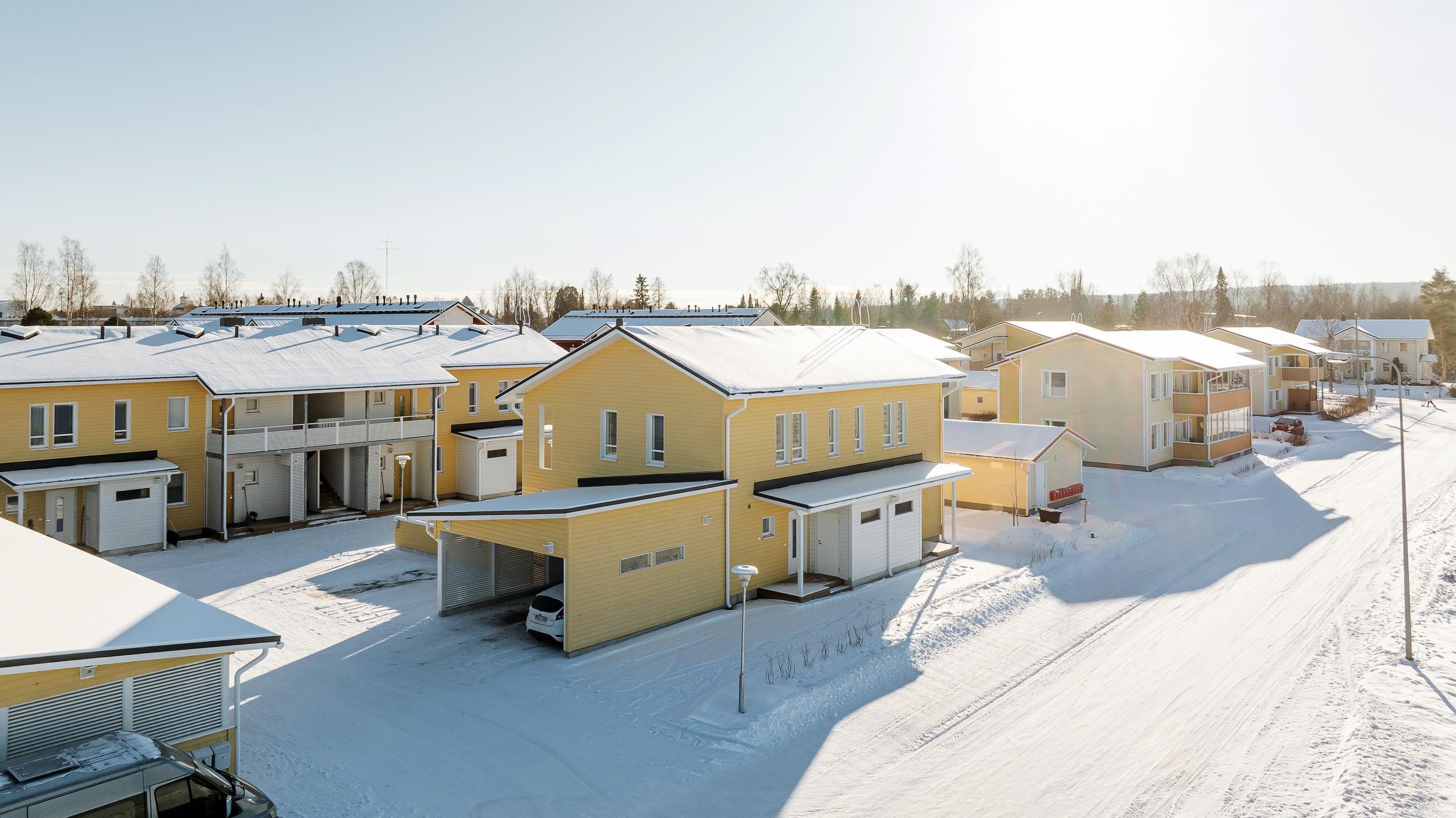 HETI VAPAA PERHEASUNTO! 8 huoneiston rivitaloyhtiössä tilava kahden makuuhuoneen rivitalon päätyhuoneisto tarjolla. Tarjolla uusi ja laadukas koti. Asuntoyhtiö muodostuu kaksikerroksisesta pari- ja luhtitalosta sekä autokatosrakennuksista, autokatospaikka sisältyy hintaan. Huoneistot on suunniteltu vastaamaan eri elämäntilanteissa olevien asukkaiden tarpeita. Paritalossa kahdessa tasossa sijaitseva huoneisto on pohjaratkaisultaan selkeä ja sisustus toteutettu vaaleilla sävyillä. Tässä kodissa valo tulvii sisään asunnon isoista ikkunoista. Olohuone, keittiö ja ruokailutila muodostavat avaran tilan, perheen ja vieraiden yhteiselle seurustelulle ja illanviettoon. Tilavat makuuhuoneet sijaitsevat yläkerrassa. Vaatekaapistojen lisäksi säilytystilaa on erillisessä vaatehuoneessa ja myös portaiden alapuolinen tila on hyödynnetty. Asumisviihtyisyyttä lisäävät vesikiertoinen lattialämmitys ja oma sauna. Asunnossa on sekä terassi että parveke, joten esim. petivaatteiden tuuletus onnistuu ja siivoukset sujuu.