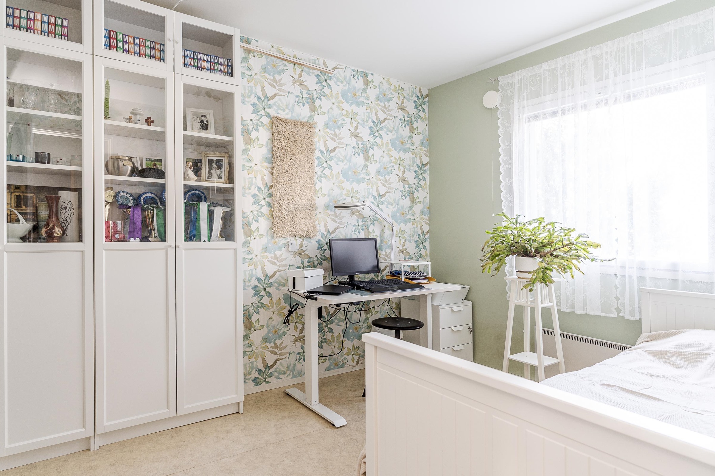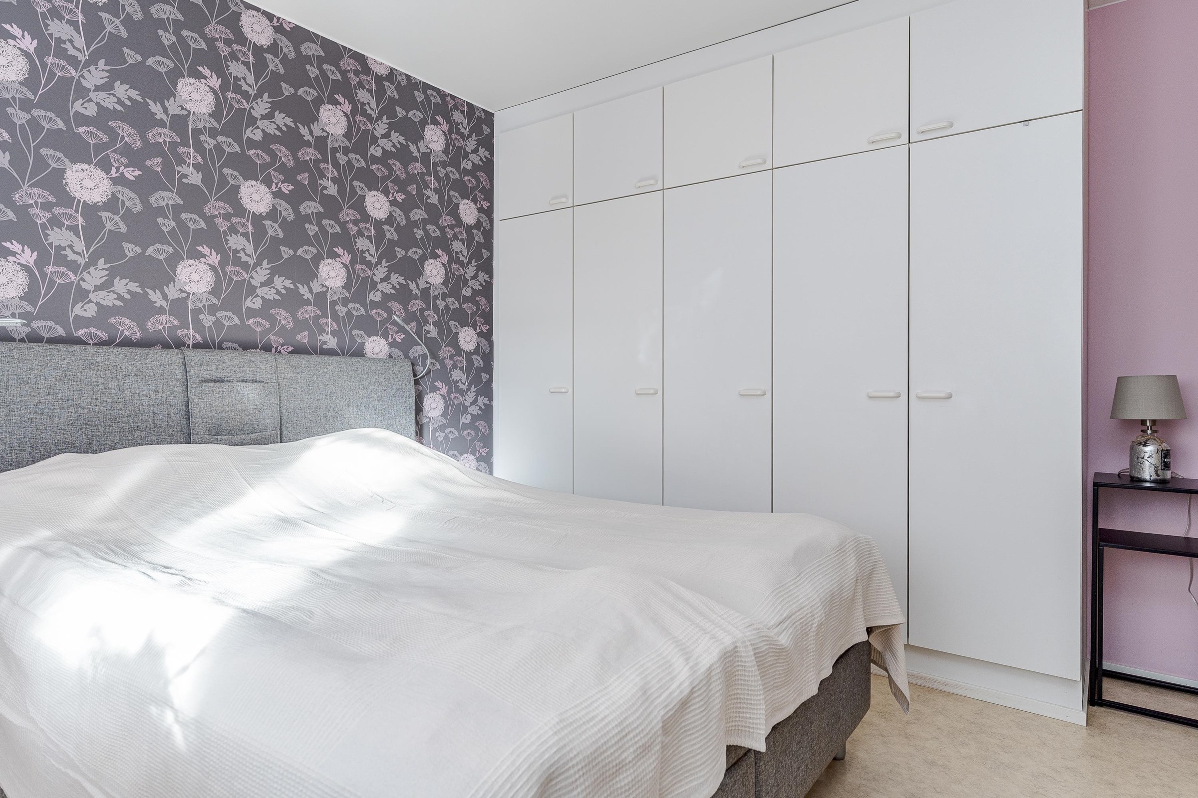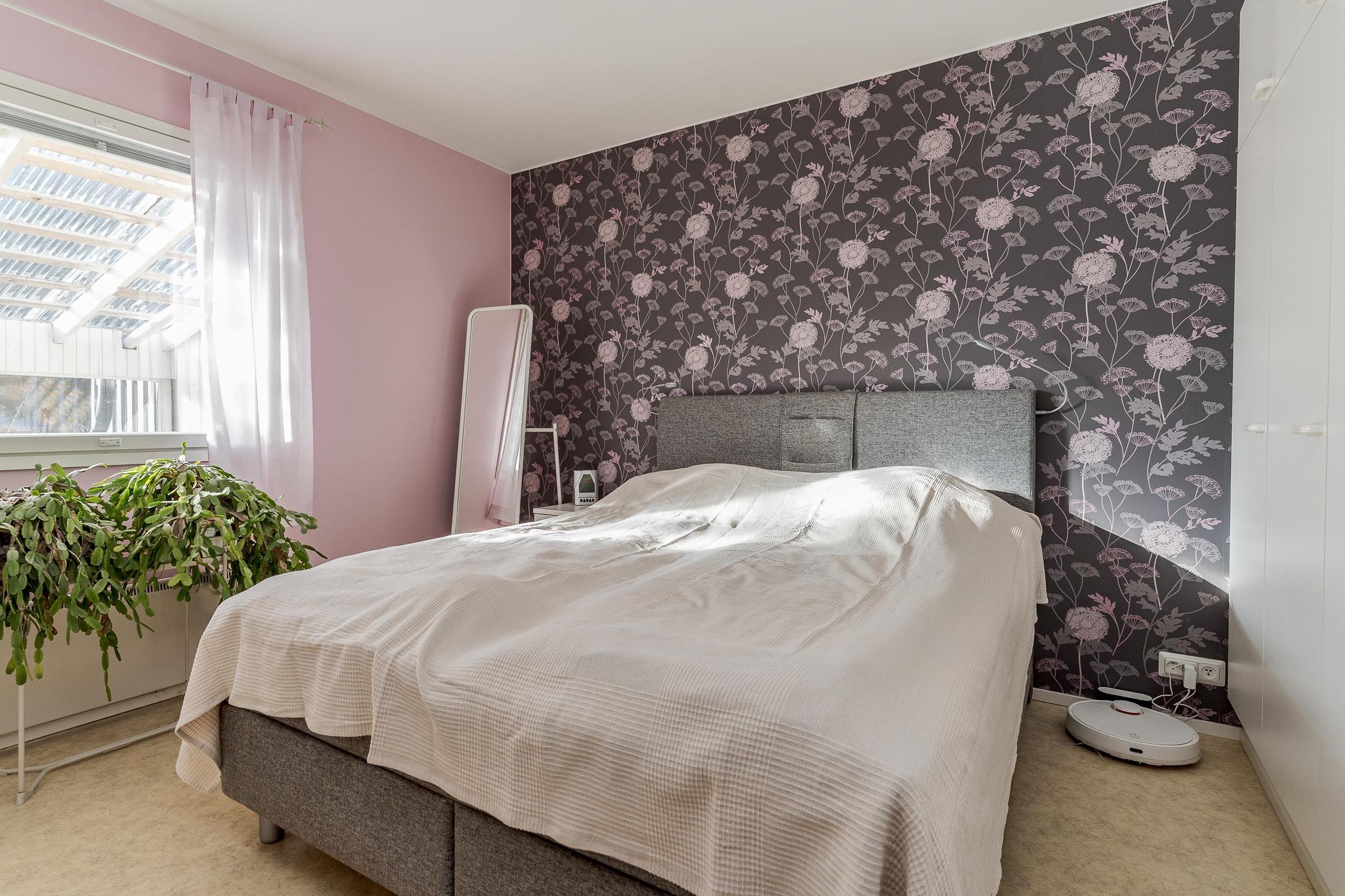 Asunnon 75 neliötä jakautuvat toimivasti kahteen makuuhuoneeseen, olohuoneeseen ja erilliseen keittiöön, jossa on kaikki tarpeellinen arjen ruoanlaittoon. Kylpyhuoneen yhteydessä on oma sauna. Asunnossa on erillinen wc, joka helpottaa arkea. Säilytystilaa tarjoavat vaatehuone ja ulkovarasto, ja autolle löytyy oma katospaikka.