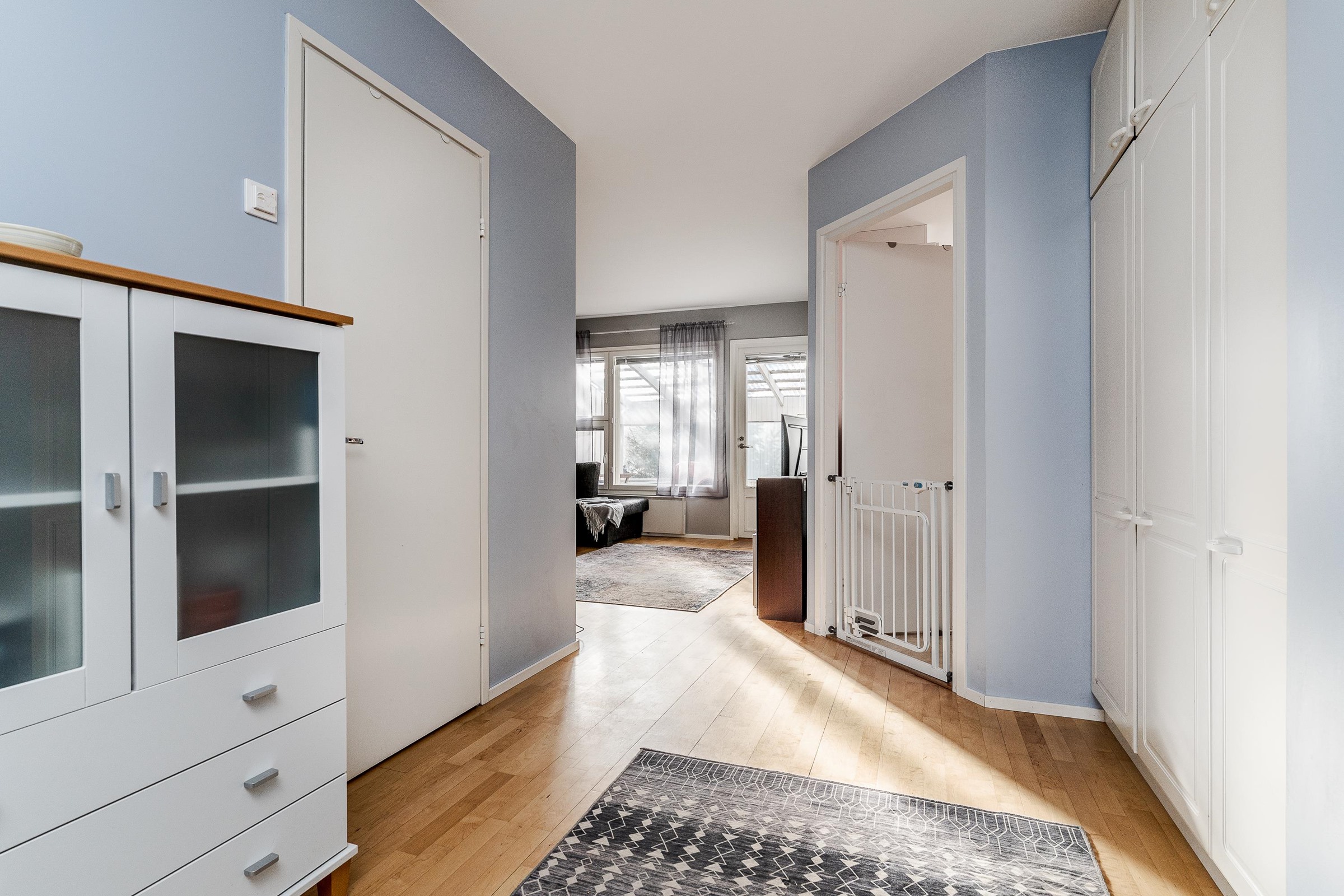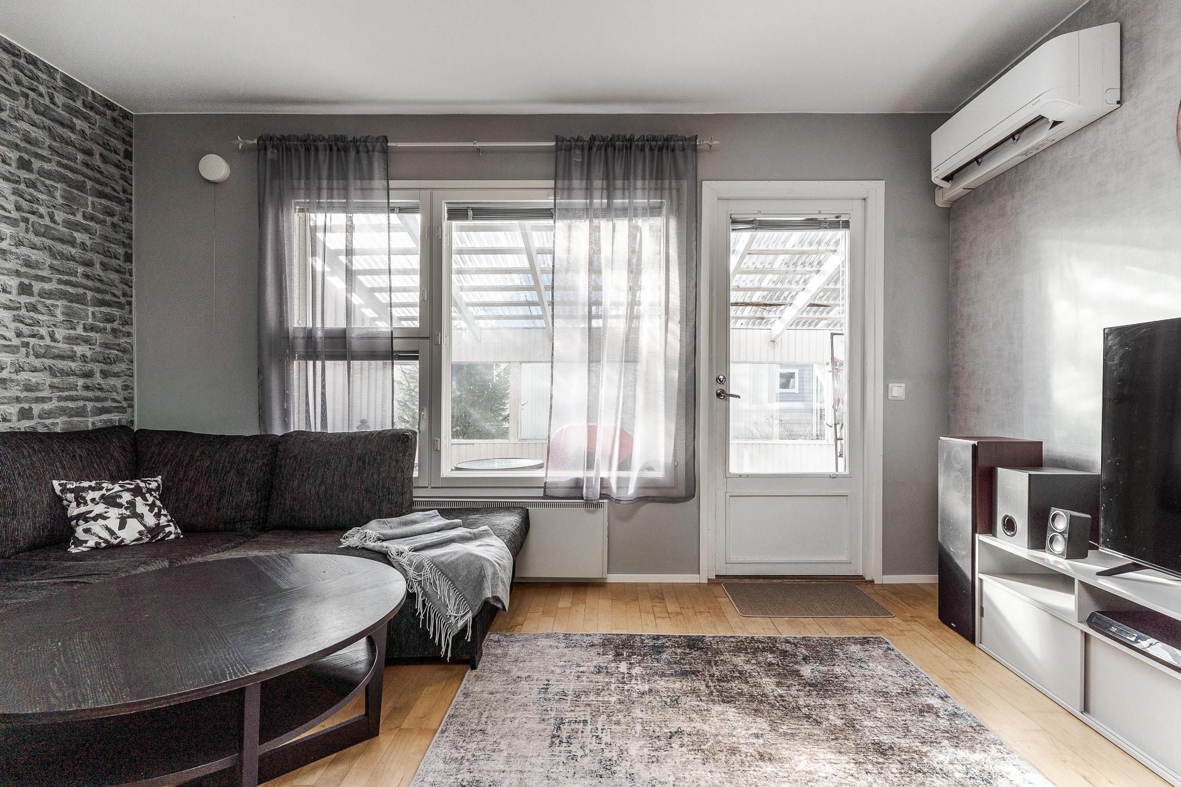 Tervetuloa tutustumaan tähän yksitasoiseen rivitalokotiin, jossa arjen helppous ja rauhallinen asumisen tunnelma kohtaavat. Lasitettu terassi tarjoaa vuodenaikojen vaihtelut suoraan olohuoneen jatkeena, ja ilmalämpöpumppu pitää sisätilat mukavina ympäri vuoden. Täällä on mahdollisuus luoda oman näköinen koti, jonka pohjaratkaisu taipuu monenlaisiin tarpeisiin.