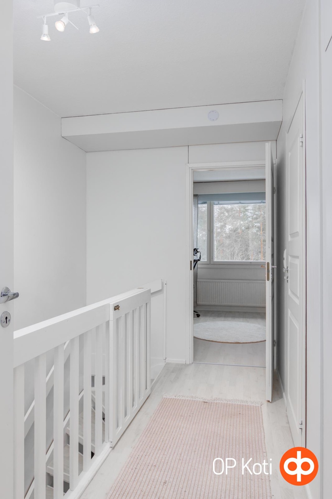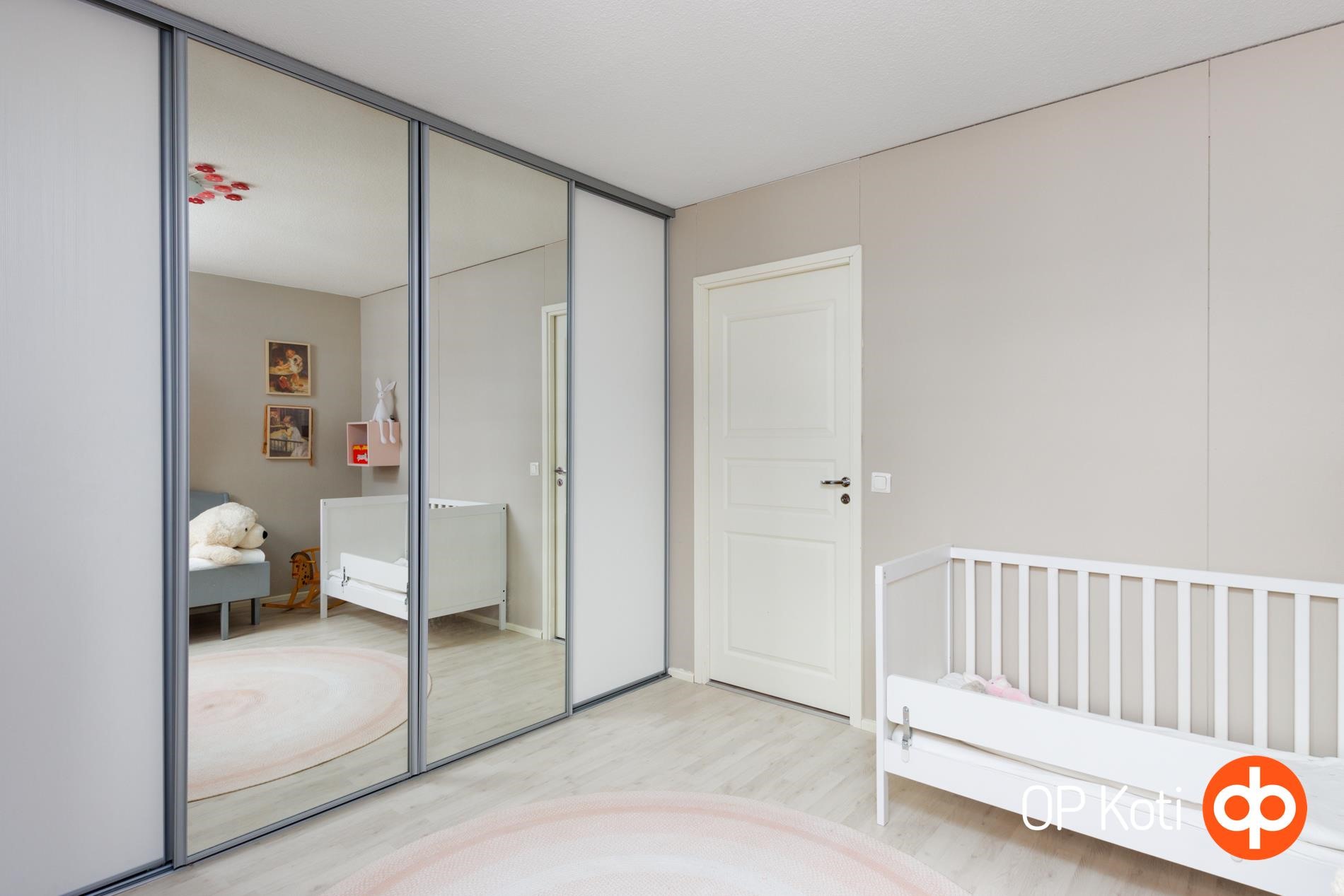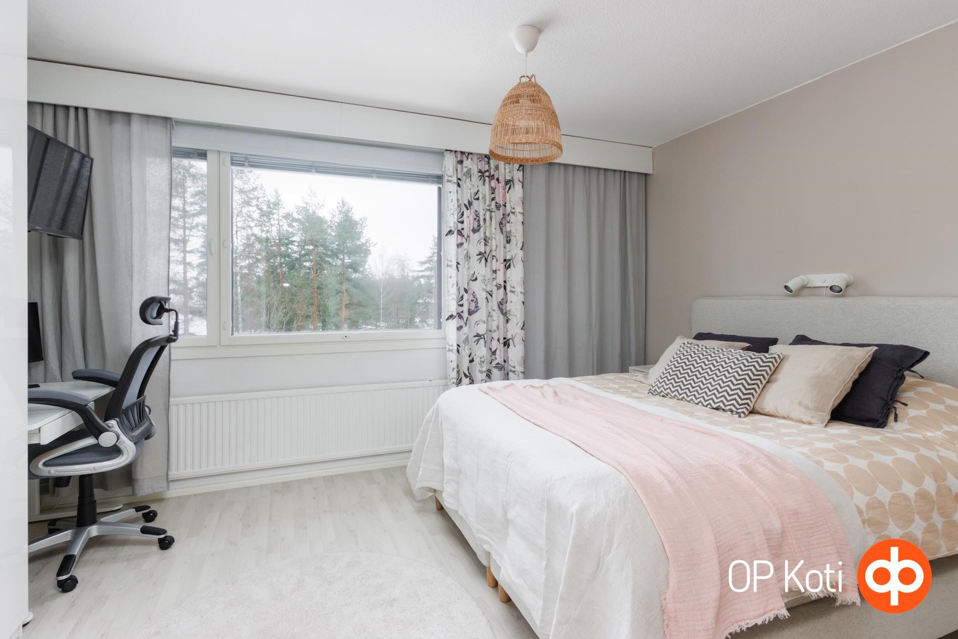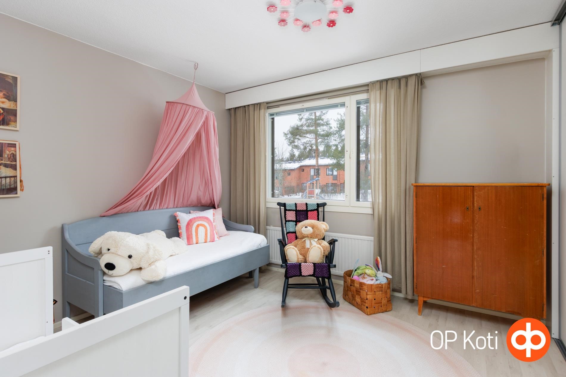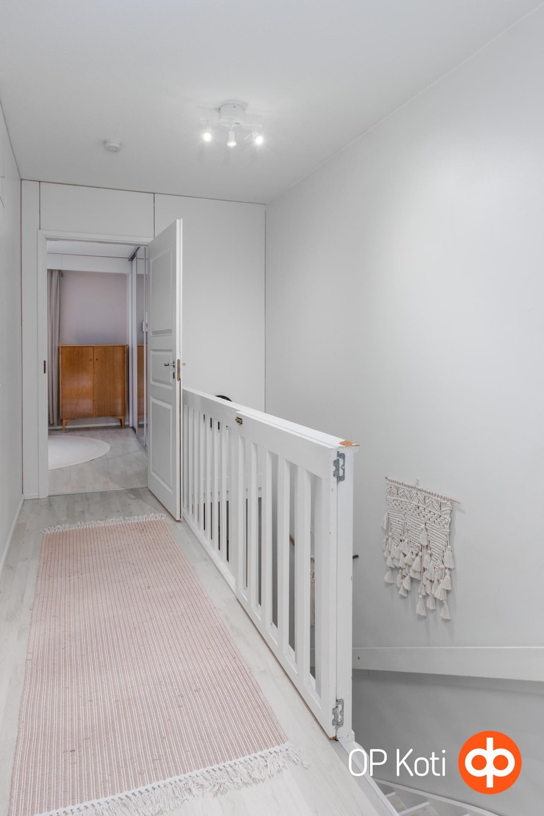 Yläkerrassa odottavat kaksi tilavaa makuuhuonetta, joissa aamut alkavat lempeästi. Oman saunan lempeät löylyt tekevät kotiin palaamisesta erityisen hetken. Tämä koti lämpiää kaukolämmöllä ja tarjoaa huoletonta ja helppoa asumista. Kaikki tärkeä on lähellä: koulu, päiväkoti, kirjasto, lähikauppa - kaikki kävelyetäisyydellä. Liikenneyhteydet ovat vaivattomat suuntaan kuin suuntaan.
