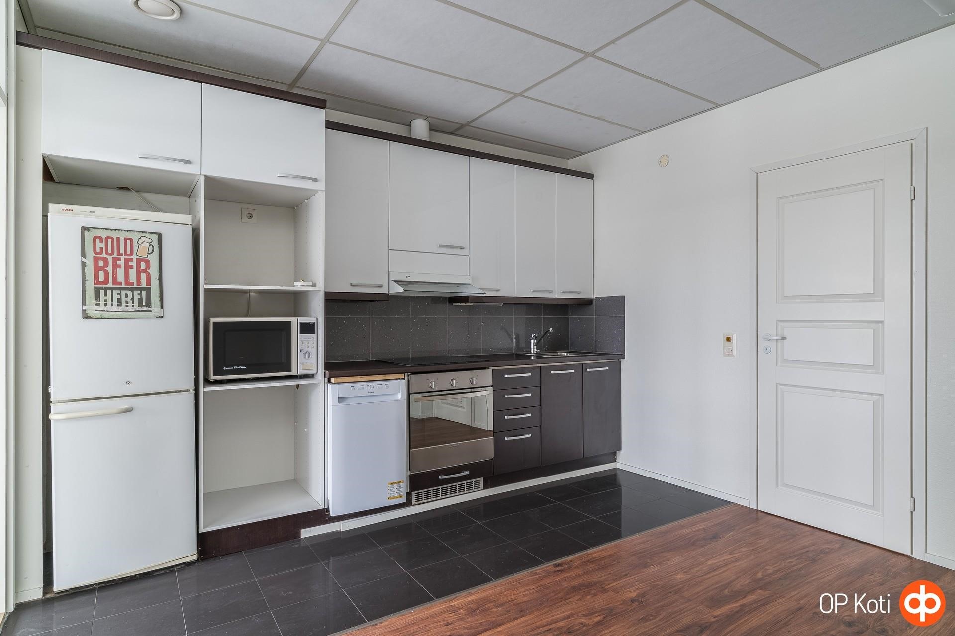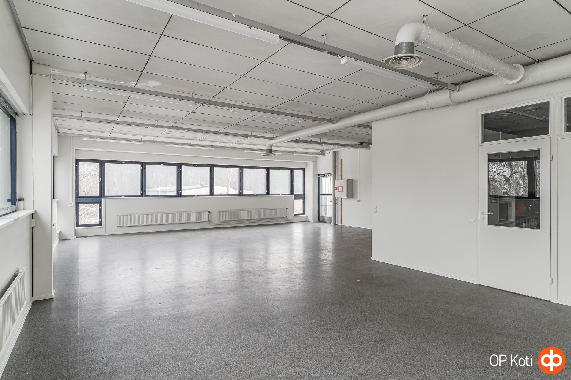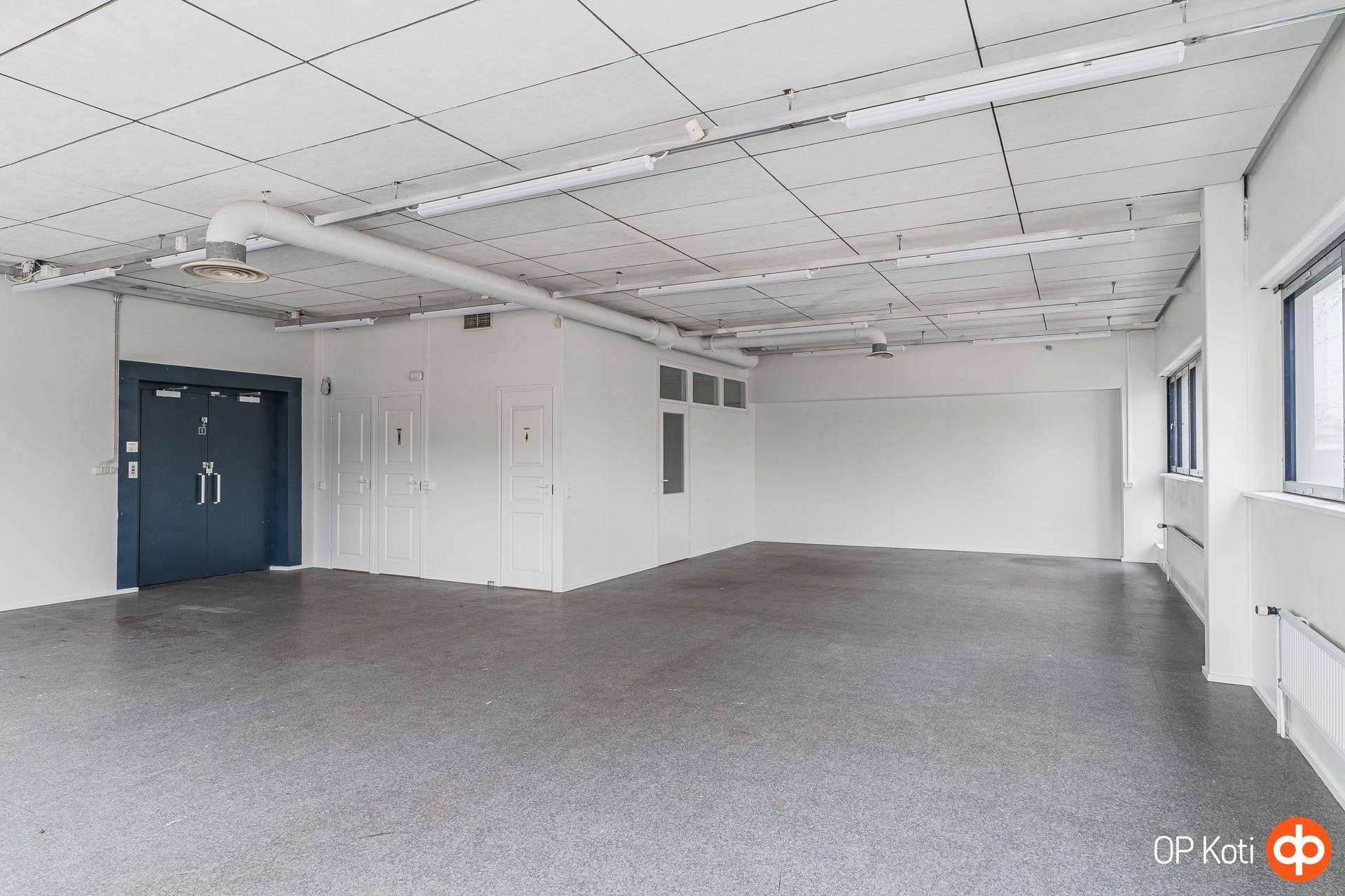 Kohteen pääkohdat: 120 m² työtilaa teollisuustalossa Avointa ja tehokasta työskentelytilaa Tavarahissi 1000 kg, joka palvelee suoraan tilaan Keittiö / taukohuone Pesuhuone ja sauna -harvinainen etu tämän kokoluokan liikehuoneistossa 2 x WC