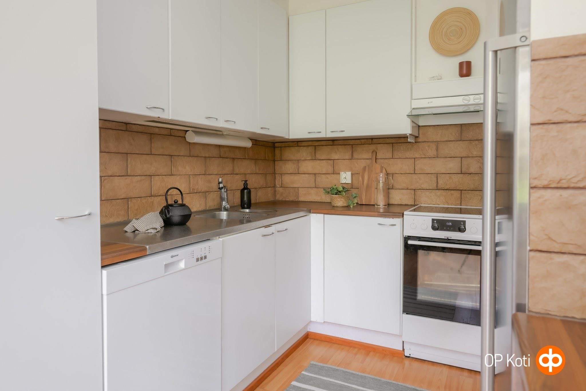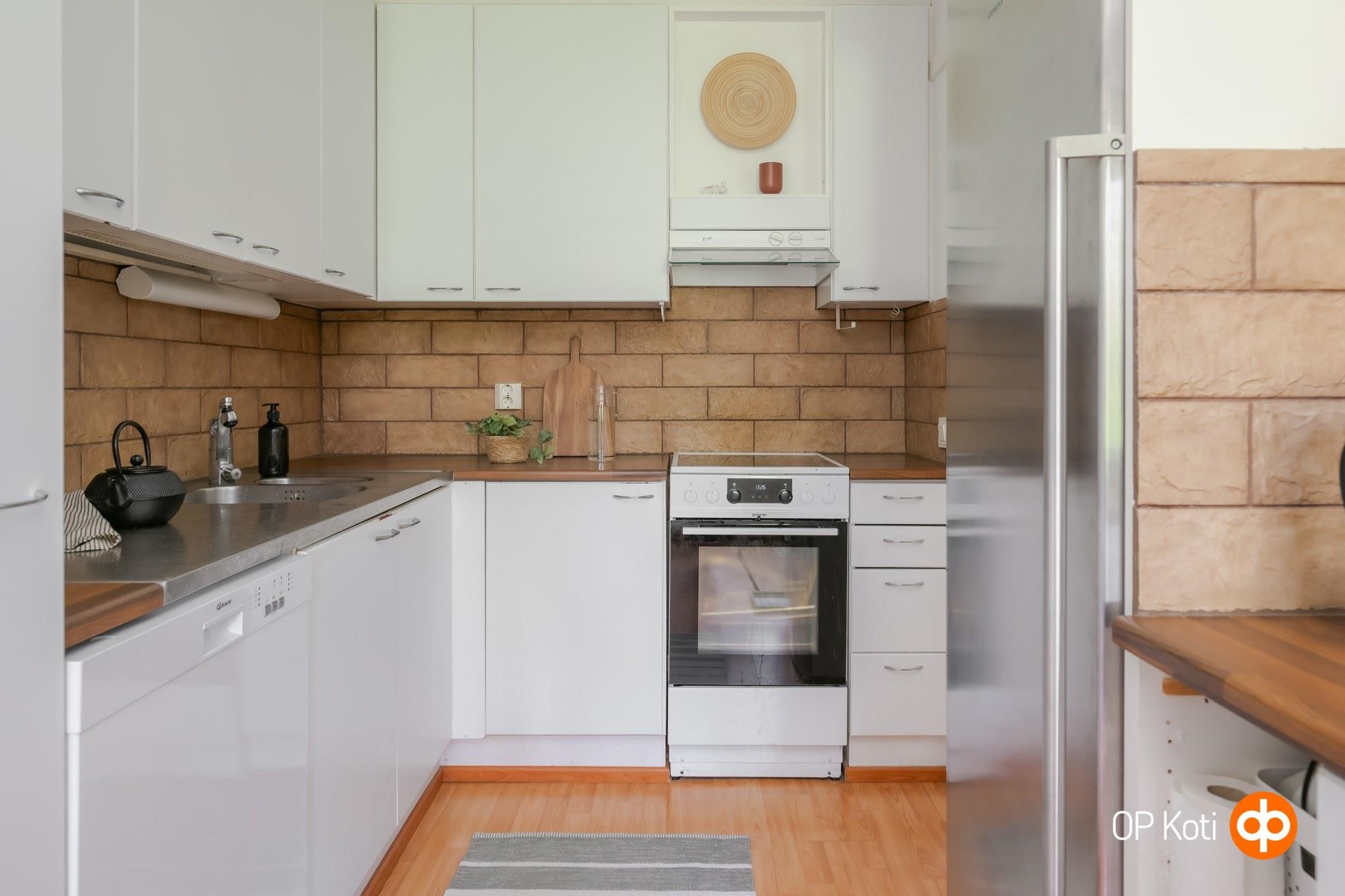 - Jääkaappi, erillisuuni, liesitaso Keraaminen, liesikupu, astianpesukone, kaapistot.