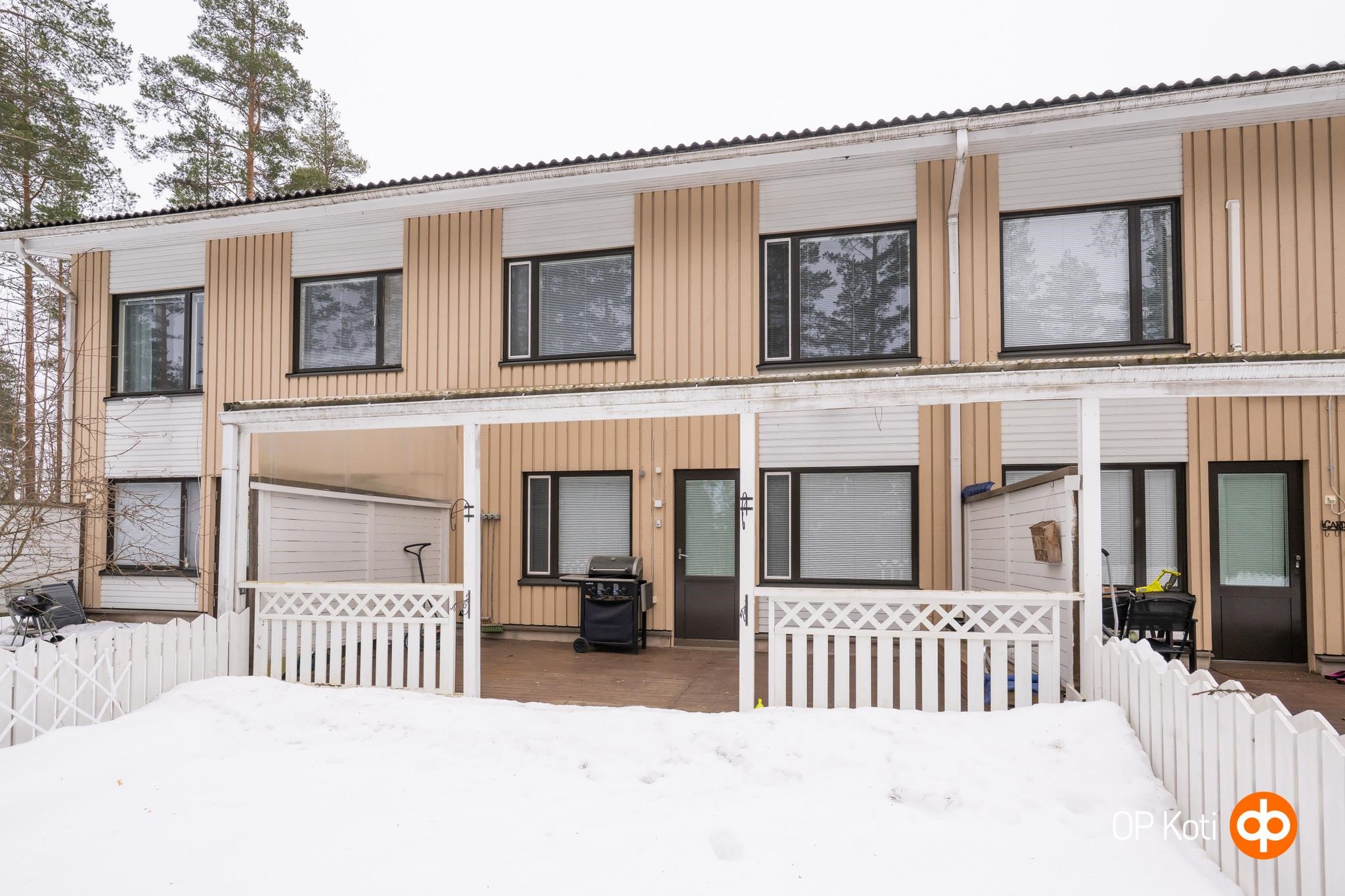 Pupuhuhdantien päässä sijaitseva rivitalokoti. Kahdessa kerroksessa olevassa asunnossa on toimiva pohjaratkaisu joka kätkee sisäänsä hyvät ja toimivat tilat. Yläkerrassa on olohuoneen, keittiön ja ruokailutilan muodostama oleskelutila, yksi makuuhuone ja erillinen wc. Alakerrassa on sauna- ja pesutilat, kaksi makuuhuonetta sekä vaatehuone. Alakerran isommasta makuuhuoneesta on käynti terassille. Kodin terassi on katettu valokatteella ja terassilta aukeaa metsäiset maisemat kohti ilta-aurinkoa. Takapihalla on myös pieni nurmialue johon on mahdollista laittaa istutuksia, kasvimaa yms. Taloyhtiö on valmistunut vuonna 1990. Omalla tontilla oleva yhtiö koostuu kerros- sekä rivitaloista ja asuntoja on kaiken kaikkiaan 41 kappaletta. Kiinteistöjen kunnosta on pidetty hyvää huolta ja vuosien varrella on uusittu mm. ikkunat ja parveke- ja terassiovet, vesikattojen pinnotteita, rivitalojen ulko-ovet, rivitalojen huoltomaalaus ja yläpohjan lisäeristys ja viimeisimpänä lämmönvaihtimen uusiminen. Asukkaiden käytössä on kuntosali. Soita ja sovi oma esittelyaikasi välittäjältä - Nyt kohtuuhintaan omaan rivitaloasuntoon!