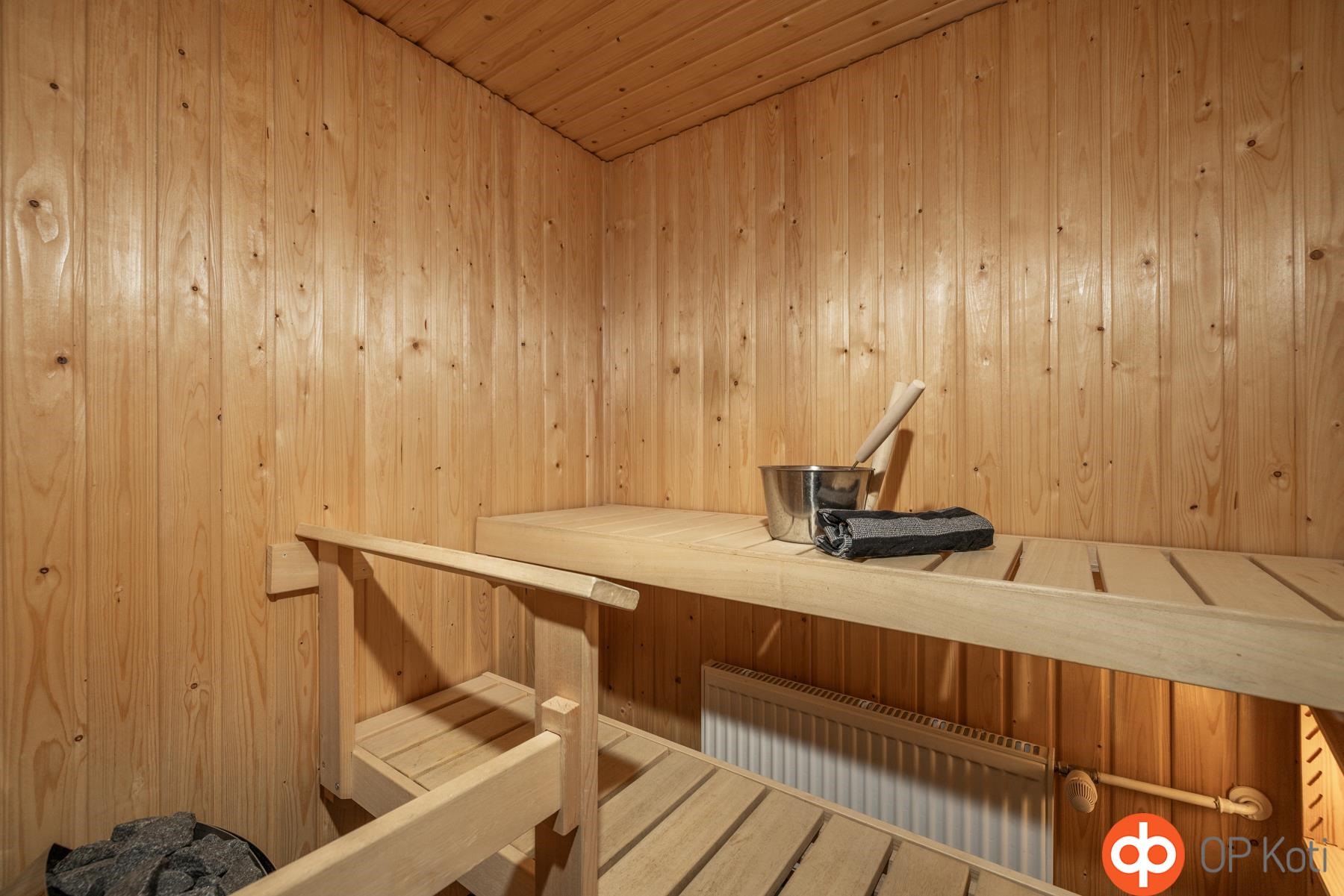 - Sauna, sähkökiuas, kylpyhuone, erillinen wc, suihku, peilikaappi, allaskaappi, pesukoneliitäntä pesuhuoneessa, lattialämmitys pesuhuoneessa, kiinteät valaisimet.