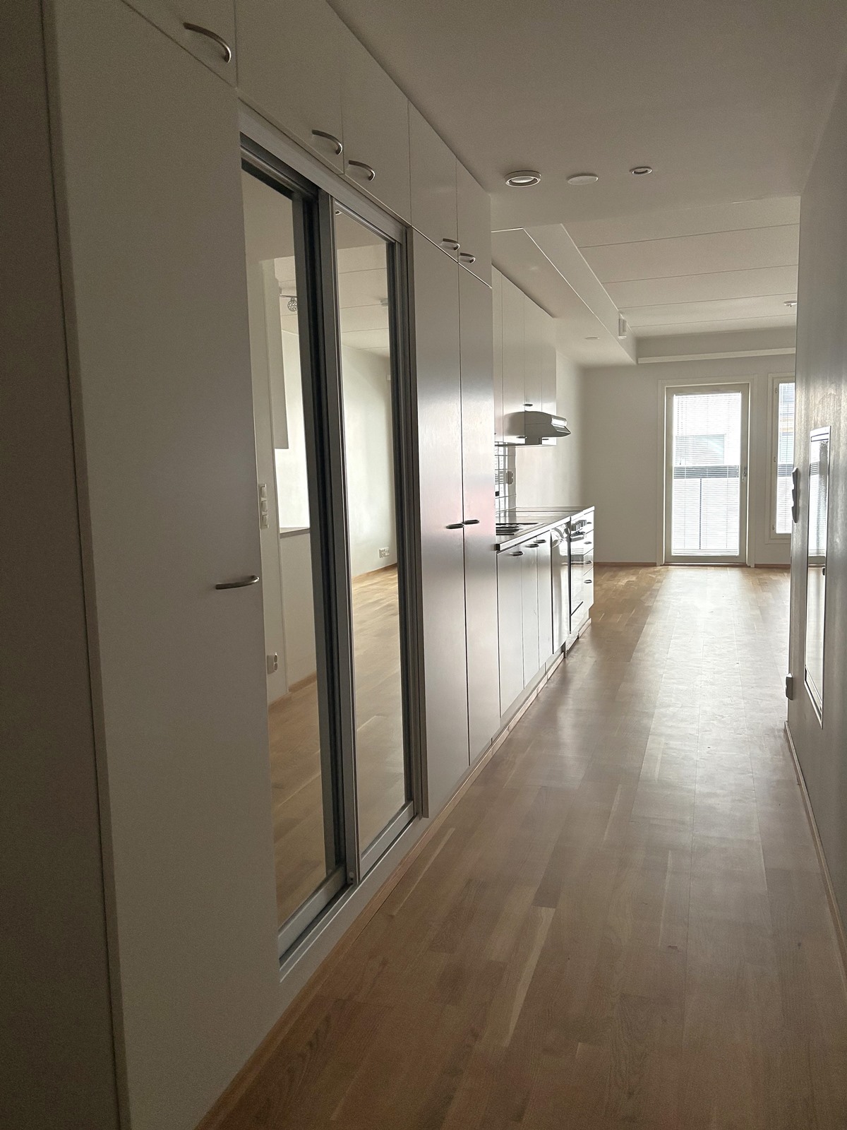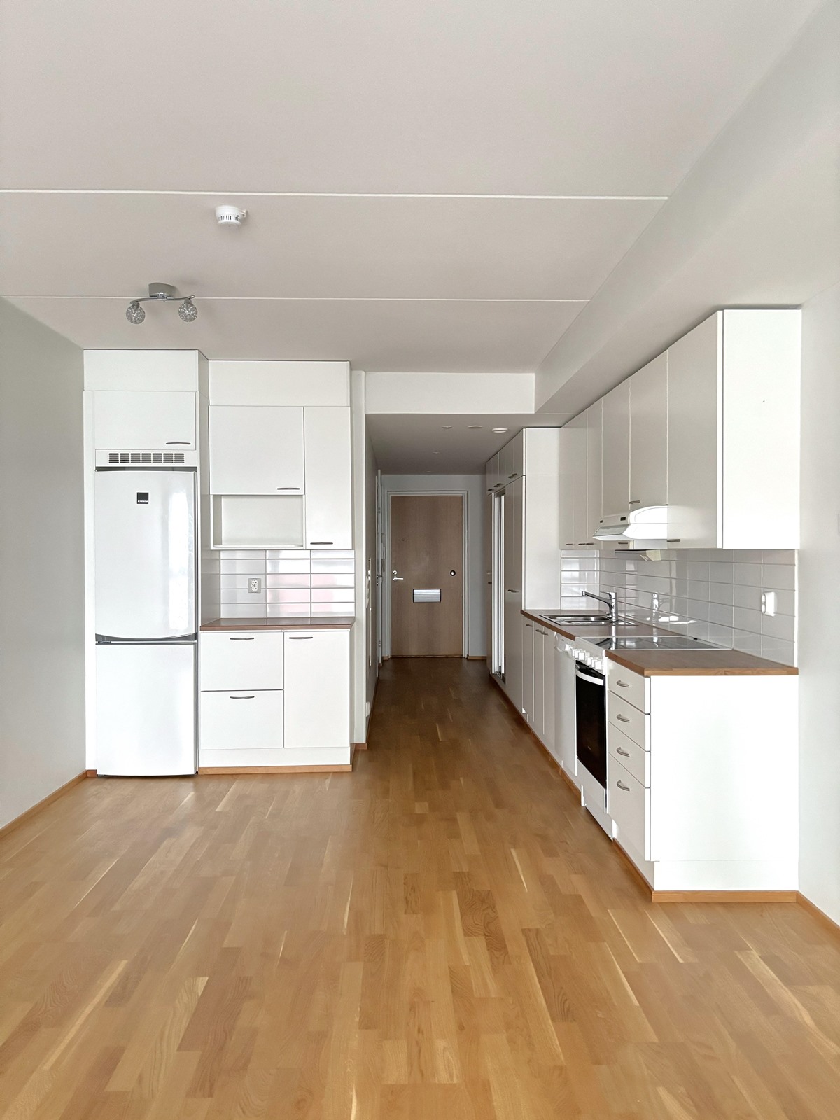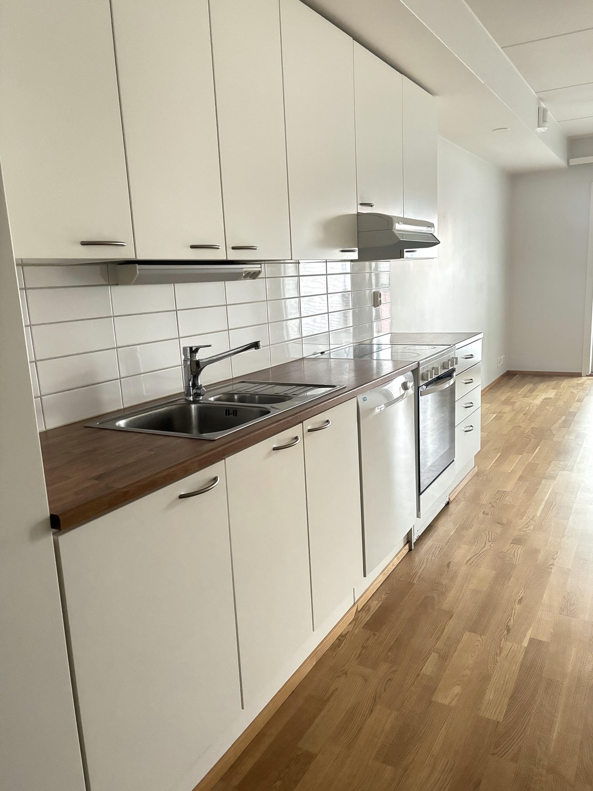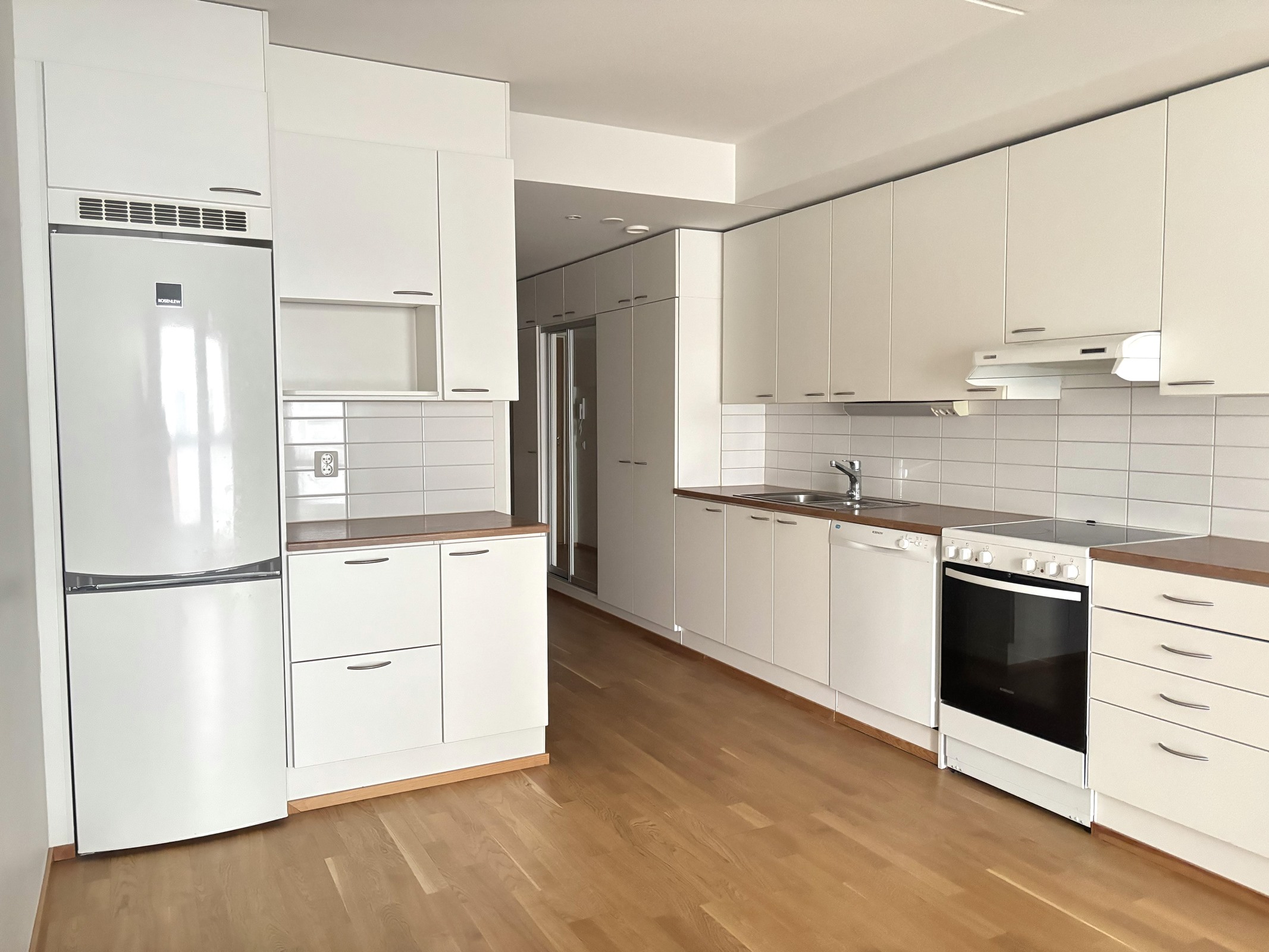 - Jääkaappipakastin, keraaminen liesi, liesituuletin, astianpesukone, kaapistot, kiinteät valaisimet.