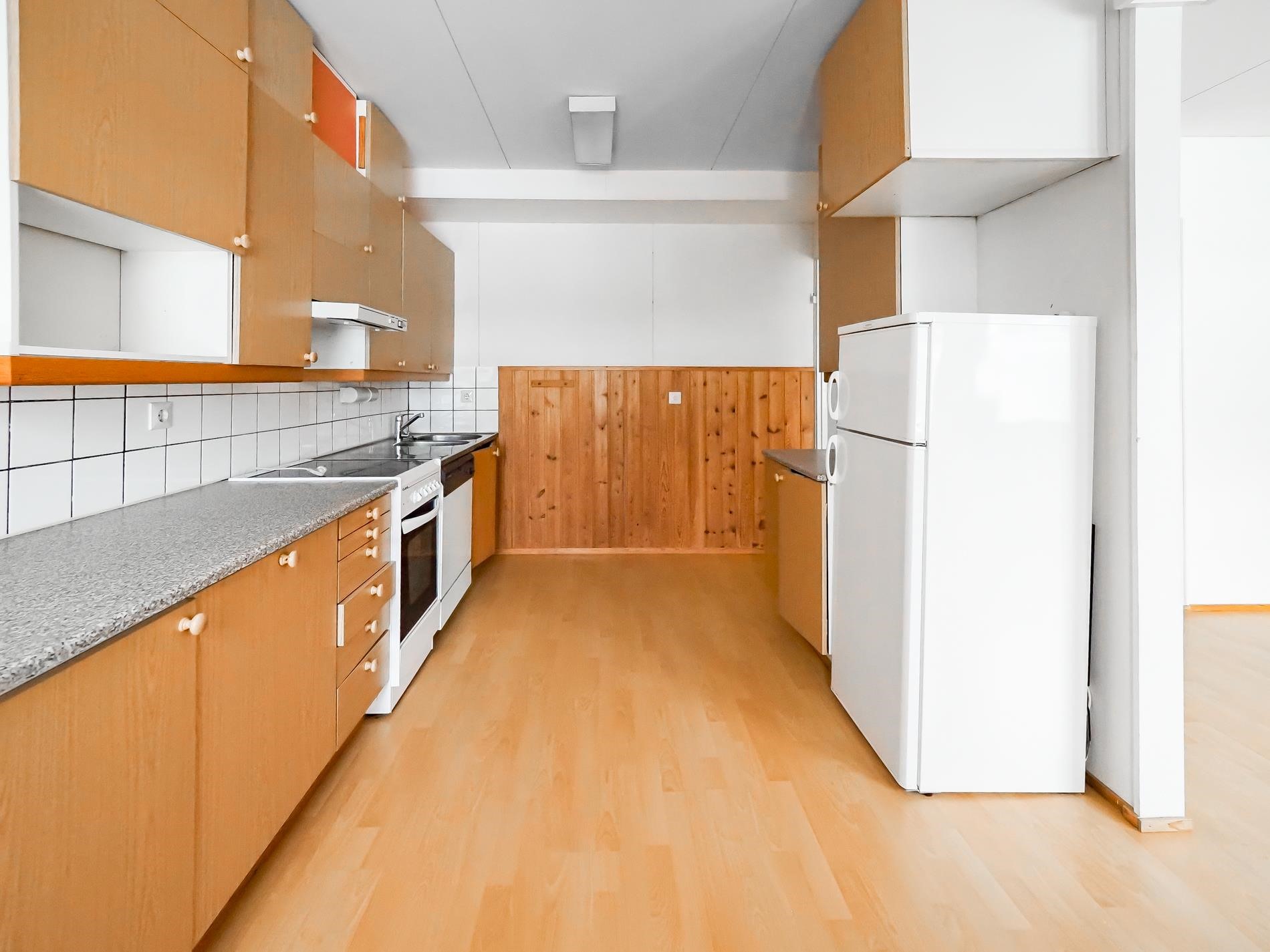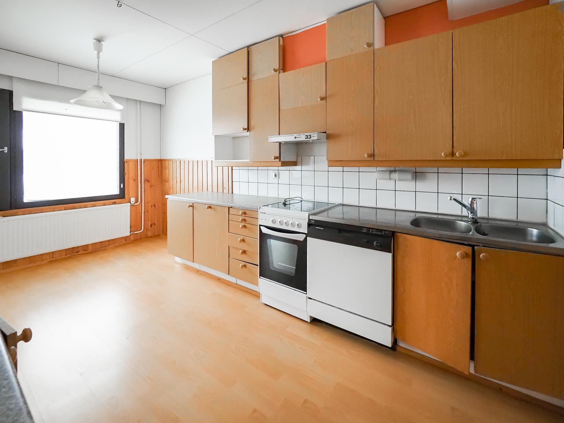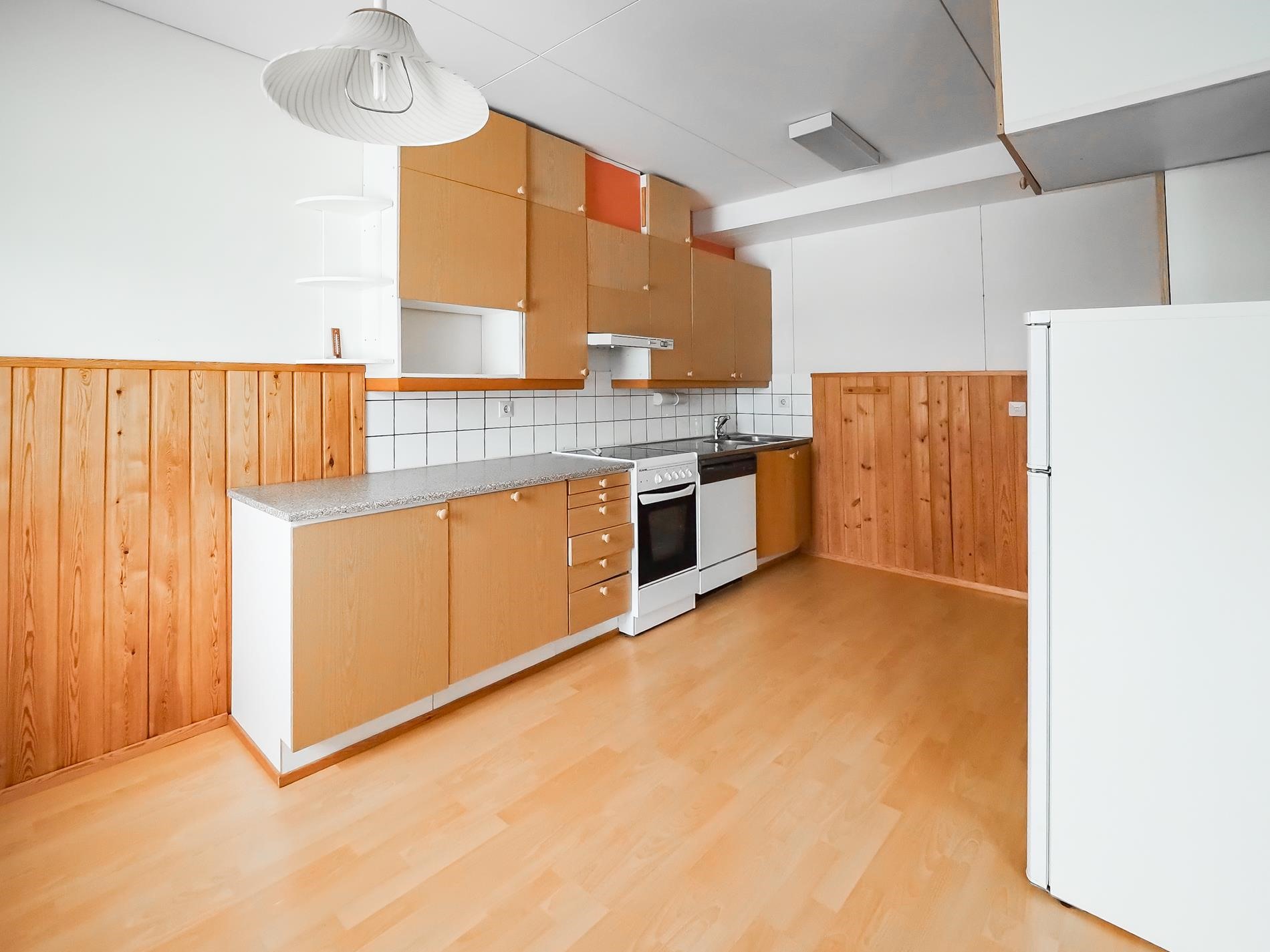 - Jenkkikaappi, keraaminen liesi, liesituuletin, astianpesukone, kiinteät valaisimet. Kodinkoneiden kunnosta ei tietoa.
