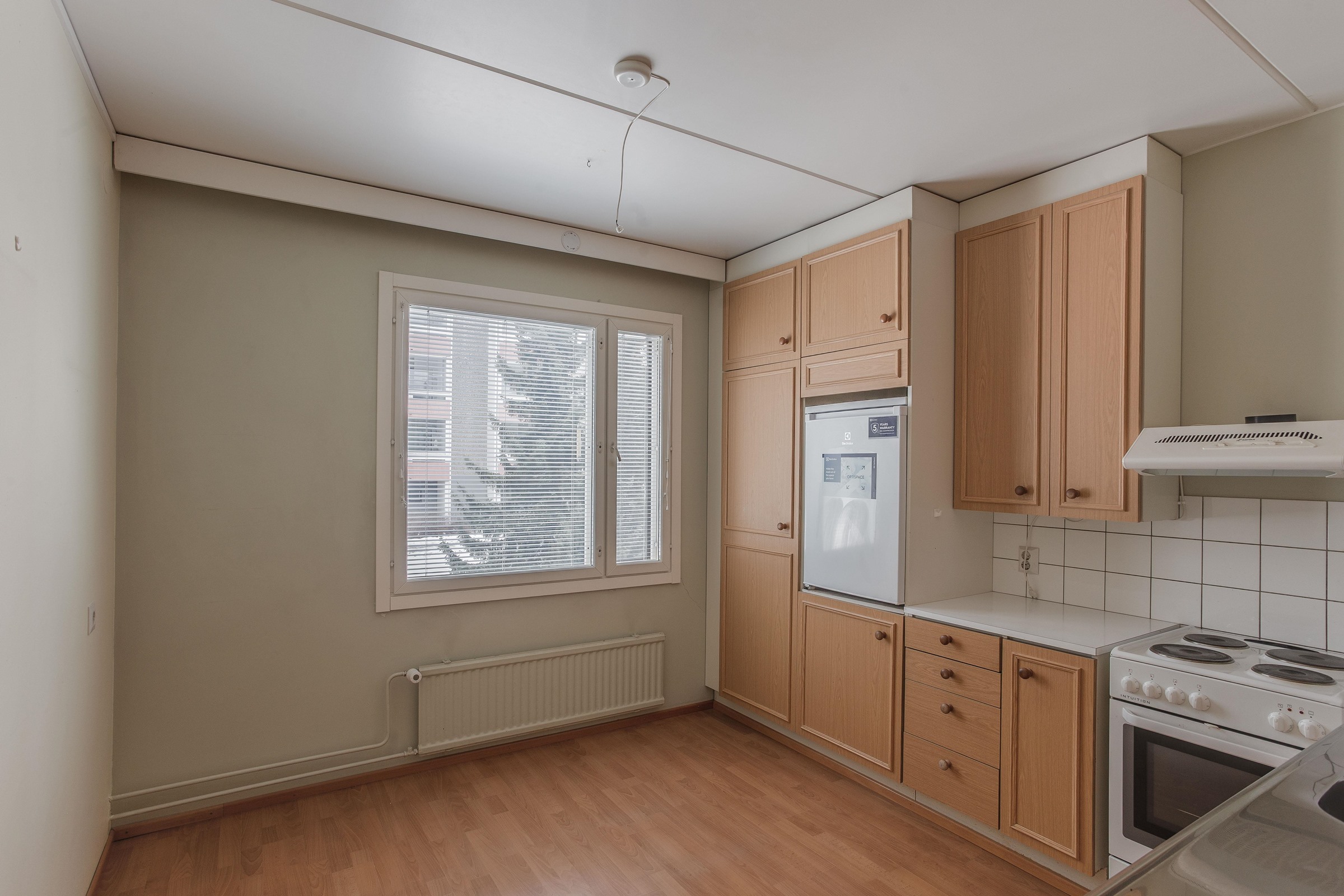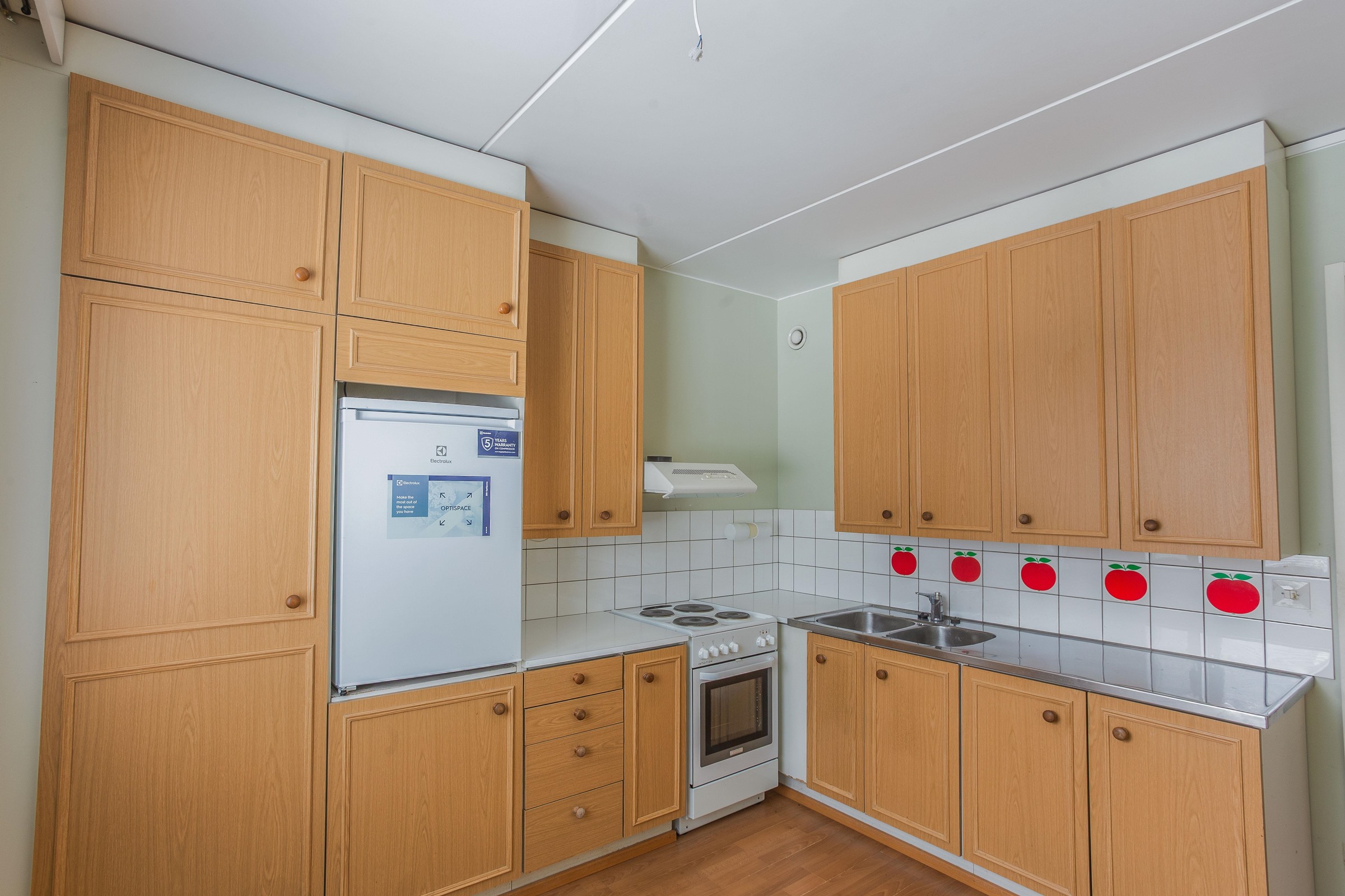 - Jääkaappi, sähköliesi, liesituuletin, kaapistot.