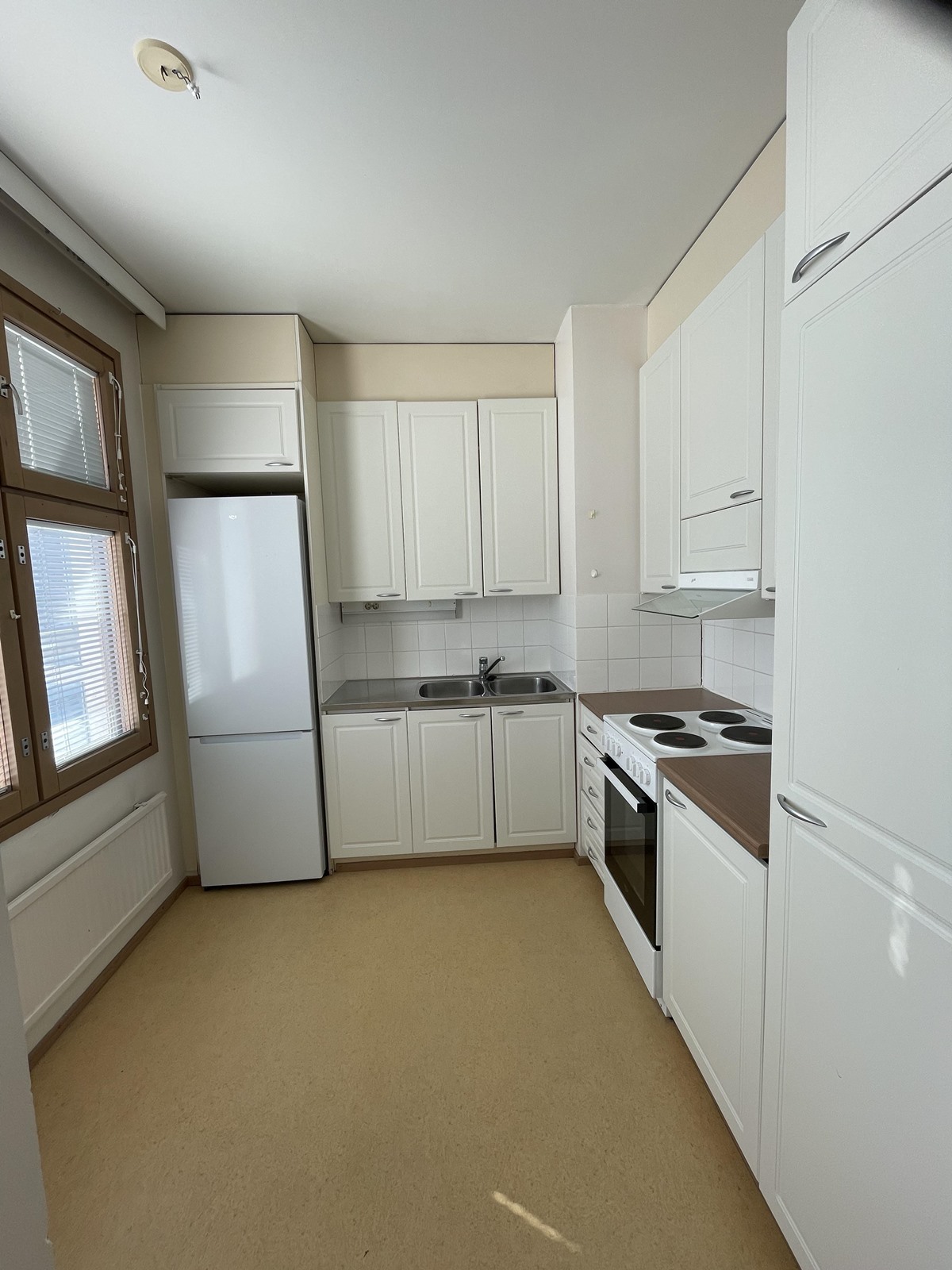 - Jääkaappipakastin, sähköliesi, kaapistot.