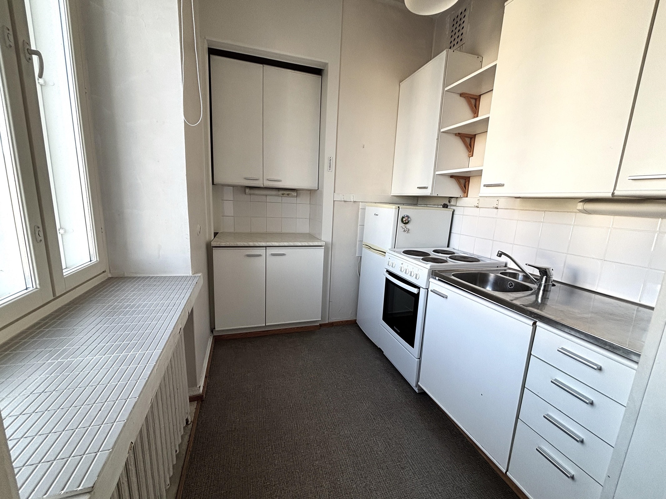 - Jääkaappipakastin, sähköliesi, kaapistot.