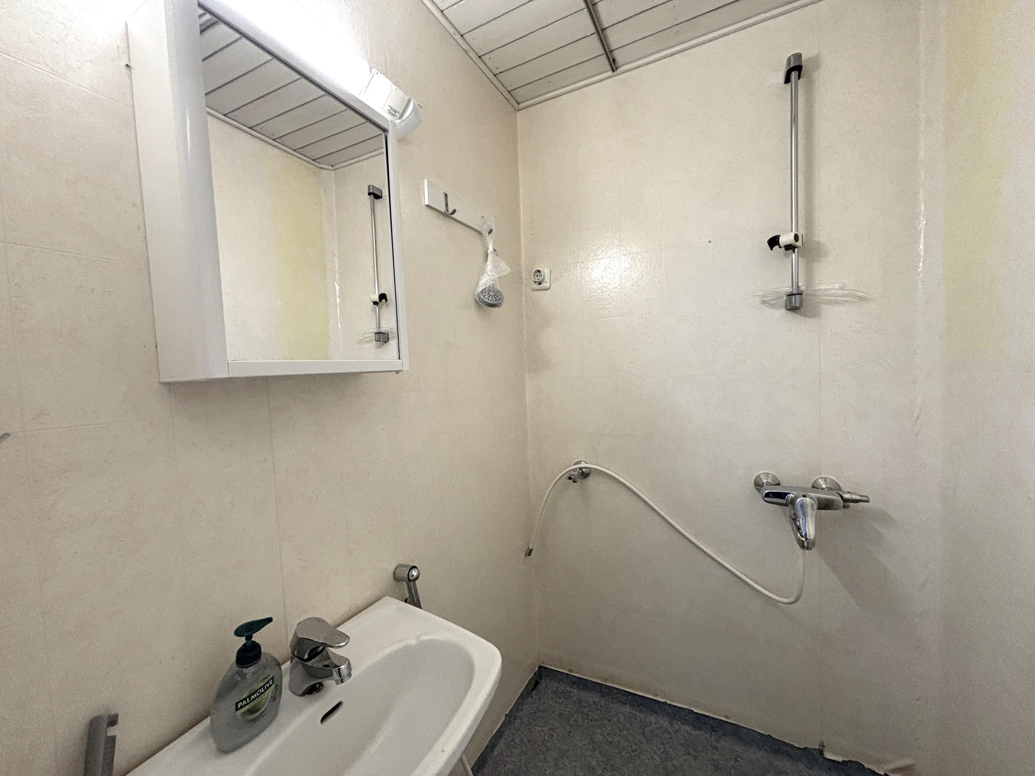 - Kylpyhuone, suihku, pesukoneliitäntä. Pesukoneliitännän hanasta tulee kuumaa vettä. Pesukone tulee liittää suihkusekoittimen liitäntään.