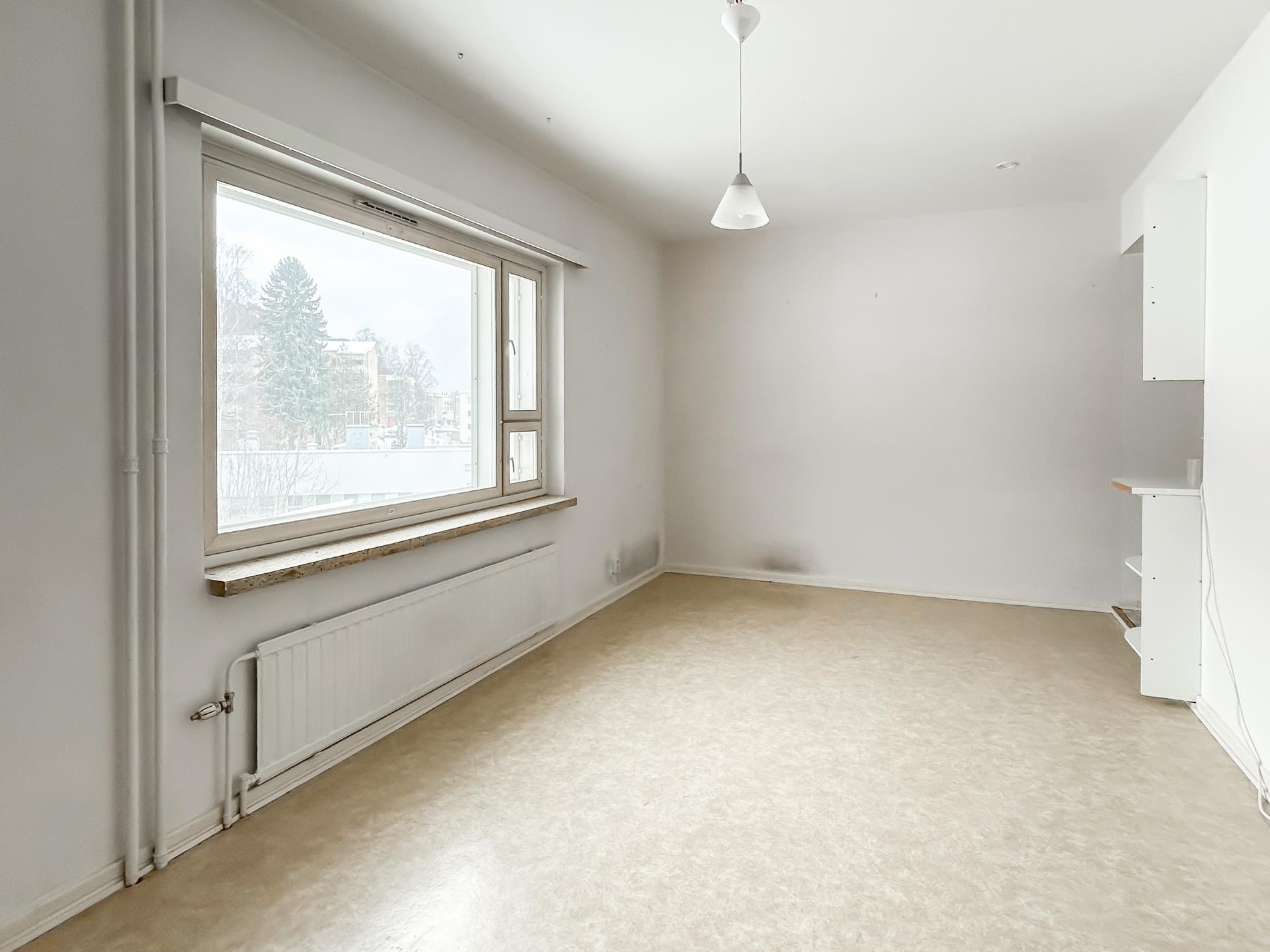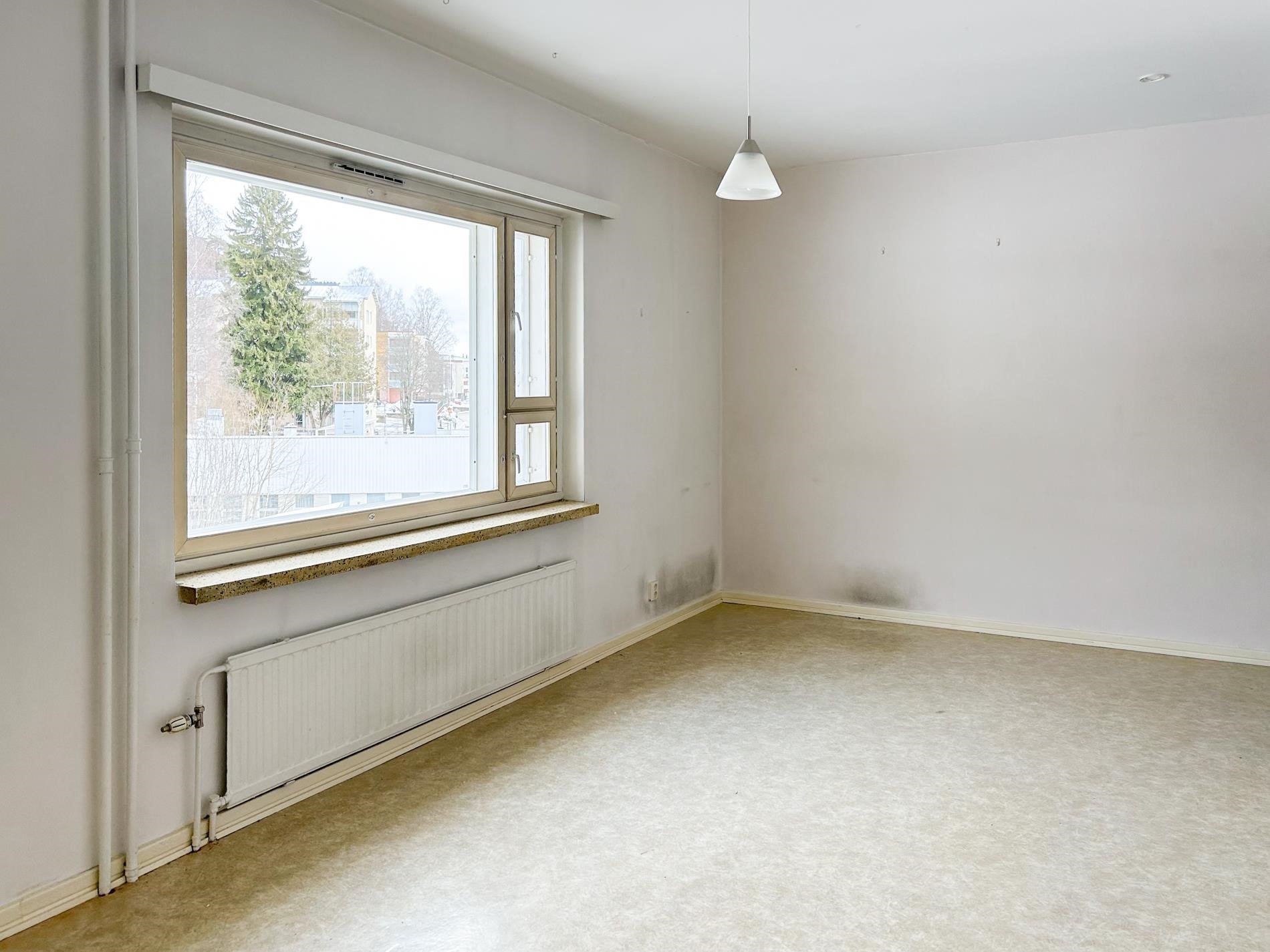 1.4. vapautuva kolmannen kerroksen yksiö. Ikkunat sisäpihan suuntaan. Kylpyhuone saneerattu putkistoremontin yhteydessä.