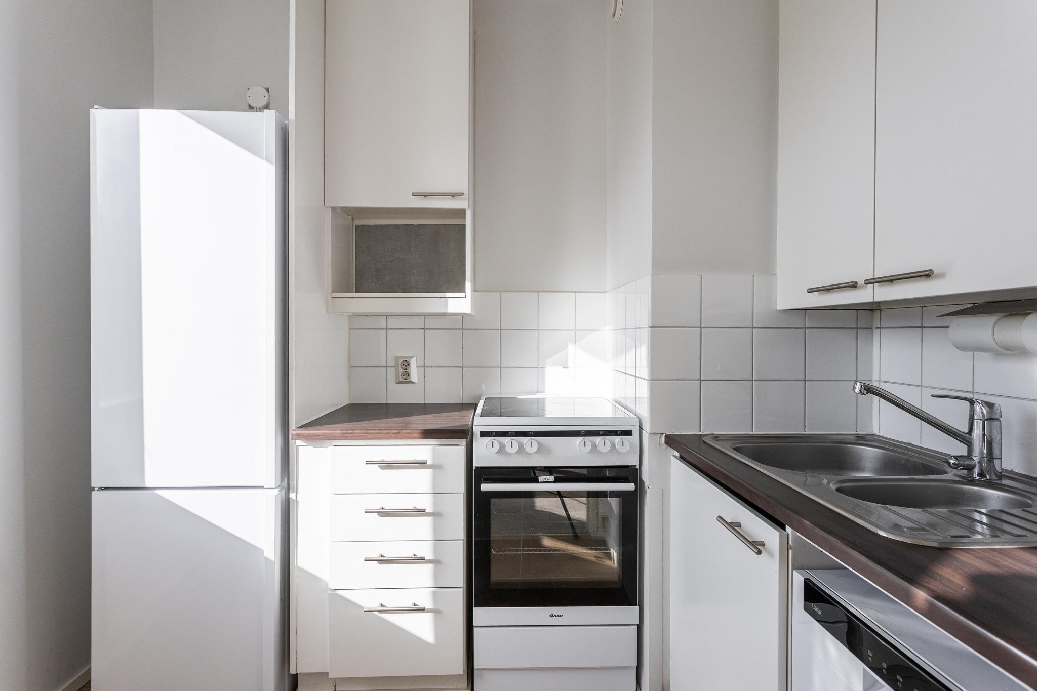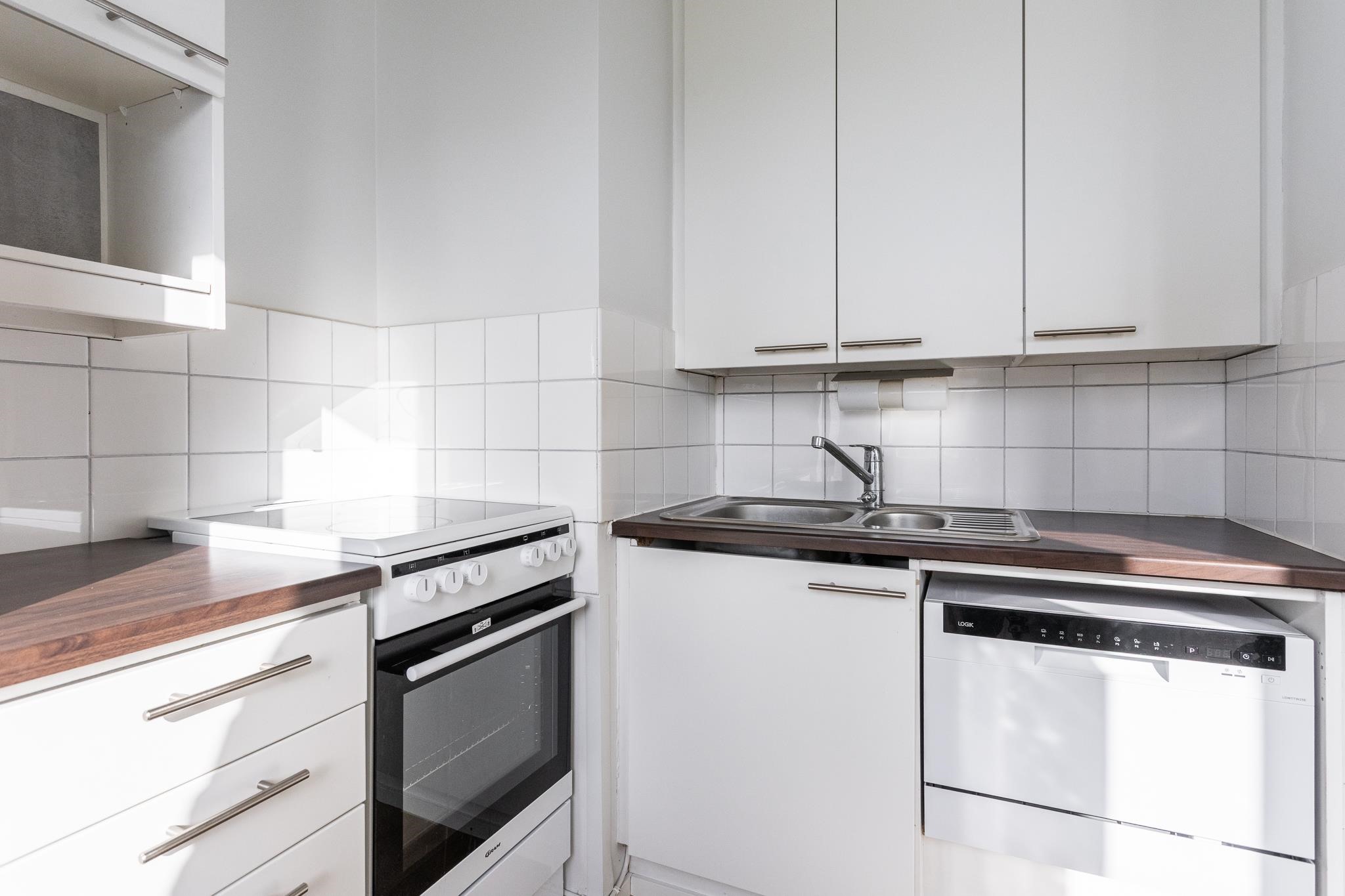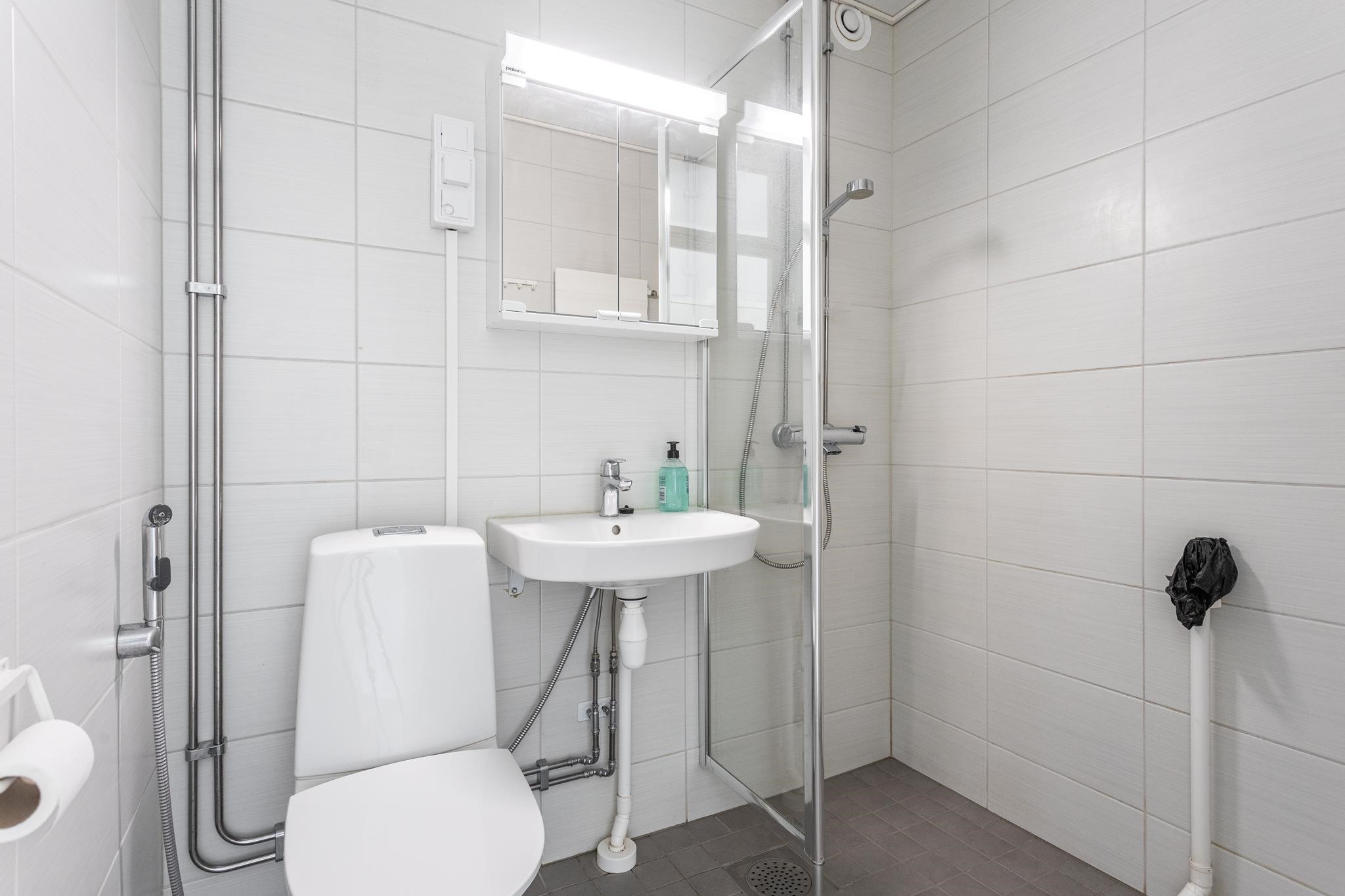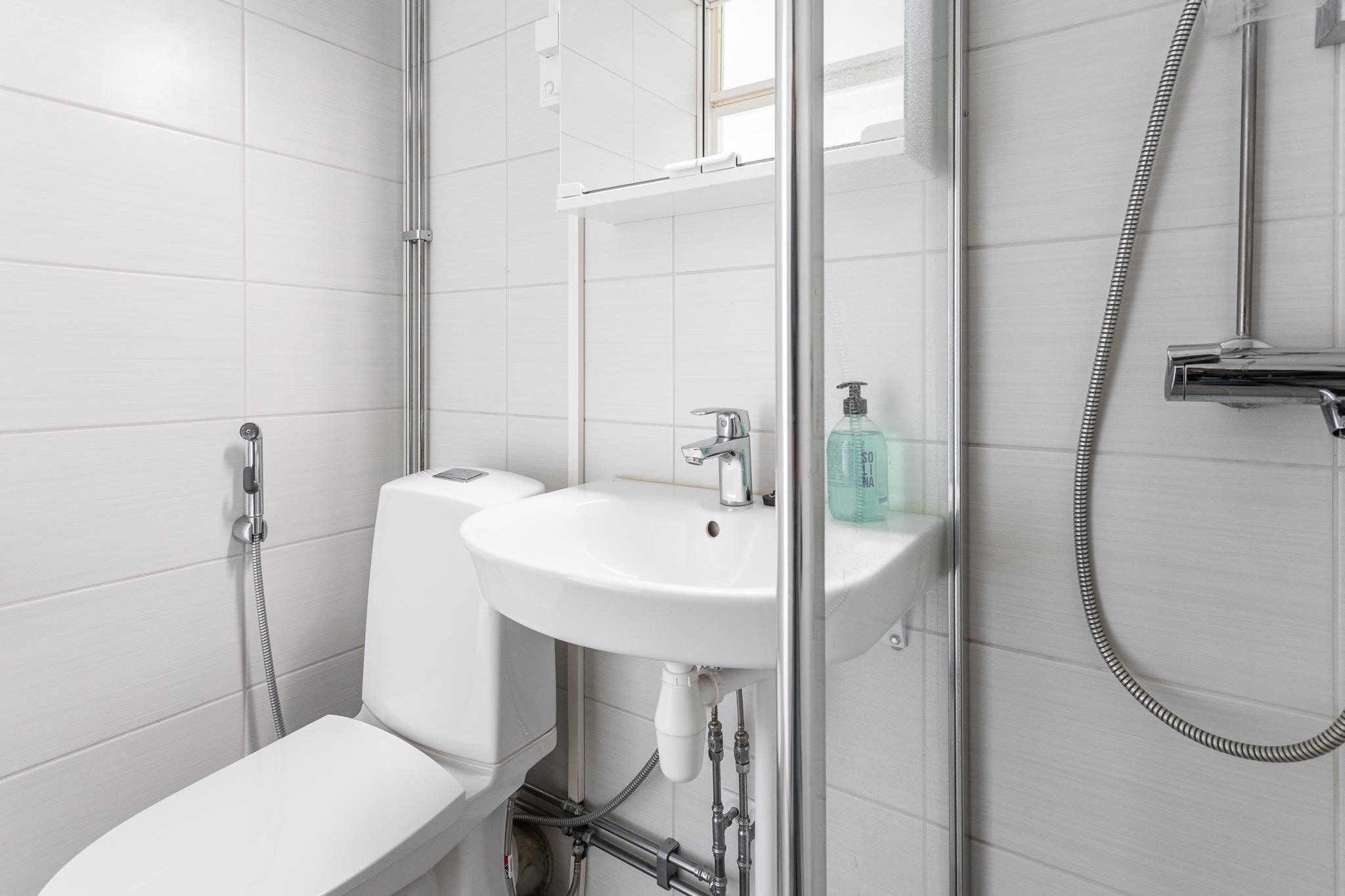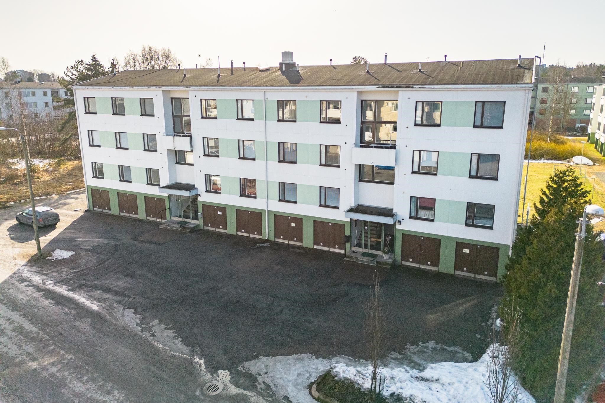 Asunnon pintoja on päivitetty vaaleansävyihin, myös pesutilat on remontoitu. Koti sijaitsee ensimmäisessä kerroksessa, ei kuitenkaan maantasalla.