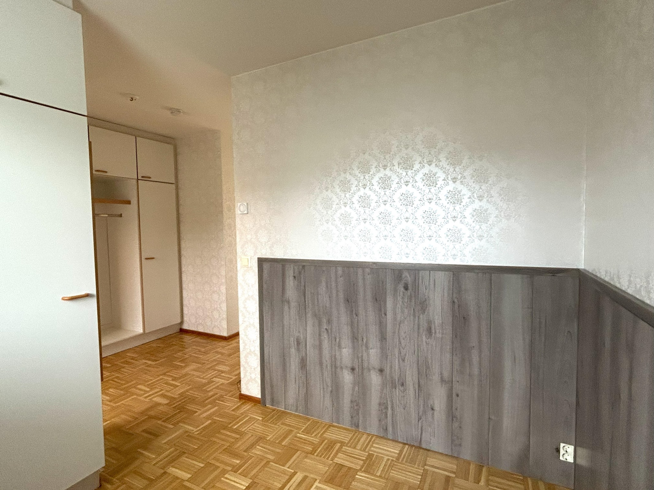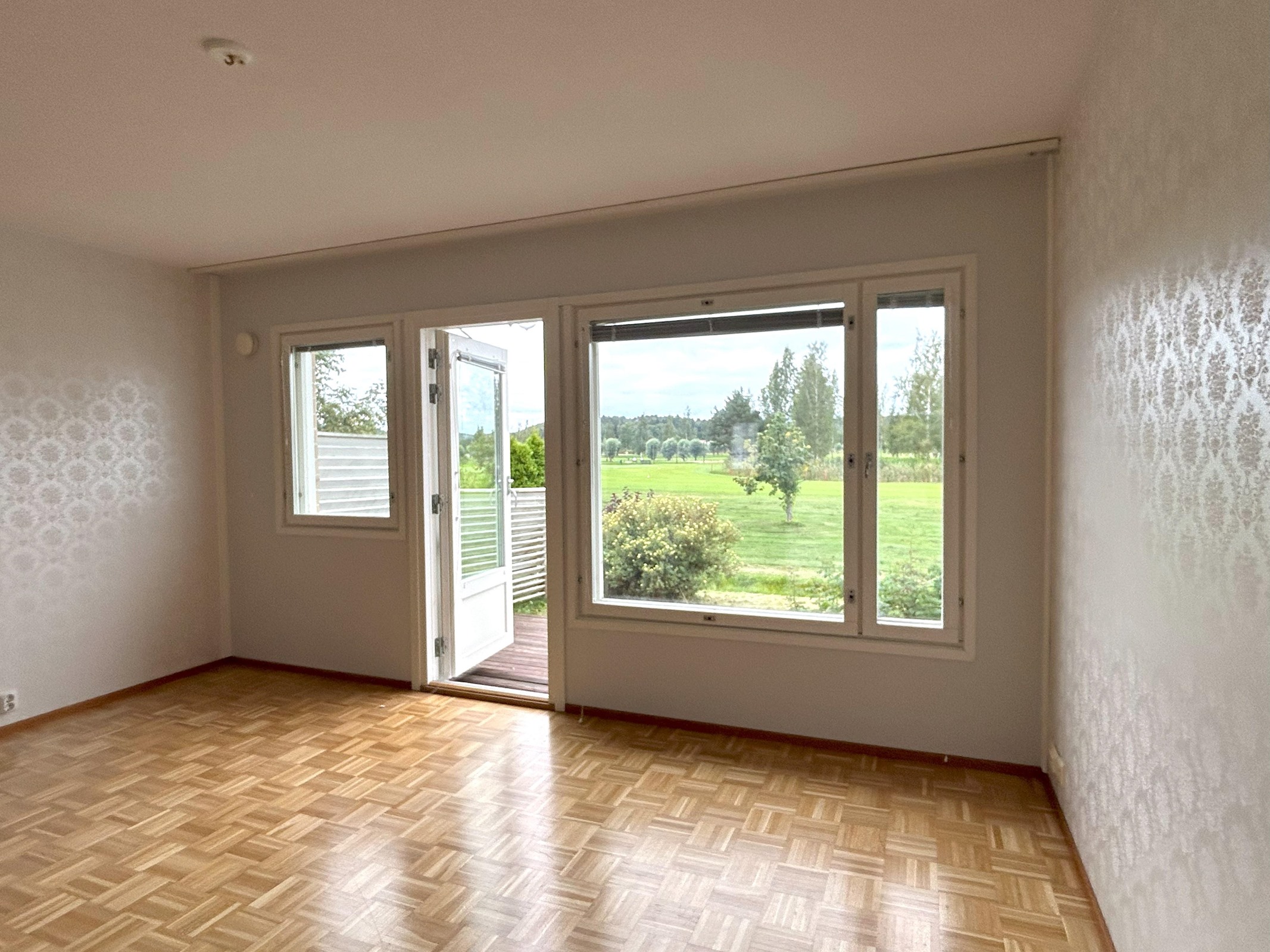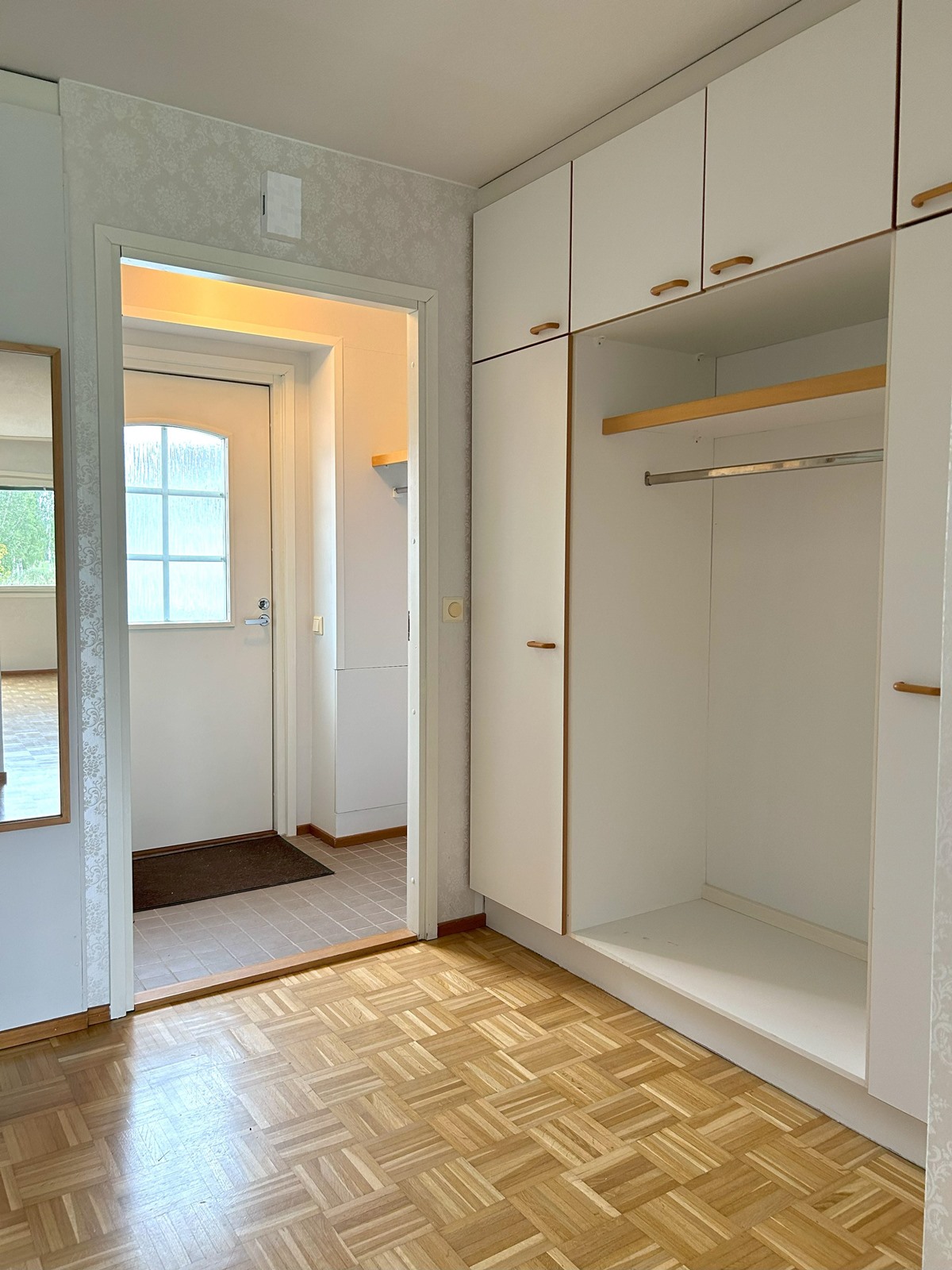 HUONE: Seinät tapetti, parkettilattia. ALKOVI: Seinät tapetti, parkettilattia. KK: Seinät maali / välitilakaakeli, parkettilattia. KPH: Seinät kaakeli, laattalattia.