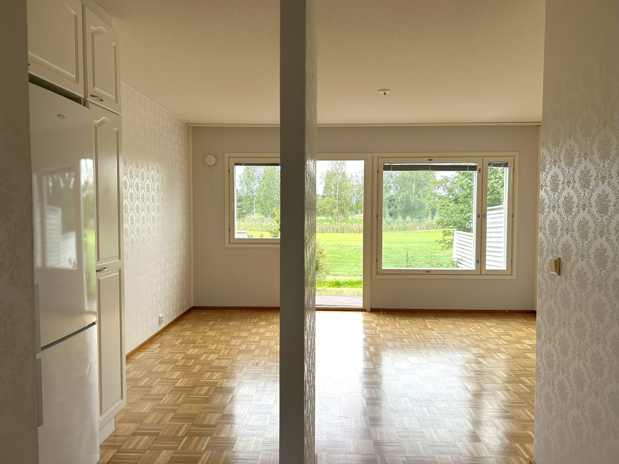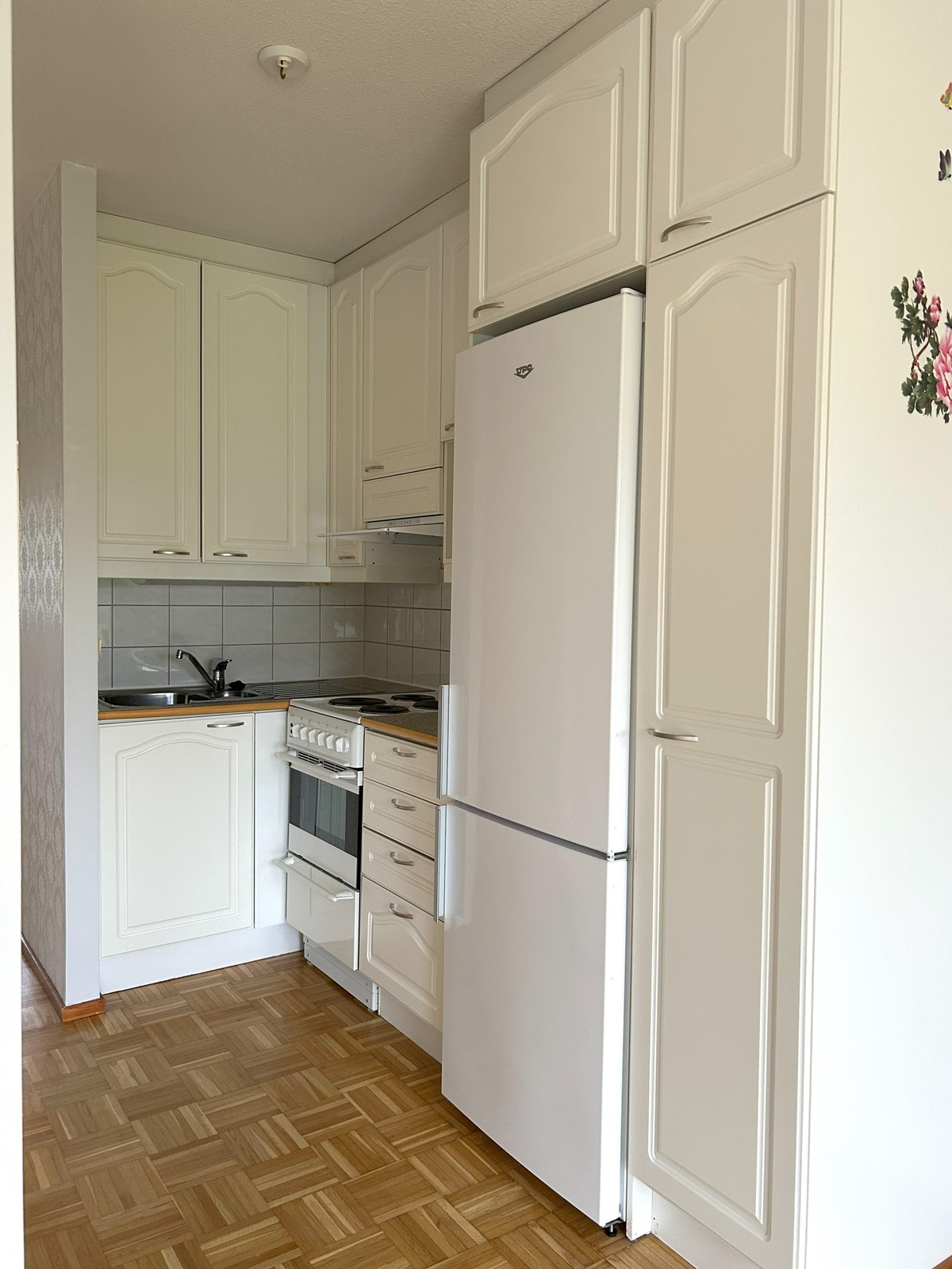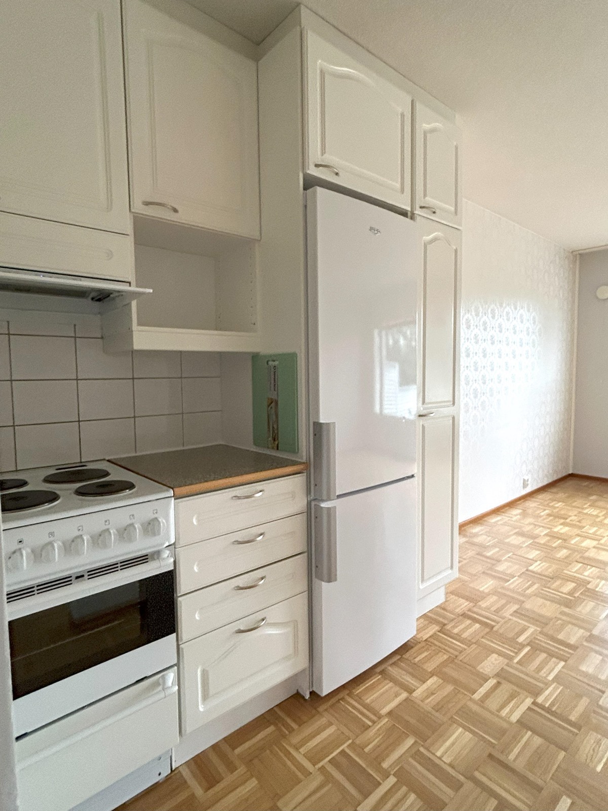 - Jääkaappipakastin, lattialiesi, liesituuletin, kaapistot, kiinteät valaisimet.