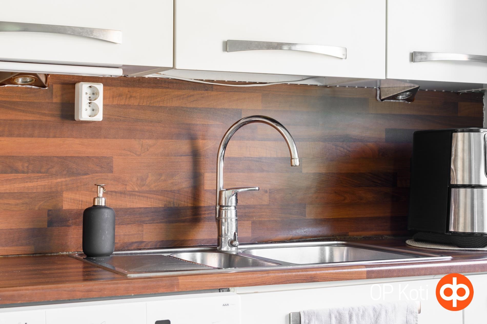 - Jääkaappipakastin, sähköliesi, liesituuletin, astianpesukone, kaapistot, kiinteät valaisimet.