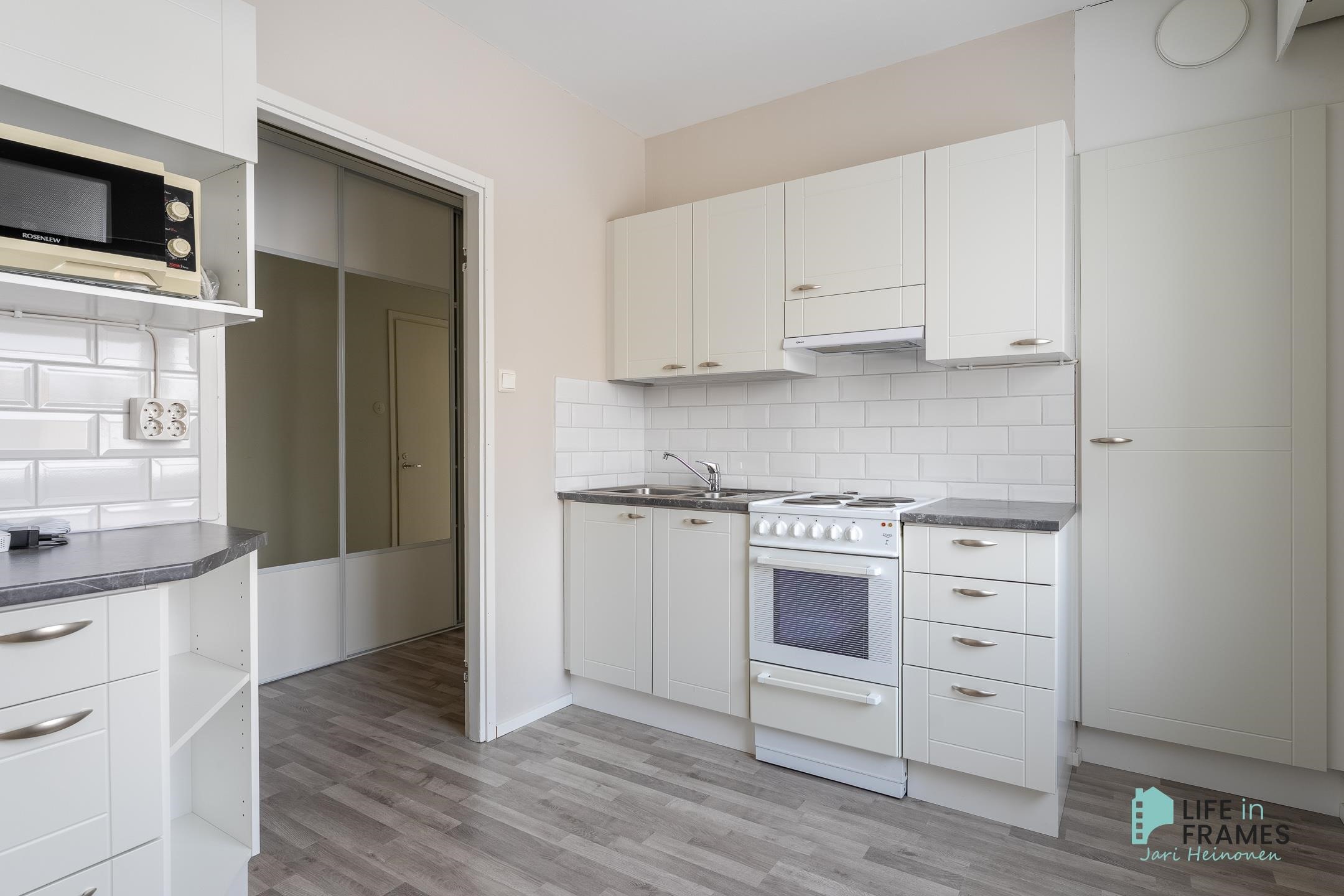- Jääkaappipakastin, sähköliesi, liesituuletin, mikroaaltouuni, kiinteät valaisimet.
