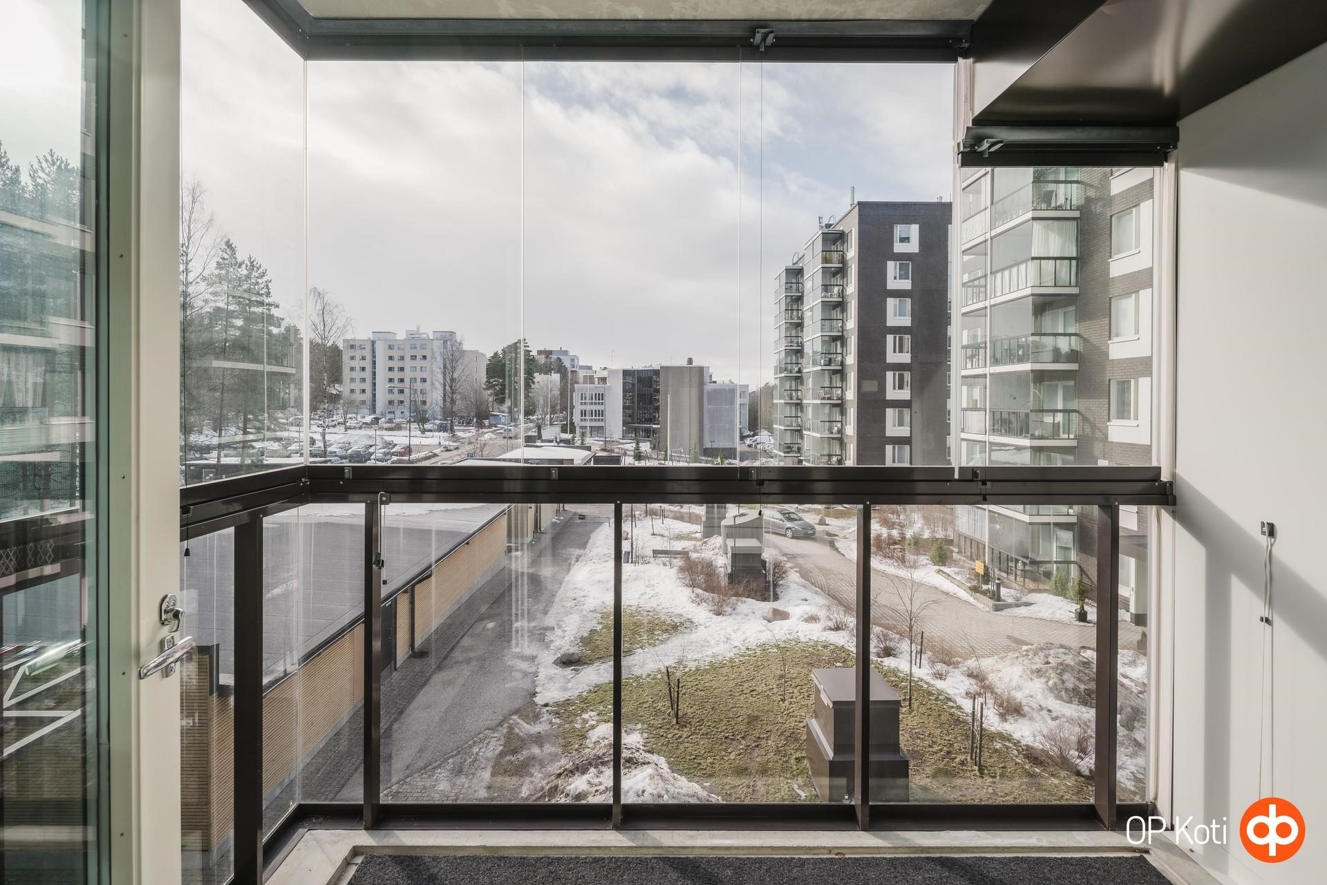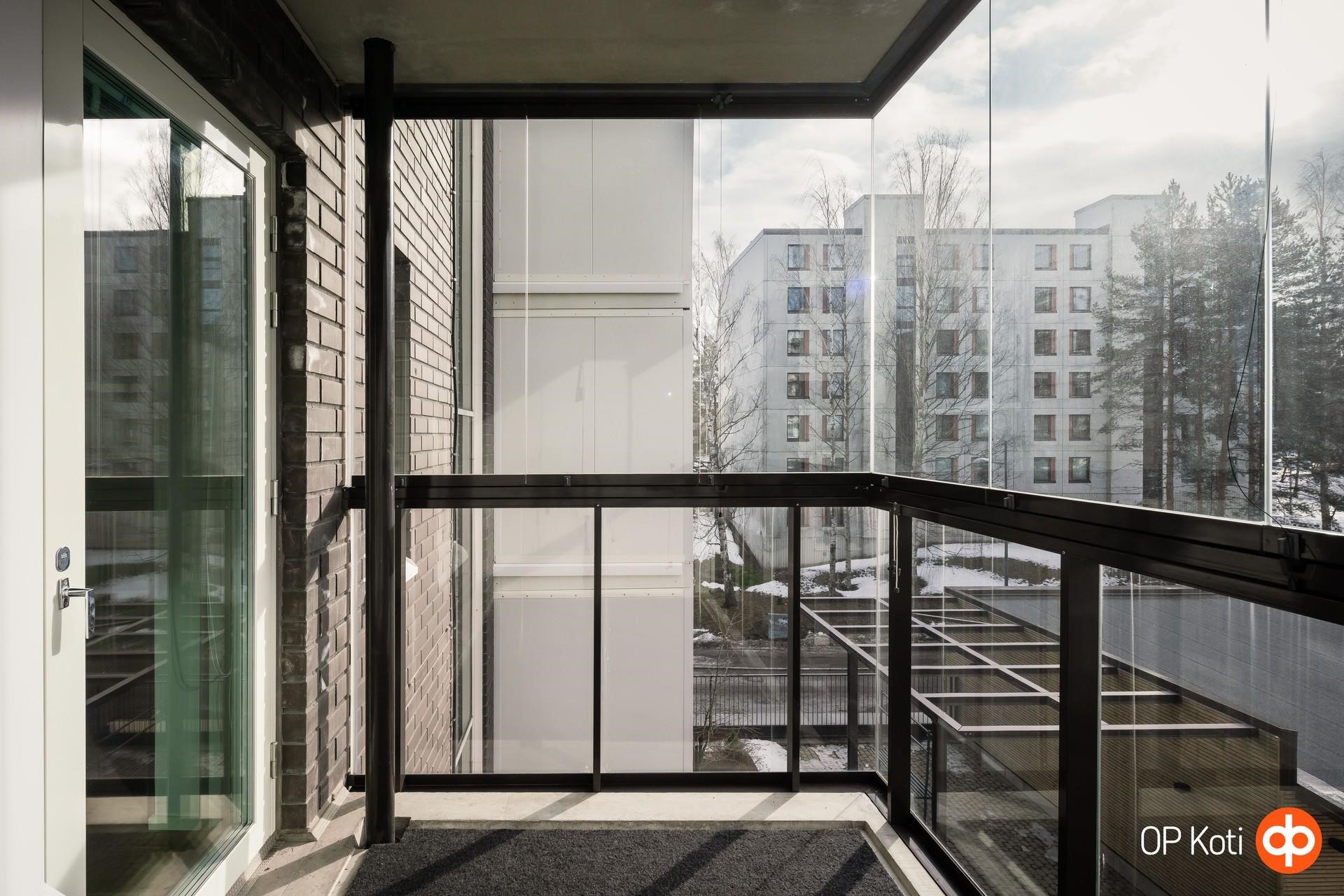 - Tilava lasitettu parveke sisäpihan puolelle, länteen.